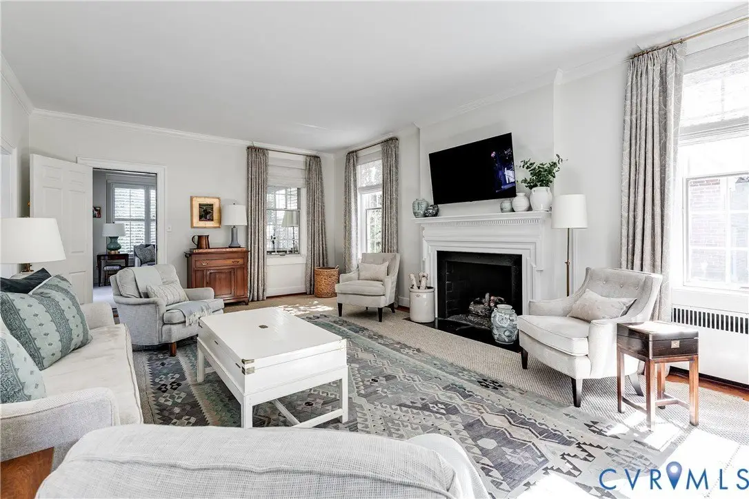This brick and slate Richmond classic in desirable Windsor Farms is beautifully renovated and move-in ready. This elegant home showcases exquisite millwork, designer lighting, and curated finishes throughout. The gracious entry foyer opens to a large living room with a gas log fireplace and a spacious dining room with a bay window. The stunning 2021 kitchen renovation features inset custom cabinetry, marble countertops, a large center island, designer fixtures, and a walk-in pantry. The sunroom, surrounded by windows offers French doors out to the terrace and pool beyond. There is a family friendly mudroom and a first floor powder room. Upstairs offers four spacious bedrooms and four full baths, including a luxurious primary suite with two walk-in closets, custom built-ins, and a beautifully renovated bath. The wonderful outdoor spaces offer a large brick terrace overlooking the sparkling pool, with a new pool cover. The recently re-designed, professionally landscaped grounds by Greenway Gardens are a private oasis and have a large flat green space for play. The dry basement includes a generous family room with fireplace and built-ins, plus a renovated laundry room. A cobblestone-lined driveway leads to the attached garage with automatic door, while the new front brick walk and custom storm door enhance the charming curb appeal. Thoughtfully updated inside and out with designer touches, this Windsor Farms gem perfectly blends classic architecture with sophisticated modern living.