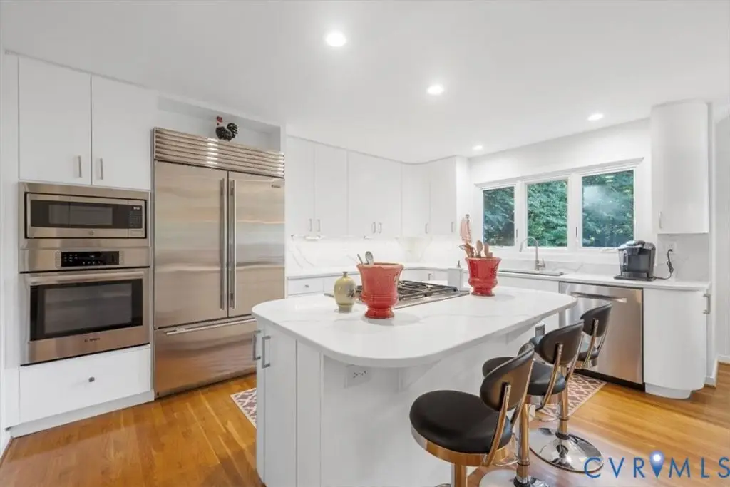 Welcome to this stunning Transitional home built by Mike Dumont, a unique gem nestled in a serene, tree-lined setting within a highly desirable neighborhood. The home's exterior features a harmonious blend of timeless brick accents, modern siding, and manufactured slate roof framed by manicured landscaping and vibrant crepe myrtle trees, creating exceptional curb appeal. Inside, you will find bright, open living spaces with soaring ceilings, expansive windows, and gleaming hardwood floors that set a warm and inviting tone. The main living areas boast two elegant fireplaces, perfect for both gatherings and quiet evenings. Multiple sitting rooms offer flexibility for entertaining or relaxing. The spacious kitchen, equipped with top-of-the-line Wolfe, Bosch, and Sub-Zero appliances, is seamlessly connected to both formal and casual living areas, and is complemented by a stylish wet bar for hosting. Oversized Anderson casement windows throughout provide abundant natural light and views of the private backyard oasis. Outdoor living is equally impressive, featuring a lush lawn and landscaped walkways leading to the welcoming front entry. This home, with its unique blend of comfort, elegance, and functionality, presents an exceptional opportunity to own a beautifully maintained property in a highly desirable neighborhood.