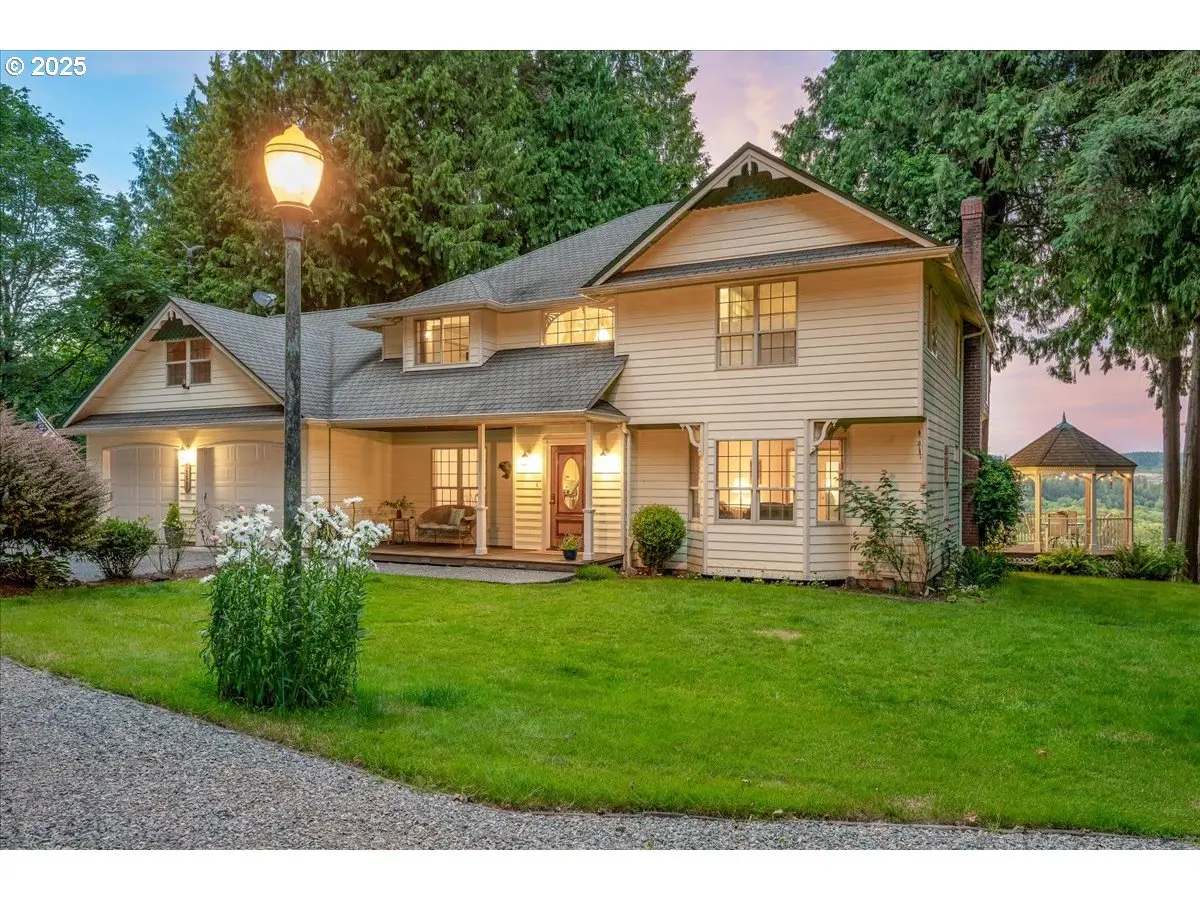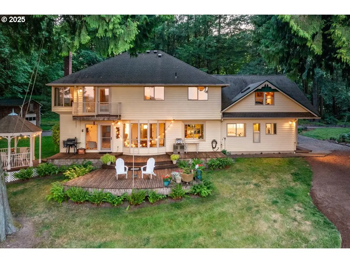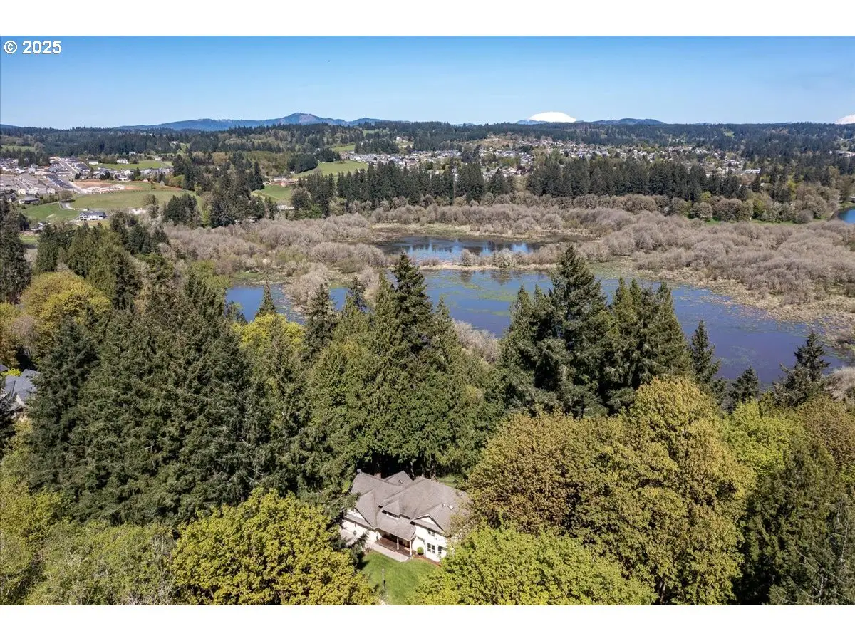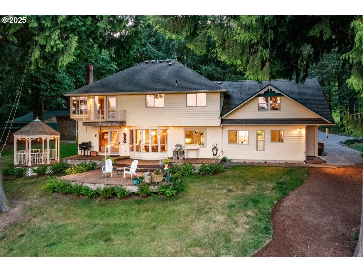 Expansive Private Retreat with River Views & Detached Shop. Clark County Escape with VIEWS galore. Nearly 6ac of wooded, park-like setting with birdwatching for thousands of seasonal species and wildlife. This builder-owned home offers stunning privacy and panoramic views of the Lewis River valley and Cascade foothills. Nestled on 5.94 quiet acres with mature landscaping, fruit trees, and native vegetation, it provides private access to river trails and wetlands--ideal for outdoor living. Inside, enjoy light-filled living spaces with large windows framing treetop and river views. The main floor features formal living and dining areas, a spacious kitchen with informal dining and family room, and access to a multi-level view deck with gazebo. Also on the main floor: two half-baths, a laundry/sewing room, mudroom, and two-car garage. Upstairs includes four generous bedrooms, including a primary suite with en suite bath, plus a large family room with wet bar, built-ins, and a private office overlooking the valley. Highlights: Detached shop with RV/boat storage, Expansive view deck with peekaboo Mt. St. Helens views, Light-filled rooms with sweeping natural vistas, quiet, dog-friendly community just 30 mins to Portland, 10 mins to daily amenities, 5 mins to La Center schools and 2min to I-5.This rare retreat blends rural serenity with modern convenience--perfect for nature lovers, hosts, and remote workers alike. Multi-gen possibilities w/two staircases, separate entrance. NO HOA. This home has it all! Come take in the views today.