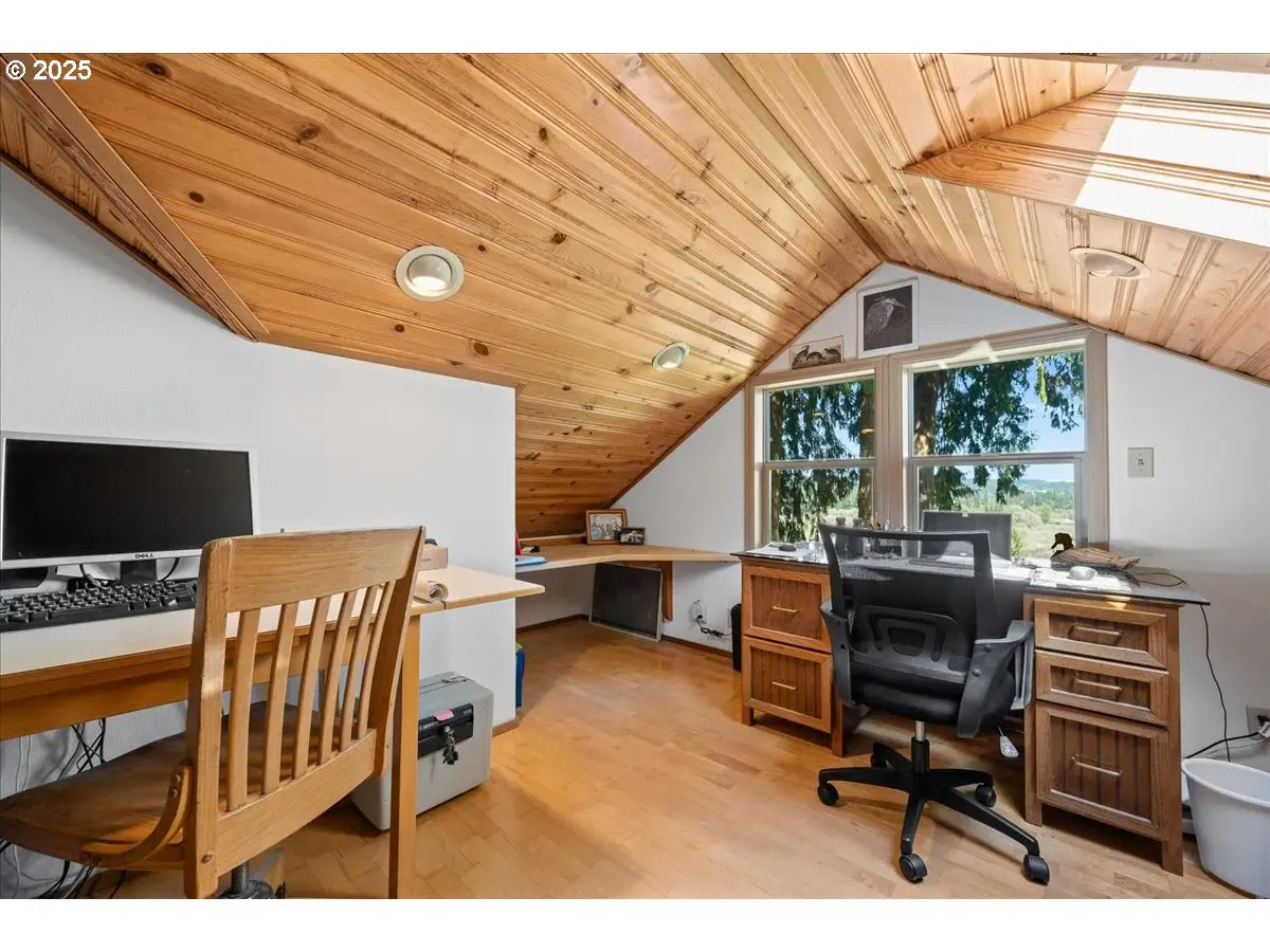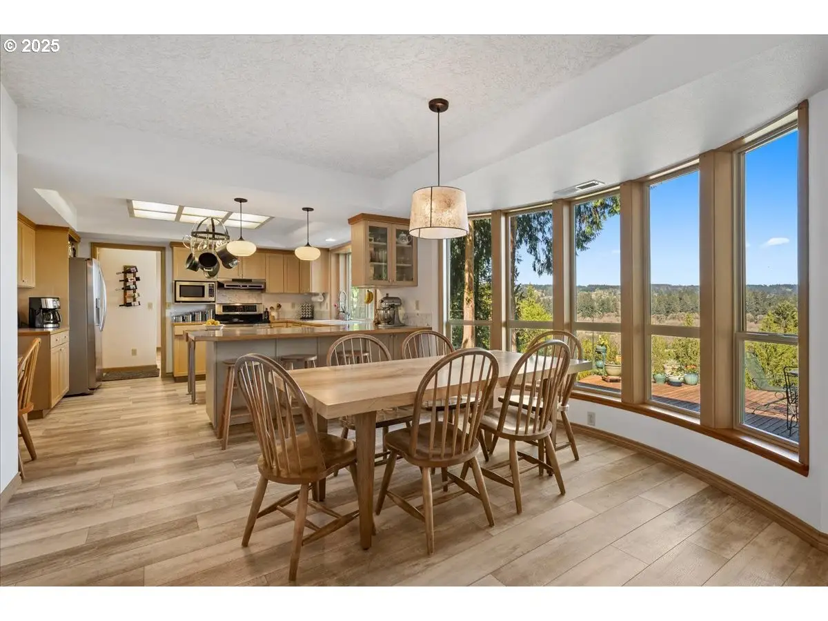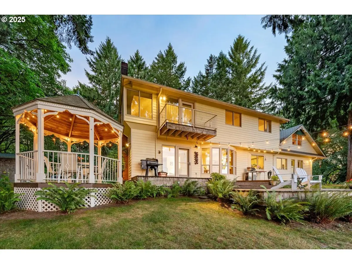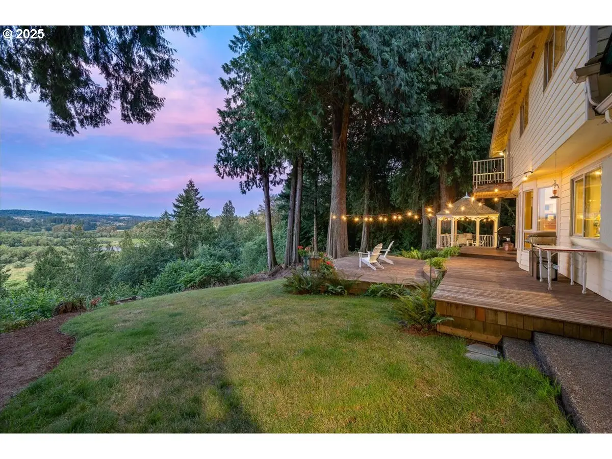 Expansive Private Retreat with River Views & Detached Shop. Clark County Escape with VIEWS galore. Nearly 6ac of wooded, park-like setting with birdwatching for thousands of seasonal species and wildlife. This builder-owned home offers stunning privacy and panoramic views of the Lewis River valley and Cascade foothills. Nestled on 5.94 quiet acres with mature landscaping, fruit trees, and native vegetation, it provides private access to river trails and wetlands--ideal for outdoor living. Inside, enjoy light-filled living spaces with large windows framing treetop and river views. The main floor features formal living and dining areas, a spacious kitchen with informal dining and family room, and access to a multi-level view deck with gazebo. Also on the main floor: two half-baths, a laundry/sewing room, mudroom, and two-car garage. Upstairs includes four generous bedrooms, including a primary suite with en suite bath, plus a large family room with wet bar, built-ins, and a private office overlooking the valley. Highlights: Detached shop with RV/boat storage, Expansive view deck with peekaboo Mt. St. Helens views, Light-filled rooms with sweeping natural vistas, quiet, dog-friendly community just 30 mins to Portland, 10 mins to daily amenities, 5 mins to La Center schools and 2min to I-5.This rare retreat blends rural serenity with modern convenience--perfect for nature lovers, hosts, and remote workers alike. Multi-gen possibilities w/two staircases, separate entrance. NO HOA. This home has it all! Come take in the views today.