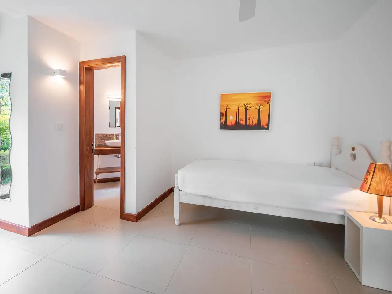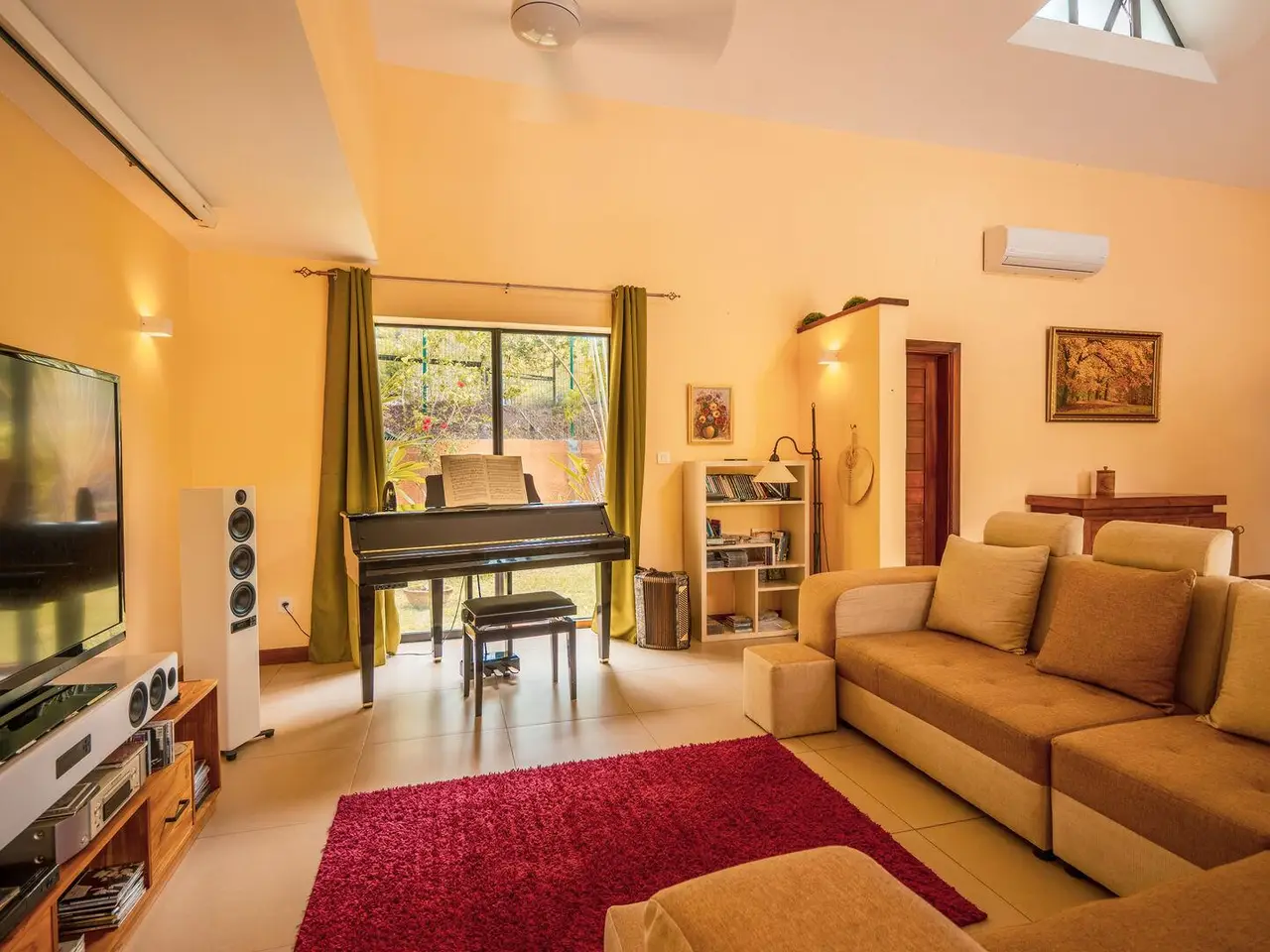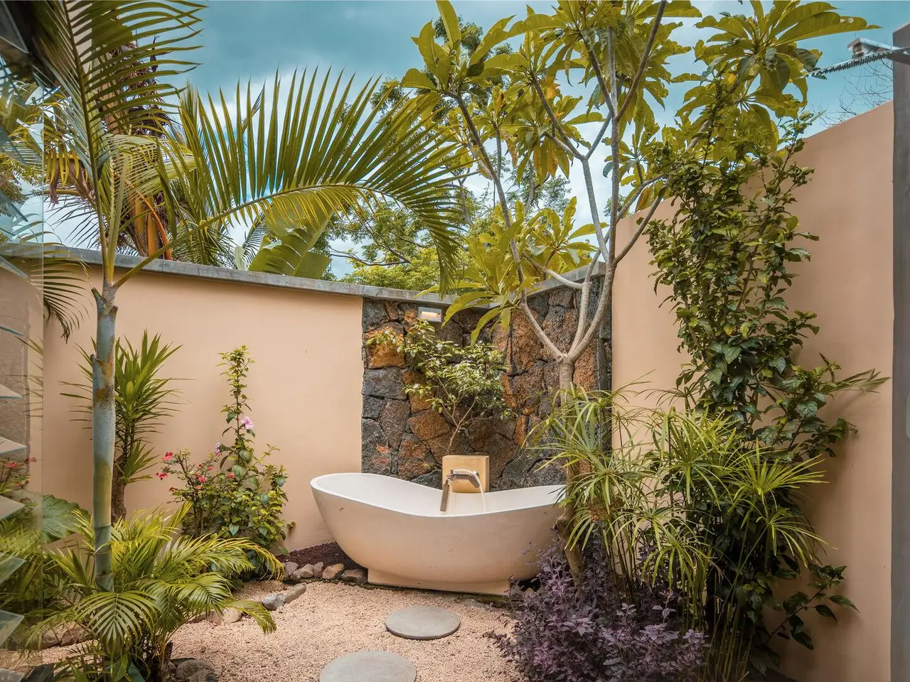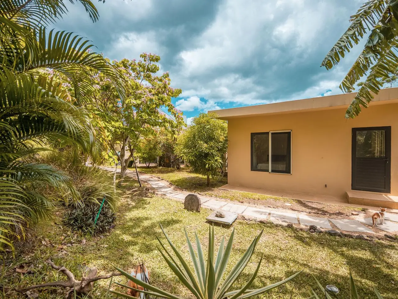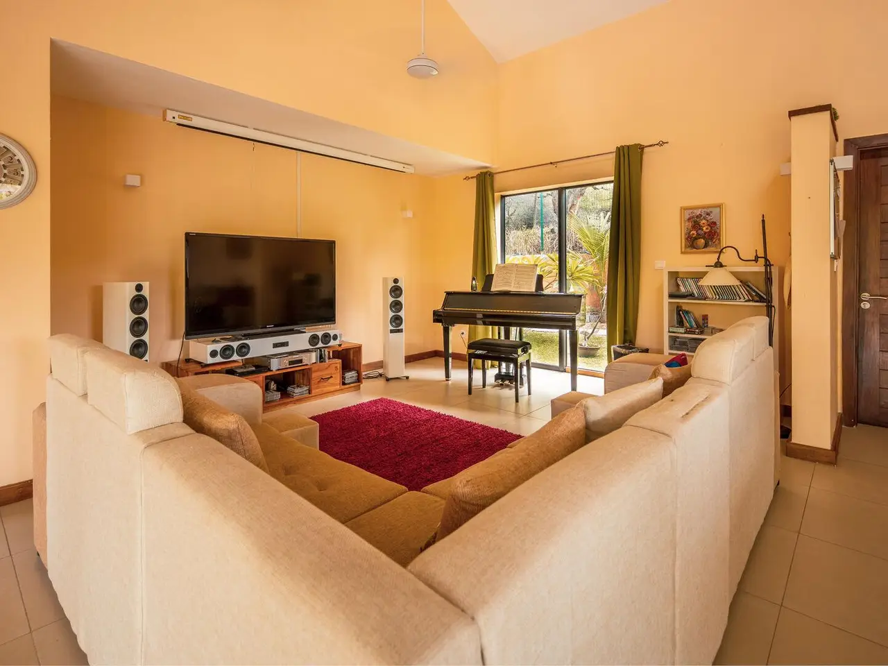 Tucked away amidst the stunning mountains of the west coast of Mauritius, this exquisite Balinese-style villa is a haven of tranquility and tropical charm. Surrounded by lush nature, the home is designed to invite natural light and cooling breezes through its spacious, airy interiors and large openings. The manicured garden, adorned with fruit trees, features a charming kiosk perfect for sundowners by the slate-tiled pool. Offering three luxurious ensuite bedrooms, the villa includes a master suite with an enchanting indoor-outdoor bathroom. A versatile mezzanine serves as an additional bedroom or creative atelier, while a separate studio provides an ideal space for guests or short-term stays. With practical features such as a rare, spacious 44m2 dry basement, a full fledged photovoltaic system, laundry/scullery, BBQ area, and garden shed, this home effortlessly blends beauty with functionality. Embrace the serene elegance of this enchanting retreat.