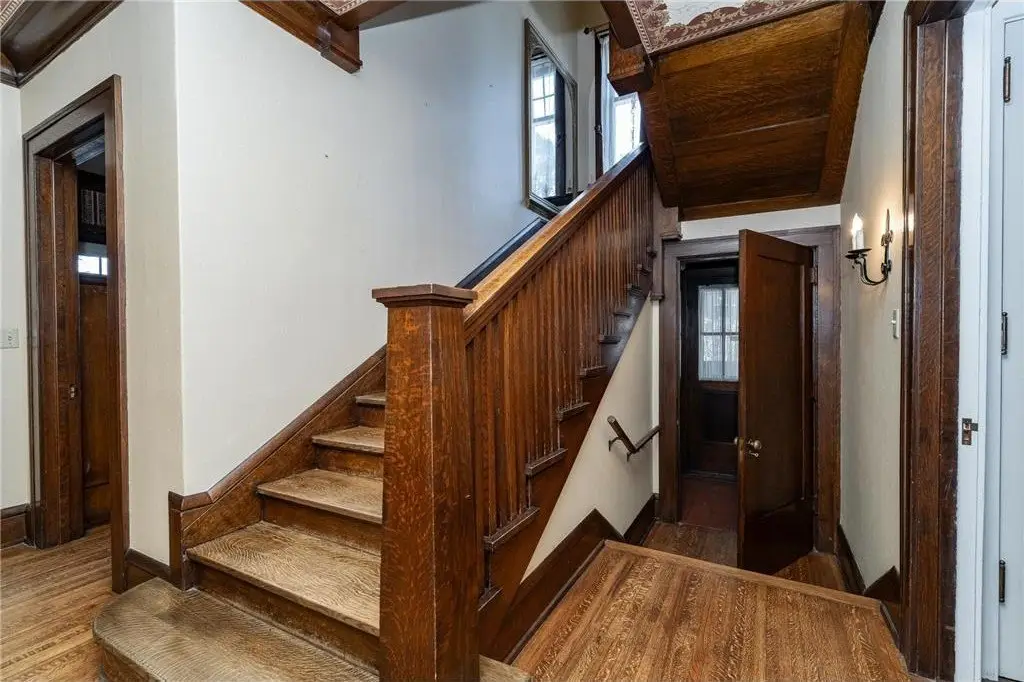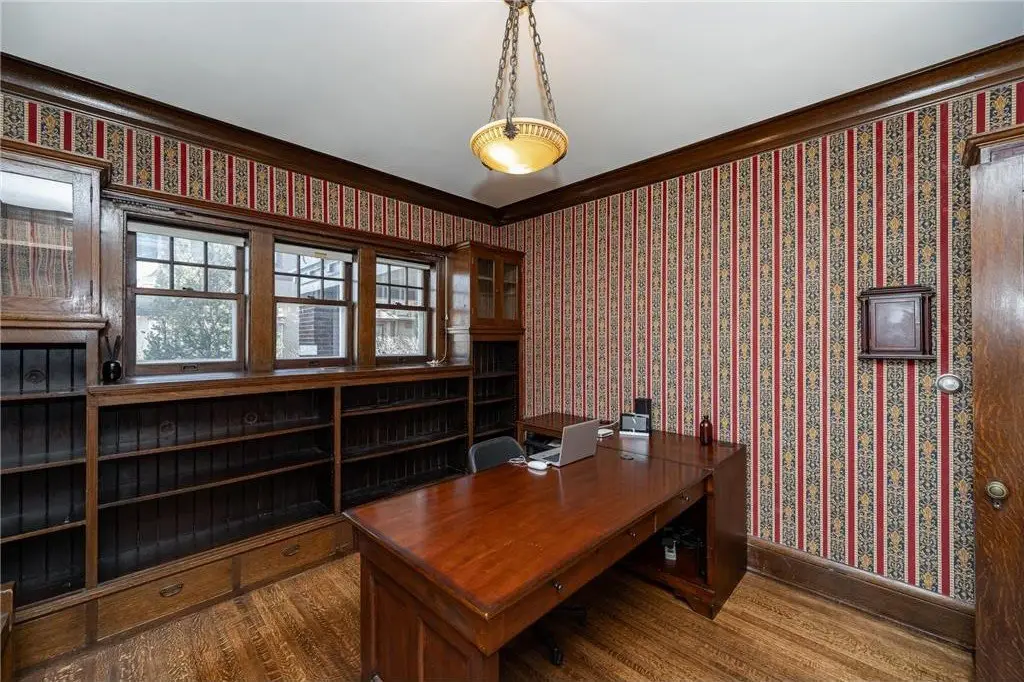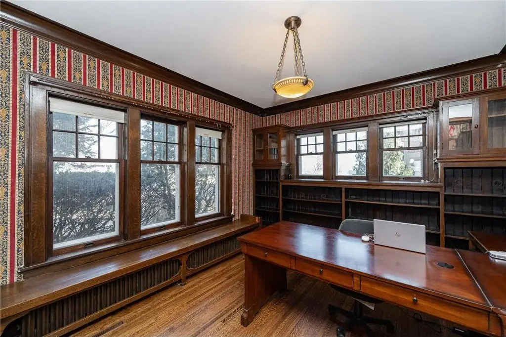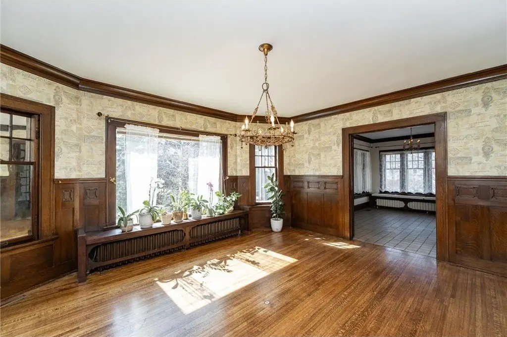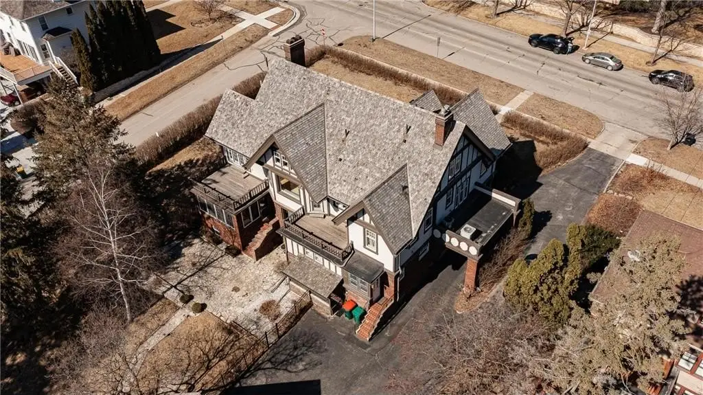 Charming Tudor Medieval Revival home built in 1914 in the heart of Pill Hill in Old Southwest. Designed by notable Ellerbe Architect Firm (also designed The Mayo, Plummer & Gonda Buildings, Foundation House, Plummer House & many historic homes in Pill Hill). On the National & Rochester Historic Registers. Walk to Mayo Clinic Campus & Folwell School. Pre-inspected, well maintained home with original beautiful wood floors & woodwork. Elevator, back stairways, newer cedar roof, deck, 2 car detached garage with finished room above, 2 patios, privacy hedge on 2 sides. 7 bedrooms & 7 bathrooms. Main floor: large foyer with grand stairway, study with built-ins, large living room with built-ins & fireplace, large formal dining room, large family room with elevator to second floor, large screened porch, half bath, eat-in kitchen with butler's pantry & breakfast room, mudroom. Second Floor: 2 room primary bedroom suite with fireplace, walk-in closet & bath. 3 additional bedrooms & 3 additional bathrooms, laundry. Third Floor: family room, 3 bedrooms (one with fireplace & a full bath). Basement: half bath, big family room with wine cellar and fireplace, big second eat-in kitchen, exercise room, workshop, utility room, storage rooms.