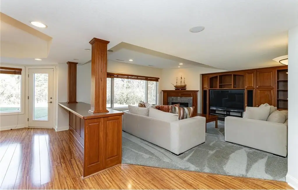 Beautiful two story home located on a private, panoramic, wooded, walkout lot on a quiet cul-de-sac. Neutral decor, move in ready condition, pre-inspected, interior just painted, all wood floors just refinished, new carpeting. 2.24 acre lot with deck and patio. Main Floor features: foyer, formal dining room, living room, family room with gas fireplace and built-in cabinetry, sunroom with tall ceiling, large eat-in kitchen with informal dining area, opens to deck and the panoramic and private backyard, half bath, mudroom with large walk-in closet and laundry, 3 car attached garage. Upper level features: Extra large primary bedroom suite with a large sitting area and a full bathroom with tub, shower and double sinks. 3 additional bedrooms (one bedroom is currently used as an office and does not have a closet) and another full bathroom. Lower level features: walkout to patio and private backyard, family room with gas fireplace, built-in cabinetry and wet bar, bonus room with walk-in closet (to use as office or exercise room), 5th bedroom, large 3/4 bathroom, large utility/storage room.
