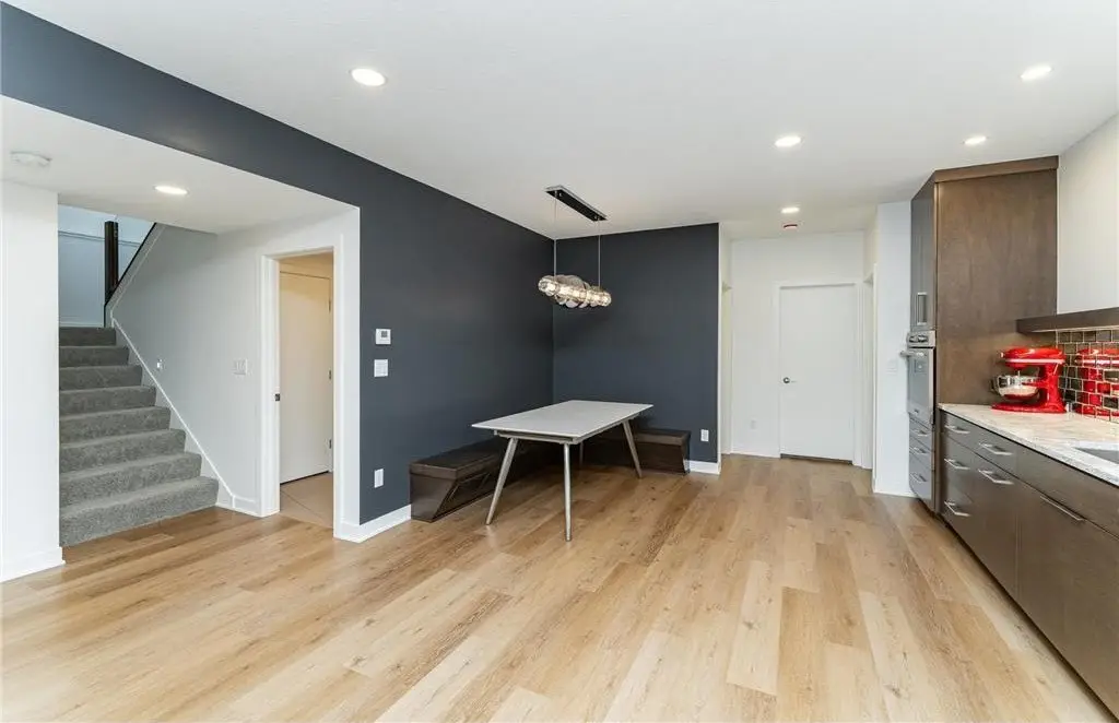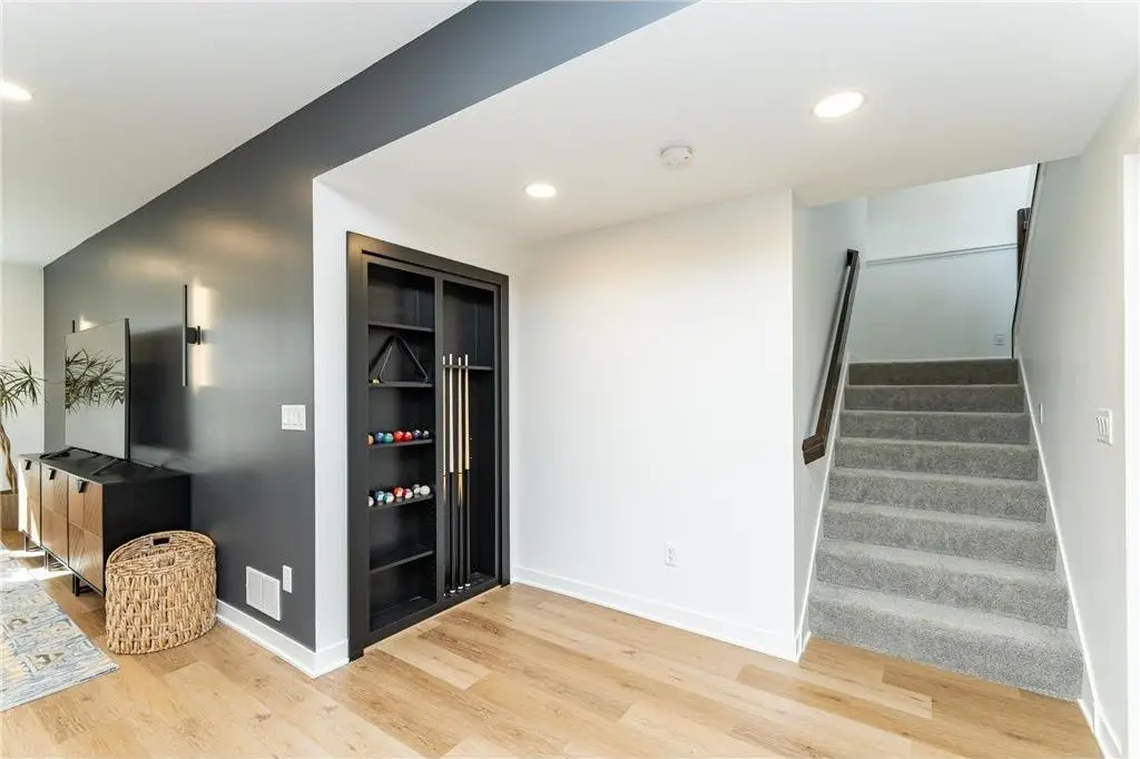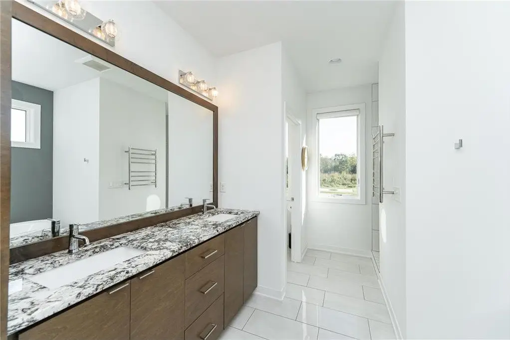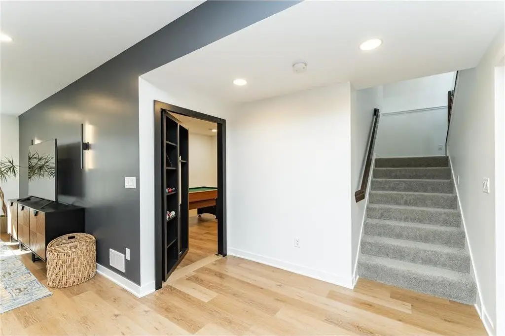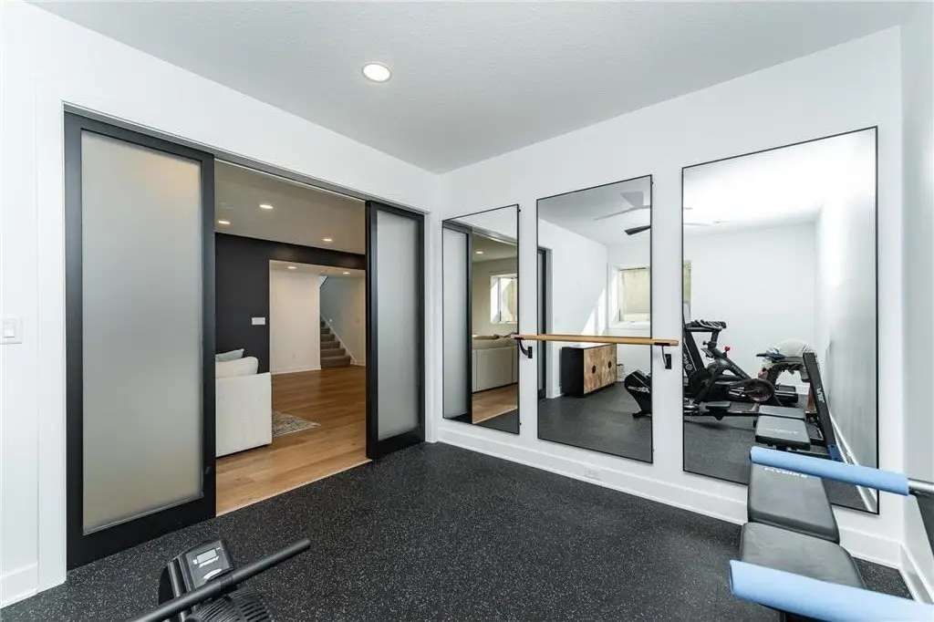 Welcome to this stunning modern home in the highly sought-after Mayo Woodlands neighborhood! Designed with clean lines, abundant natural light, and luxurious finishes, this 5-bedroom, 4-bathroom residence offers the perfect blend of style and functionality. The main floor features a spacious primary suite with his-and-hers closets, spa-inspired bathroom with soaking tub and heated towel rack, and conveniently located laundry. You'll also find a private office with custom built-ins, gourmet kitchen with a stylish and functional pantry, dining area, vaulted living room with expansive windows, and a well-designed mudroom. Upstairs, three generously sized bedrooms share a full bath, along with a second laundry room for added convenience. The recently completed lower level is an entertainer's dream featuring a lovely full kitchen, state-of-the-art exercise room with backlit mirrors, bathroom with faux skylight, large great room perfect for game or movie nights, a unique multi-purpose room accessible through a hidden door, an additional bedroom, and ample storage. Complete with a 3-car garage and positioned on a beautiful lot, this home is loaded with amenities and offers the best of modern living in one of Rochester's most desirable neighborhoods. Close to Mayo Clinic, schools, retail, trails and restaurants.