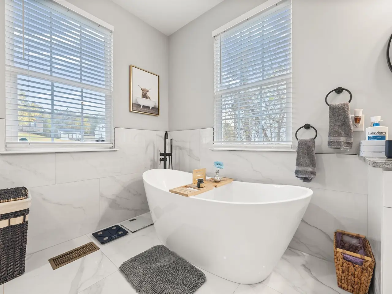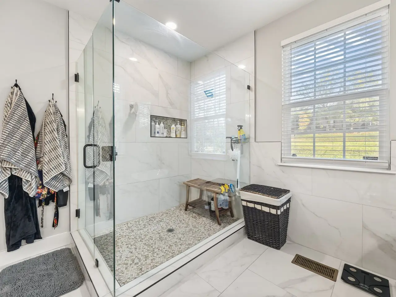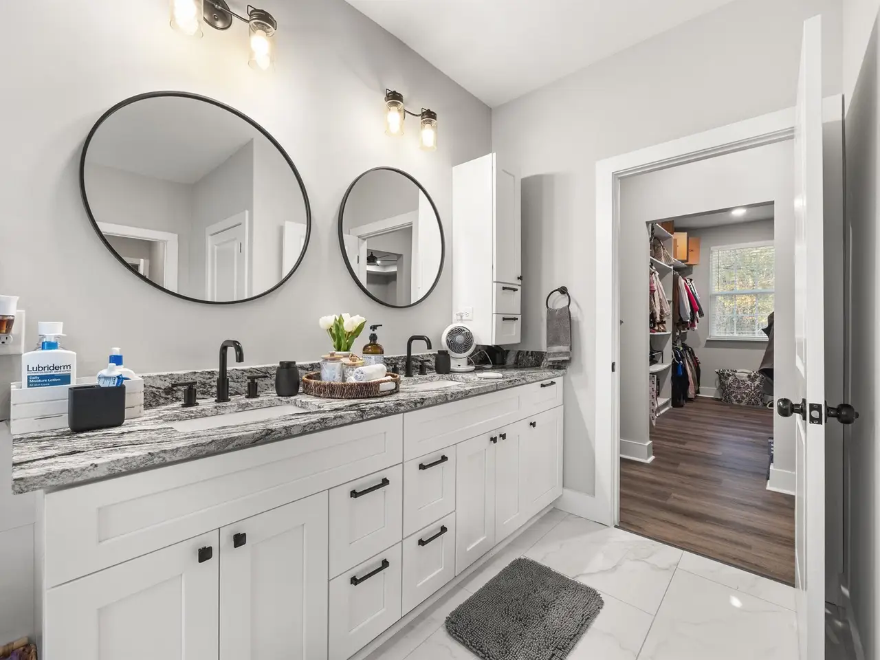 Dual vanities in ensuite bathroom