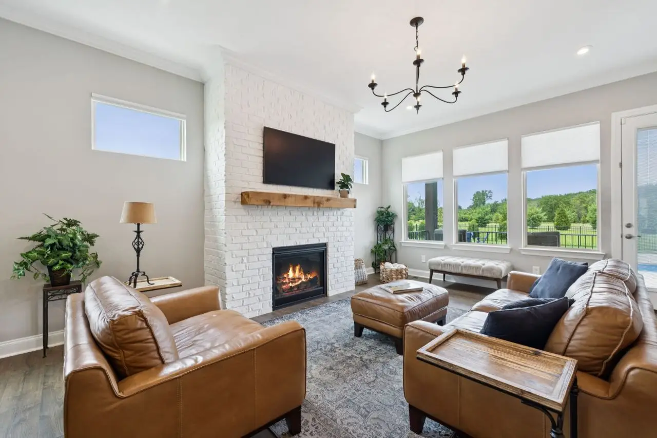 Welcome to a home that provides a blend of tranquility & luxury. This 2-story brick home set on over 3 acres invites you to breathe deeply the moment you arrive. Step through the grand iron lined front door into a bright foyer with high ceilings that lift your gaze. Each space is composed with intention, leading to the heart of the home an unparalleled open concept center. It is the perfect space for everything from warm family gatherings to an entertainer's dream with laughter and shared toasts! Start the morning with an espresso from the coffee bar adjacent to the kitchen. The kitchen features a double oven, gas cooktop, stainless steel appliances with included refrigerator, a spacious island with a ceramic farmhouse sink. The primary main floor suite features a large walk-in dressing room style closet, double vanities, and an oversized tiled shower. The utility area which consists of the laundry, featuring a stackable washer and dryer, and a family foyer leading to the garages. Behind sliding barn doors is a serene study/home office with a coffered ceiling. An additional bedroom and full bath complete the main level living area. Upstairs offers a continuation of warmth and fun for family and friends. A large, but cozy media room is ready for gaming, music, movies, reading or other hobbies. Additionally, another vast recreation area has room enough for features such as a 9-foot pool table, ping pong table, pinball/arcade machine, or any number of other pursuits. Two more bedrooms and a full bath complete the second level living area. Outside, a symphony of serenity awaits: a covered porch overlooks a spa-like pool glistening under Tennessee skies, a hot tub with privacy fencing beckons and a firepit casts flickering shadows as stars rise above. Exterior features also include a covered grilling area with electrical power for potential outdoor kitchen. The carriage garage provides storage for a boat, camper, etc. Country living w/ city conveniences minutes away.