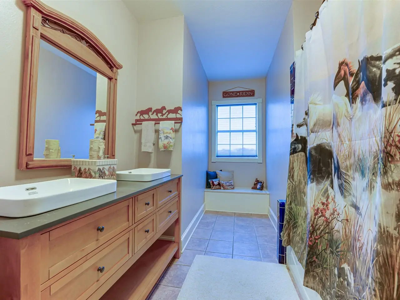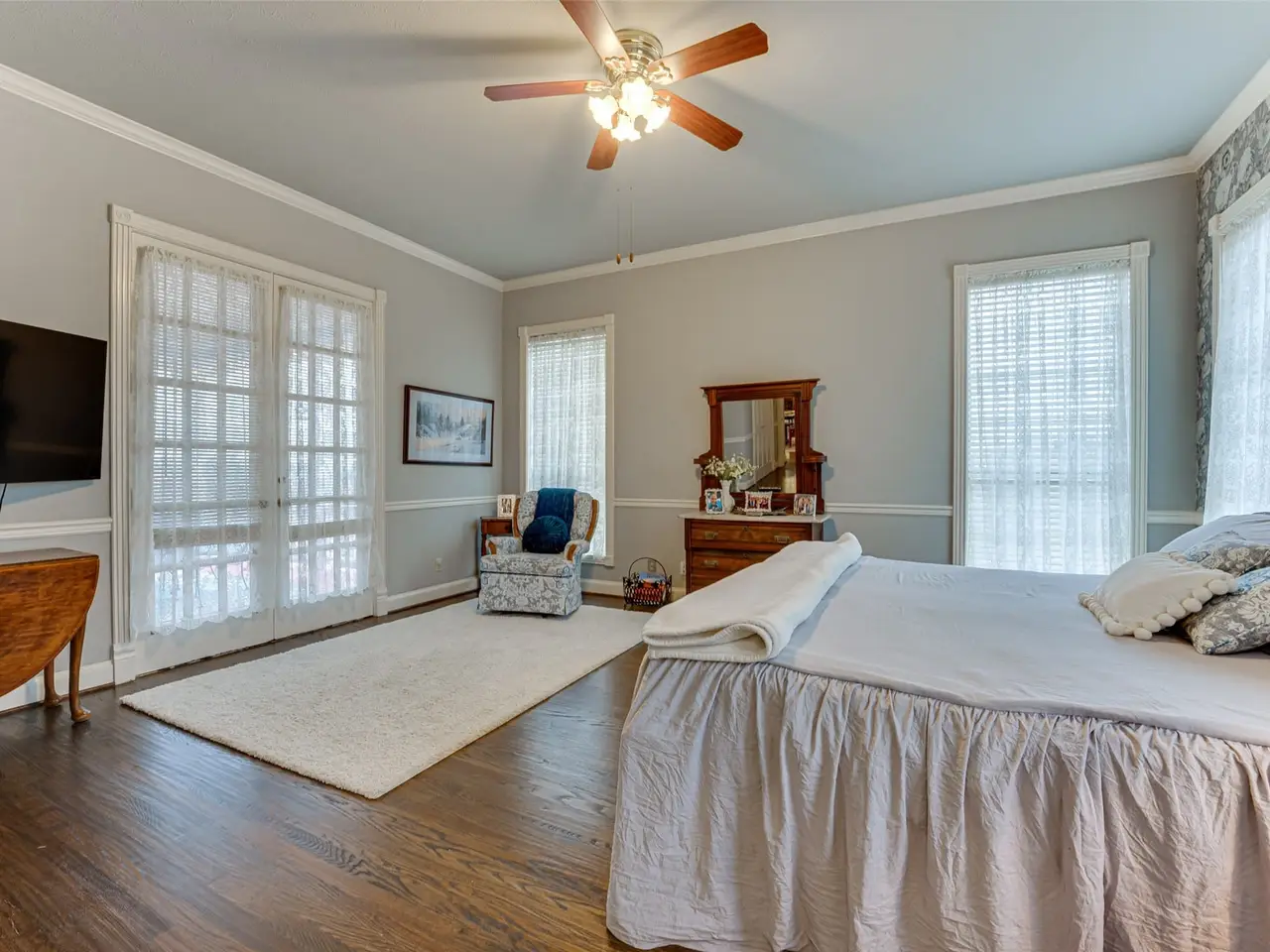 Timeless Farmhouse Charm on 14 Acres in Rockwall. Discover the perfect blend of rustic elegance & modern updates with this enchanting farmhouse, tucked away on 14.04 private acres. Just minutes from schools, shopping, and I-30, this property offers a serene retreat with a pond, barn, & picturesque views. Beautiful dormer windows, two full stone chimneys & glass doorknobs evoke the charm of yesteryear and add to the farmhouse appeal. Handscraped wood floors & 8-foot doors add timeless sophistication throughout. The spacious living areas include a large eating area featuring a wood-burning stone fireplace that opens to the updated kitchen, with gas range, breakfast bar, walk-in pantry & glass-front cabinets. Oversized family room offers a fireplace w-gas logs, antique mantle & custom corner built-ins. Primary Suite is on the main floor & boasts hand-scraped wood floors, 2 closets & doors leading to back patio, perfect for enjoying tranquil mornings watching the sunrise! Downstairs guest bedroom includes a full bath with clawfoot tub. 2nd floor has 2 spacious bedrooms, 1 featuring a built-in desk & shelves, the other offers a built-in window seat & shelves+large closets & updated full bath w-double sinks. 3rd floor retreat is a treasure that offers a media room (man cave) accented w-reclaimed barn wood, built-in desk, cabinets & wet bar. Additional highlights include front & back porches designed for soaking in sunrises and tranquil views of the serene setting. Whole-house fan & walk-in attic add practical charm. Property includes a 42x36 barn complete with five stalls, wash stall, tack room, water heater & electricity. Smooth-wire fencing. Updates include a metal roof, A-C & heating units, water heater, kitchen & more! This private, fenced property combines farmhouse elegance with modern convenience, making it perfect for those seeking a peaceful lifestyle with easy city access.