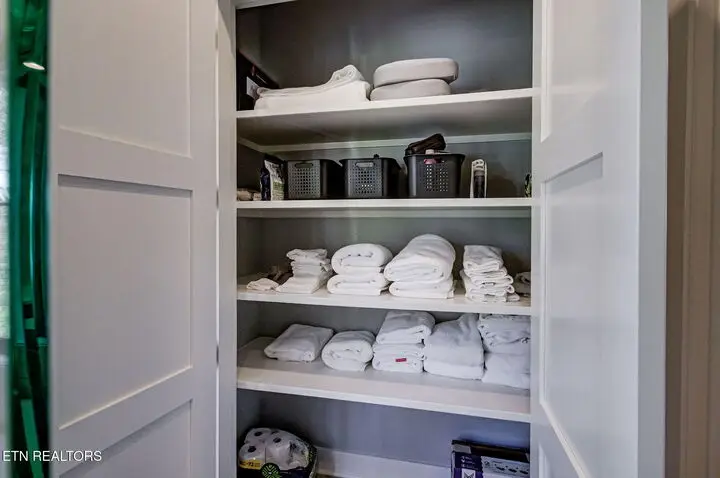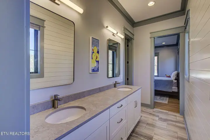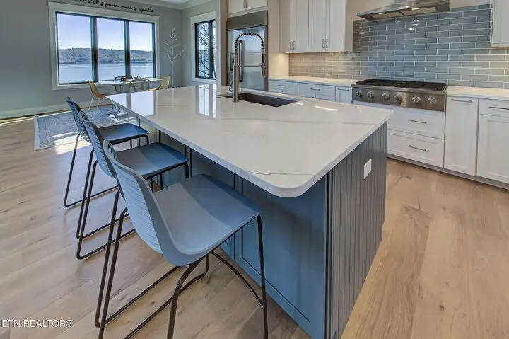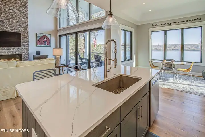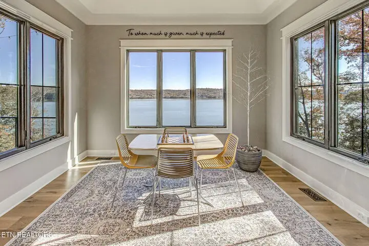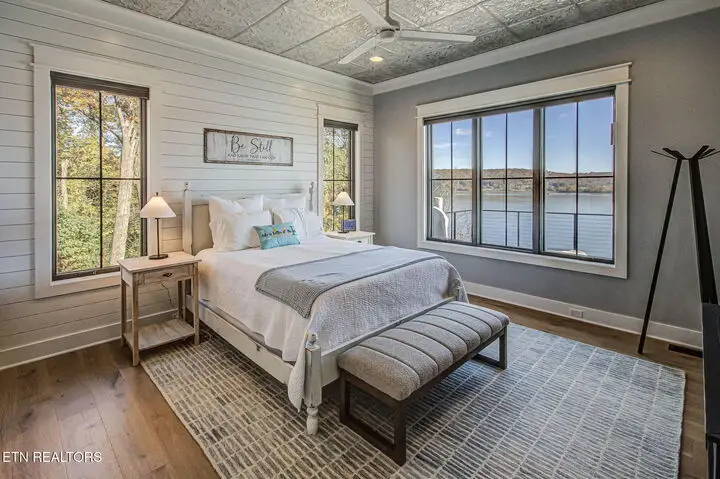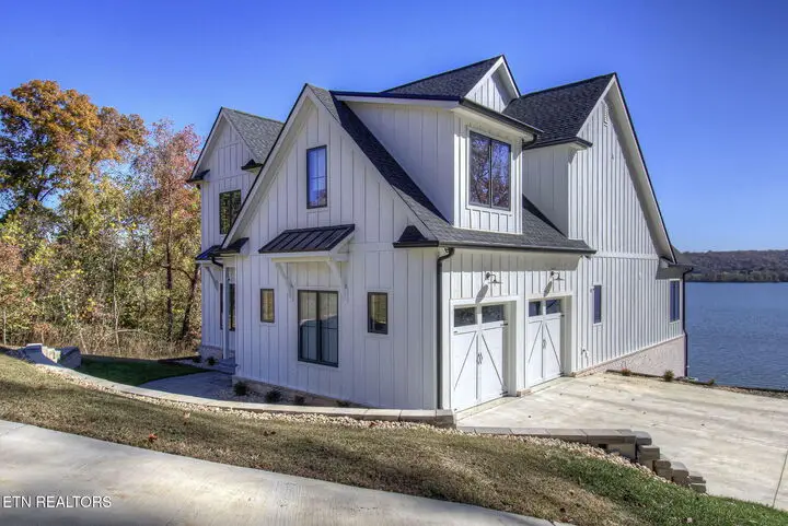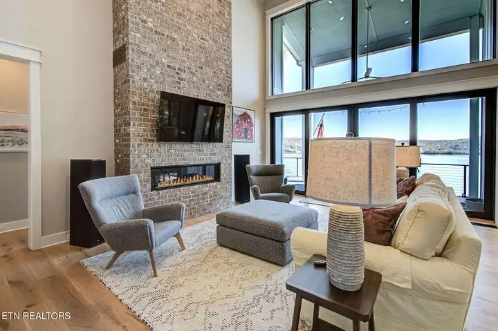The moment you walk in the door the lake view welcomes you home. With 22ft ceilings in the entry and great room, hardwood floors throughout and open concept living, this 2-story home that was completed in 2024 has a lot to offer. The grand Great Room hosts lake views through the four panel sliding doors that open up to a large composite deck to enjoy beautiful sunrises and open water views. Back in the great room relax by the floor to ceiling brick gas fireplace and custom paneled ceiling. Open to the kitchen with light colored extra high cabinets, all the outlets are under the cabinets making the beautifully tiled backsplash flawless to the eye. A large island with quartz countertops and barstool seating and extra storage, a 6-burner gas cooktop and stainless-steel appliances, built in refrigerator, Advantium convection oven and a walk-in pantry. The dining room off the kitchen offers lake views through beautifully cased windows. Retreat to the Primary Bedroom with those endless lake views, a custom tin ceiling and shiplap feature wall offers peace and charm. Step into the dreamy ensuite with dual vanities, an oversized soaker tub with a view and zero entry tile shower with a seat, niche and frameless glass door. Large linen closet and private toilet. Wait until you see this primary oversized walk-in closet with organizers and window bench seat with storage. The mud room and laundry finish off the main level with New York Subway tile floors, a bench seat with cubbies and custom feature wall, counter space, utility sink and extra storage. Here you'll find access to the two car extra deep garage with lots of natural light. The second story offers 3 more bedrooms, one of which is oversized with a window sitting area and has its own ensuite with a walk-in shower and floor to ceiling tile. The other two large bedrooms, one with its own balcony that is currently being used as an office, has those amazing lake views, they share a jack and jill bathroom with dual sinks and beautifully tiled walk-in shower. So many thoughtful features on this home such as all of the wall outlets are on the baseboards making them almost seem invisible as well as the light switches are Smart Switch system that you can control when away from home and the coat closet in the foyer has a secret wall inside of it to store what you'd like to keep hidden. With 149 feet of shoreline, this dockable property is ready to move in and call home! There is a $160 GVBPOA Account Set Up Fee to Buyer at closing.