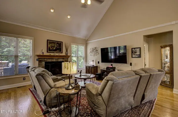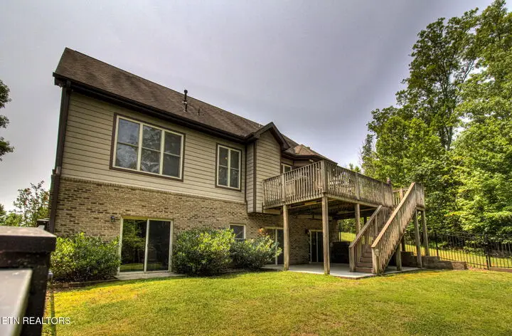 Nestled on 5.43 acres this home offers so many special things. Main level living Primary bedroom with double tray ceiling and walk in shower and a soaker tub. Two other bedrooms with a bath a laundry room. Kitchen with wall ovens a induction smooth cooktop does have a gas outlet if you want to convert and also has a nice breakfast area looking out on the patio and the woods with access to deck for grilling meals. Great room with a fireplace and a formal dining area complete this level. There is a bedroom suite upstairs with a bath and hidden office. A walk-in full attic storage area that can be finished for a bonus room. Lower level features living area/ Bedroom studio and full bath with access to outdoor patio, a well appointed Wet Bar and Game room, Indoor Spa room with access to outdoor patio. The kitchen with double ovens, fridge. Tons of storage areas and a workshop. The lower patio area has a fenced back yard for your animals or play area to go out and enjoy the outdoors. 2 Car garage with a portable ramp for easy access into the home if needed. Oh did I mention the whole house generator all located in a Gated community on Watts Bar Lake. If you saw this house before the floors have all been refinished and new carpet, new HVAC. Please visit us again it is time to sell.