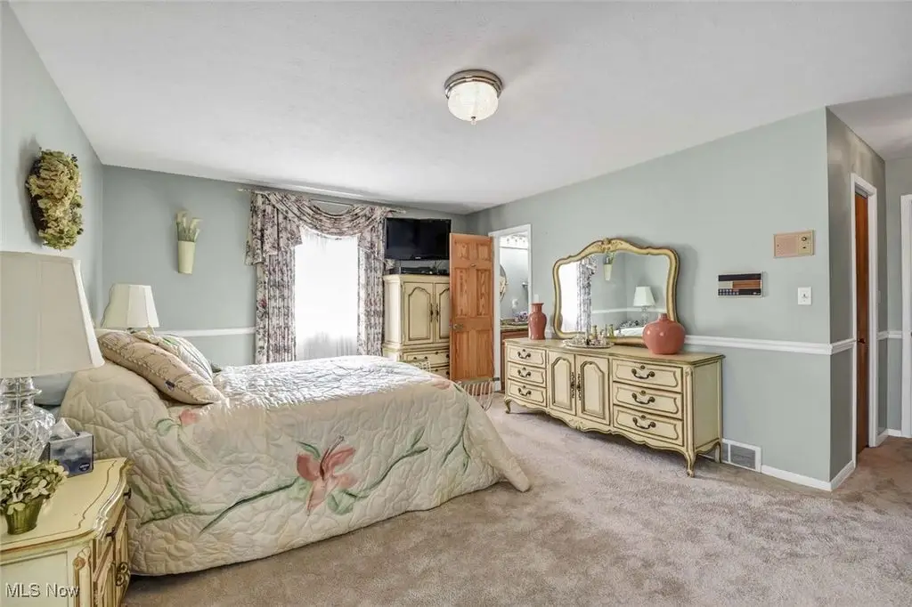This luxurious contemporary colonial with circular drive is situated in a prime Rocky River location and offers a plethora of outstanding features for the refined buyer. The home offers a 1st floor master bedroom suite, an additional full bath and a 1st floor office/ 4th bedroom, a double sided gas fireplace in family room & living room, marble foyer, custom made window treatments, ornate crystal chandelier in dining room, two skylights, track lighting & beamed vaulted ceiling in the family room, finished basement with wet bar, additional library & half bath. Recent upgrades include: new roof (2022), new AC (2023), an updated kitchen with new stovetop and white cabinetry, updated master bath and 1st floor full bath (2019), new carpet in master bedroom and basement (2024). The landscaping is absolutely beautiful with flower beds. Three season 19x10ft sunroom opening to master bedroom, family room & backyard with concrete patio & free-standing wood deck.