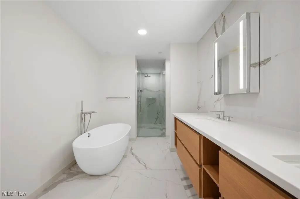 Welcome to 700 Lake! With magnificent lake views from the balcony of 306, you can relax and unwind in luxurious lakefront living. 700 Lake is an exceptional lakefront residence that stands as a testament to luxury living. Nestled between New York and Chicago, this prestigious development offers a harmonious blend of classic architecture and modern design. Situated in the scenic community of Rocky River, 700 Lake is thoughtfully designed to forge a connection with the natural beauty of Lake Erie. No detail was spared in this open concept design. Specific to unit 306 is a gorgeous owners suite, with large closet and custom cabinetry, and a bathroom to indulge yourself in with beautiful stone and tile work and soaking tub. Two additional bedrooms, with full bath and powder room. Enjoy the best of Cleveland weather relaxing in the newly completed heated pool, grilling in the outdoor kitchen, or sitting fireside on a cool evening, all the while taking in the breathtaking views sunrise to sunset! Cutting edge, smart home technology and two parking spaces included in the subterranean parking garage. Call to schedule a tour of this rare opportunity of easy, luxury living on Lake Erie today!