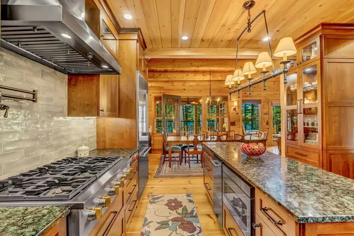 LONG POND Masterfully crafted with impeccable taste & high-end finishes throughout, this Adirondack-style 4BR/5BA home offers complete privacy on a larger 1.95 acre lot with 257' of bold, deep water lakefront featuring nightly sunsets on one of central Maine's best lakes! As you walk-in the formal entry you will be immediately greeted with lake views that open to the living room featuring a grand stone fireplace, chandelier & lofty cathedral ceilings. A lovely sunroom is where you'll want to spend your time that opens to the expansive lakeside deck with a large staircase to access the yard & waterfront. The designer, gourmet kitchen was just completed with beautiful granite countertops, tiled backsplash, high-end stainless steel appliances, custom cabinetry, stately lighting & also includes an impressive 8x16 walk-in butler's pantry with sink, wine fridge & ample storage that will surely please any home chef with an adjacent dining area perfect for entertaining. A massive, luxurious primary ensuite wing features a wall of windows with stunning lake views, fireplace, private dressing room with extensive built-in storage & make-up station, a spa-life bathroom with soaking tub & walk-in shower and a second level loft overlooking the lake perfect for your home gym. At the other end of the home is a second ensuite currently set up as an office with a full bath with walk-in shower & soaking tub and laundry room. Above are two more ensuite guest bedrooms with lake views connected by a cat walk overlooking living room & grand foyer entry. On the ground level you can enjoy a fully equipped home theater, game room with bar & half bath, overlooking the water with direct access to the lakeside patio surrounded by perennials (Lake Smart Award Winner!)—perfect for entertaining on rainy days or in the evenings. Whole home generator, security system, sound system, 2-car garage storage with covered walkway, 14'X10' shed, all new heat pumps & many more upgrades for easy lake living