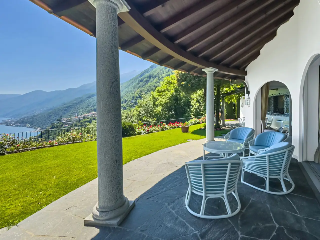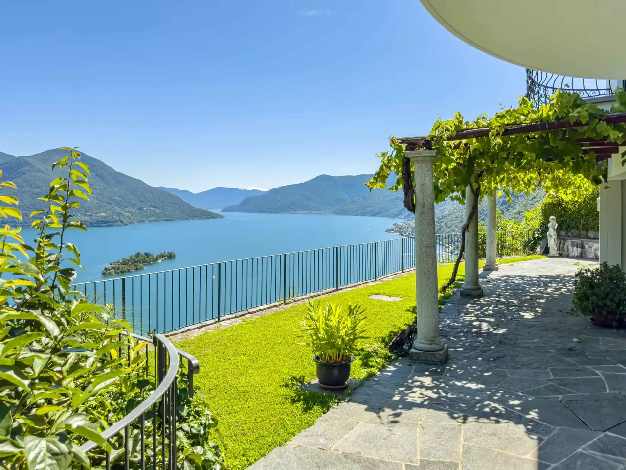 • Magnificent views of the lake & the Brissago Islands • Dream location surrounded by greenery, peace, & privacy • Also suitable as a secondary residence • Separate guest apartment & building potential for an additional property