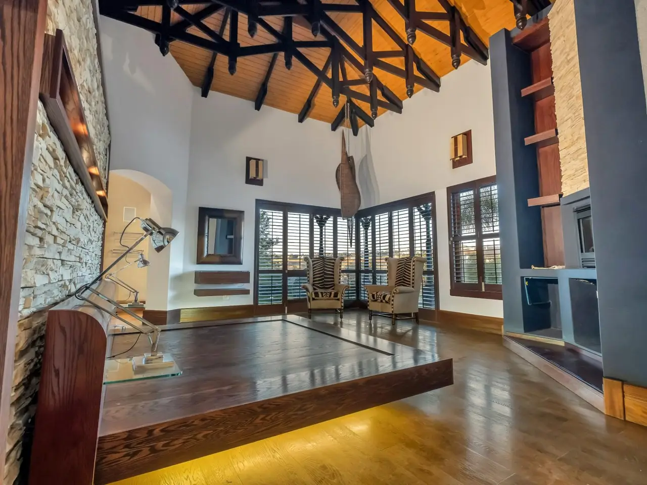 • Double-volume entrance with dark wood beams