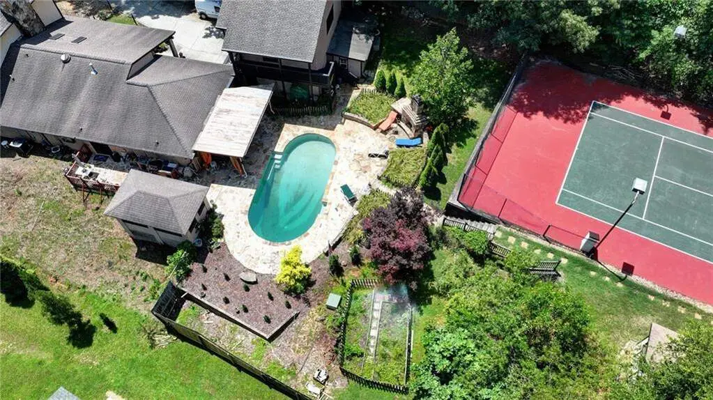 Welcome Home to your Roswell estate! This professionally landscaped (acre) property boasts a main house with 5 bedrooms, 4 and a half baths, including the primary on the main. Space over the garage has all utilities available and ready to be built out to your specifications (gym, office, studio, guest suite...anything you want!) Spacious chef's kitchen with professional appliances, opening to generous areas for living and entertaining, expansive windows allowing for copious amounts of natural light, and endless possibilities. Walkout to the sparkling pool and pool house, and on to the tennis court, and guesthouse. Finished basement and temperature controlled wine room. This private oasis is close to Canton Street and all that downtown Roswell has to offer, including dining, culture, entertainment, as well as Roswell's coveted schools. Priced to sell with room for improving, this is a do not miss!