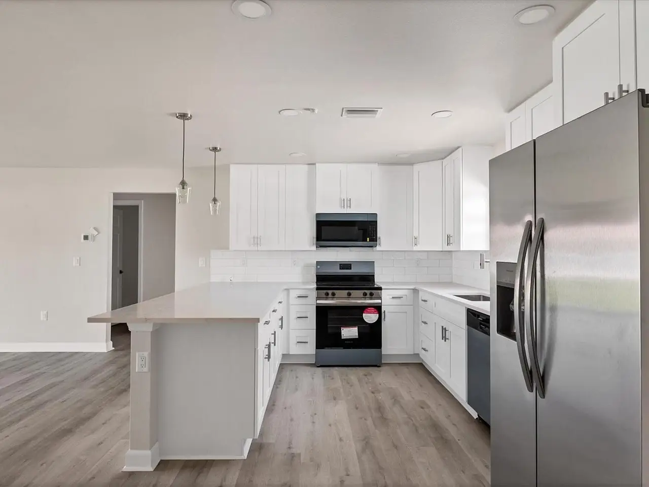 • Stainless steel appliances with shaker ivory cabinets