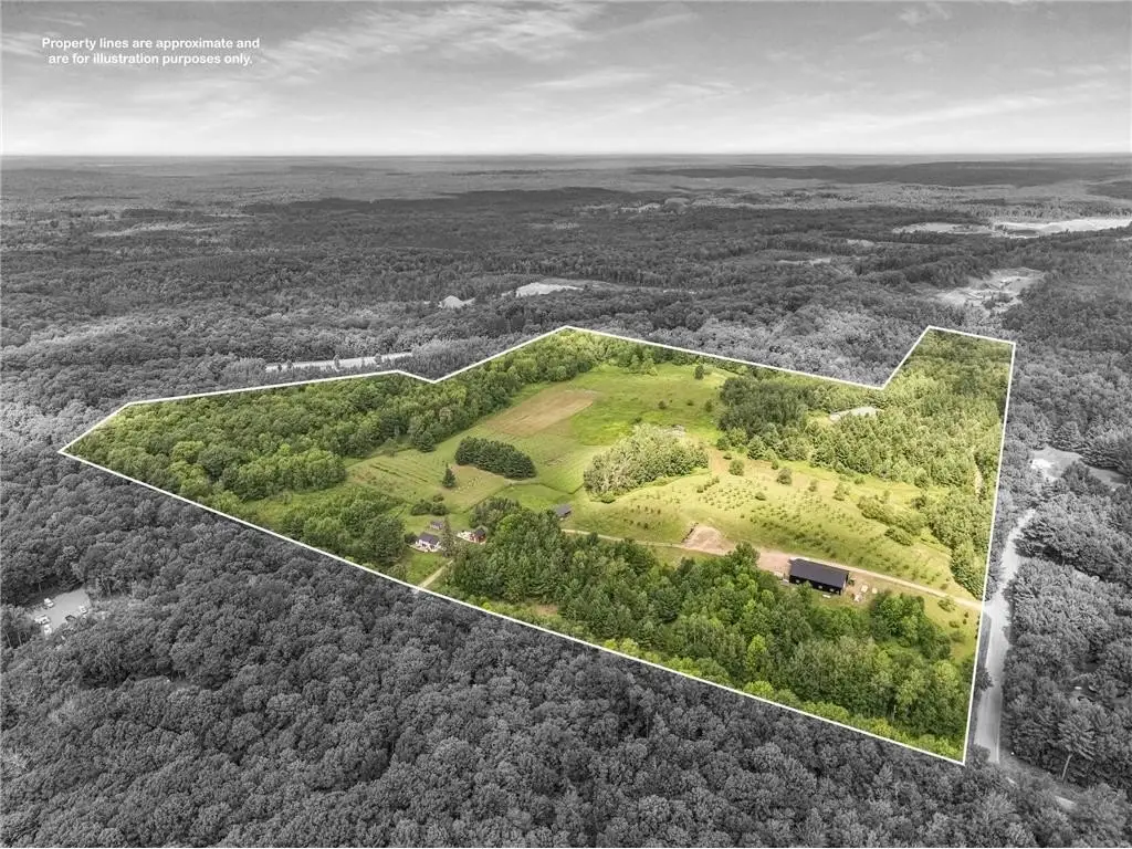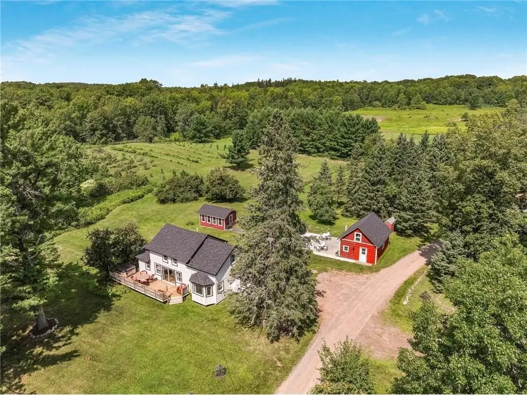 Discover a one-of-a-kind rural oasis in Hayward, WI., just moments from the water: a beautifully reinvented property that sits on 50 acres featuring an event barn, a chic cigar-bar housed in a lovingly restored structure, & a state-of-the-art commercial kitchen poised to handle any event. The home offers three bedrooms & three bathrooms that have been updated for modern comfort without compromising the charm of this unique property. The 60'X100' pole shed & heated 50'x80' machine shed offer flexible storage or workspace, while outside, a flourishing orchard of hundreds of apple trees and other fruit bearing trees & grapes, welcomes guests with seasonal beauty and harvest potential. With thoughtful updates, this property effortlessly blends rustic character and modern functionality-creating an ideal backdrop for celebrations or a distinctive lifestyle experience. Don't miss this rare opportunity to own this beautiful turnkey property wrapped in natural charm.