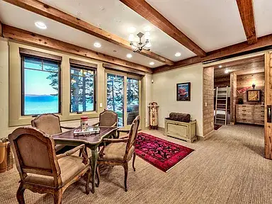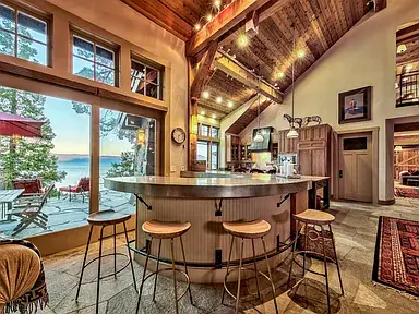Amazing Rubicon Lakefront with a private sandy cove and one of the few houses to still have a sandy beach even during high water years. Zodiac to be included in sale for boat taxiing! SELLER FINANCING AVAILABLE AND PROPERTY TRADE OPTION available if you have something that suits seller's needs! This custom-built mountain-style lakefront lodge truly encompasses Lake Tahoe, living in a more pure and genuine capacity than measurable. A once in a lifetime opportunity. Escape from the hustle and bustle of the outside world and indulge in a gathering place that is anxiously awaiting for you to kick-back, relax, reconnect, and smell that mountain air. Feel life giving water, and get back to what's really important. Located on the awe-inspiring, iconic West Shore of Lake Tahoe, this private sanctuary truly embraces the serenity of its surroundings. Perfectly situated on a pristine white sand beach cove, protected from the elements by rock jetties at each end, you can truly indulge in the seclusion and privacy this property provides and soak in the infinite benefits of this natural paradise. Built with unparalleled craftsmanship and attention to every last detail, this custom-built mountain-style lodge offers a truly elevated living experience. Prepare to be captivated by sweeping vistas of both the lake and mountains from almost every room. Featuring four ensuite bedrooms, a lakeview den with fireplace, bunk room, family room, and a massive, jaw-droppingly stunning great room, this property was meticulously designed to create an exceptionally comfortable living space allowing for effortless entertaining all the while, providing plenty of privacy. The breathtaking foyer graced with durable walnut flooring overlooks the great room’s soaring vaulted ceilings with grandiose fir trusses and warmly embraces you with a luxurious yet leisurely feel. An exquisitely custom staircase adorned with hand-forged metal railings leads down to the well-appointed chef's kitchen, featuring stainless steel Viking appliances and elegant fixtures that overlook the crystal clear waters of Lake Tahoe. The great room is open and welcoming. Complete with a custom-built pewter bar, handcrafted in Portugal and a massive granite fireplace, this spacious yet cozy gathering place is where cherished memories are waiting to be made. Simplicity is key to lake and mountain life alike, and the Lutron lighting system that brilliantly illuminates every corner with just a touch of a button certainly helps keep things easy. Travertine in-floor hydronic heating adds to the list of the many thoughtful amenities and the custom hardware throughout adds so much character, giving this gorgeous lakefront lodge a sense of sophistication and class. Finally, retreat to the primary suite, which boasts a granite fireplace, walk-in closet, and spa-like bathroom with shower stall and soaking tub, allowing you to unwind and marvel at those captivating turquoise Tahoe waters after a long day of playing outside. Enjoying the lake is of course #1 and with 4 buoys (2 permitted) and you can have all the lake toys you've always dreamed of, accessible via your own PRIVATE white sand beach cove! Attention to every single detail offers as much heartwarming comfortability as it does extravagance. It's Tahoe, it's family, it's friends, it's captivating, it's magical and it's absolutely priceless. Property is part of the optional Rubicon Tahoe Owner's (RTO-South Beach) HOA. The HOA provides beach access, shared pier, buoy rentals, water sport equipment storage (i.e., paddleboards and kayaks), and a volleyball court.