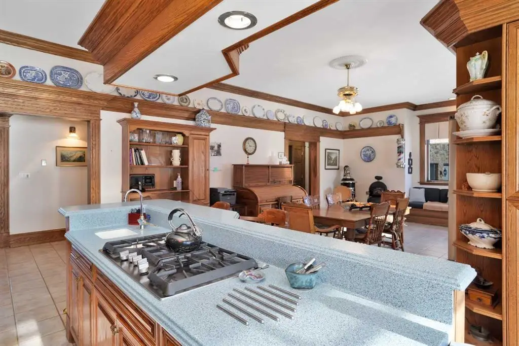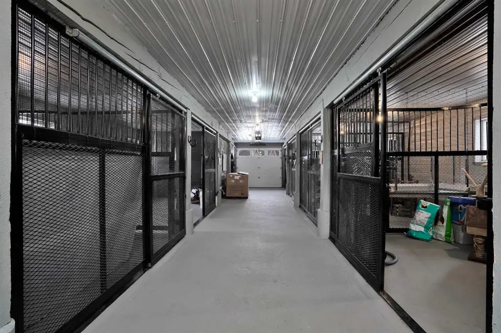 Nestled deep in the foothill, 45 minutes west of Calgary International airport, this completely custom-built masterpiece is a true work of art, designed for those who appreciate craftsmanship, privacy, and timeless beauty. The exterior is a testament to authentic, old-world craftsmanship, featuring hand-picked field stone sourced directly from the owner’s properties. The home hosts a level of craftsmanship rarely found today. Stepping inside, the grand foyer set the tone for the rest of the home. A vintage bronze fountain, meticulously built using porcelain, Alberta river rock, and Ammonites, adds an organic, artistic touch. The grand staircase, a structural and artistic masterpiece, was engineered for stability and handcrafted. An elevator, that services each floor. Through the main entrance is the stunning games room which is a true showpiece, A wine bar and custom full bar, complemented by a matching coffee bar and built-in window seats that double as discreet storage elevate the space. Off the games room is the indoor pool area which is a luxurious retreat. Whether you want to lounge in the warmth, swim at your leisure, soak in the hot tub , relax in the sauna, this space offers endless possibilities. At the heart of this home is a true “working” country kitchen, designed for multiple people to cook, prep, or gather. Conveniently located near the formal dining room and oversized pantry, it allows for providing both elegance and seamless functionality, while the spacious layout ensures effortless entertaining and everyday comfort. The basement level is a fully finished entertainer’s dream. Includes entertaining area with a 2 Pce bathroom and the theater room . The theater room is a dedicated cinematic retreat, featuring a custom-built permanent movie screen. Designed for peak sound retention, the entire space is fully insulated, ensuring an immersive experience. The main house includes 5 full bedrooms each with ensuites. The master suite is a private sanctuary, blending warmth, history, and comfort. A striking fireplace wall, handcrafted from solid oak, serves as a focal point, 2 walk-in closets and the private loft/turret. A hand-milled solid oak spiral staircase leads to this secluded space, which is bathed in natural light from multiple skylights. This loft offers a serene escape from the world below. An underground tunnel provides access between the lower agricultural level and the home. Three springs supply fresh, naturally sourced water straight from the property. A 3-bedroom suite above the garage and two apartments above the barn provide independent living space for staff, guests or family. The Upper Barn includes 9 Stalls, a wash bay & office perfect for an equestrian lifestyle. The original farmhouse & working barn yard adds to its functionality, charm and history. Every detail of this home has been carefully considered, combining expert craftsmanship, rare materials, and thoughtful design... This is more than a residence—it’s a true legacy property.