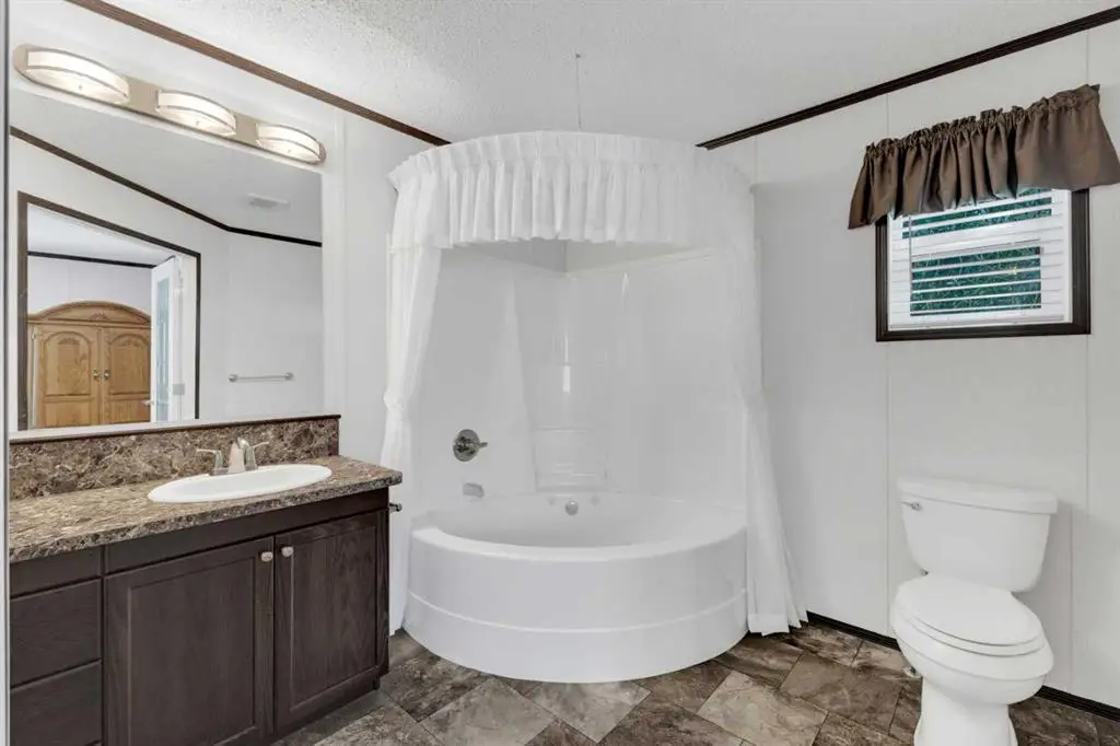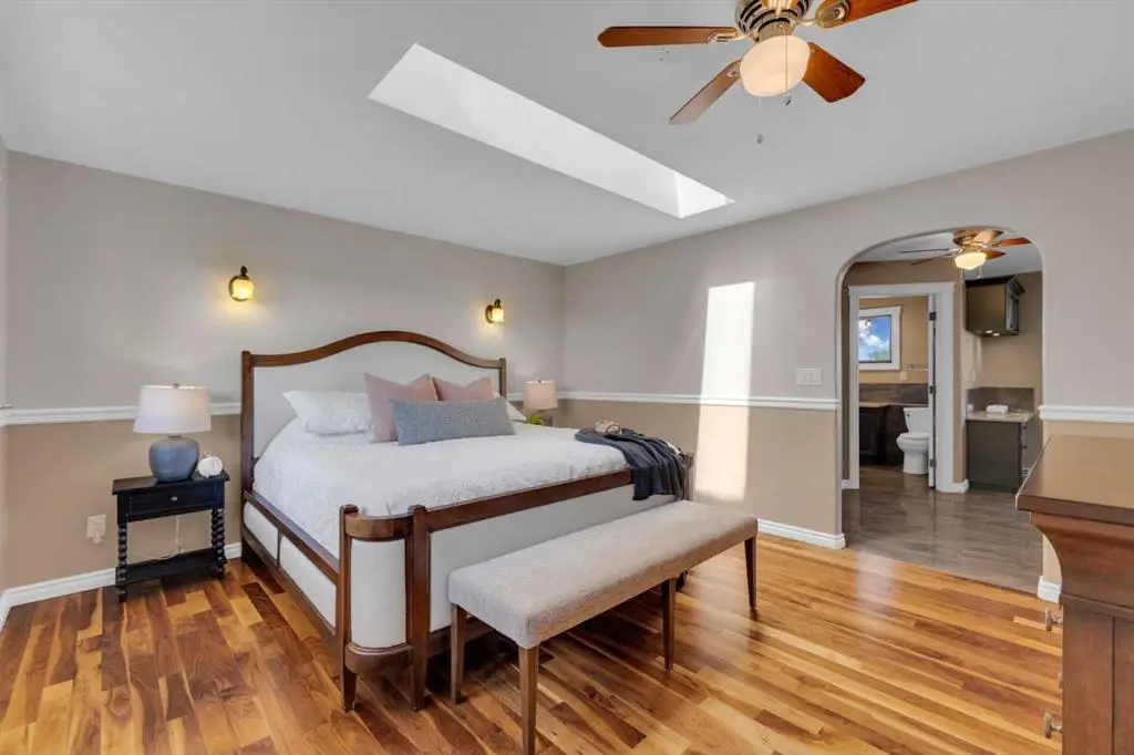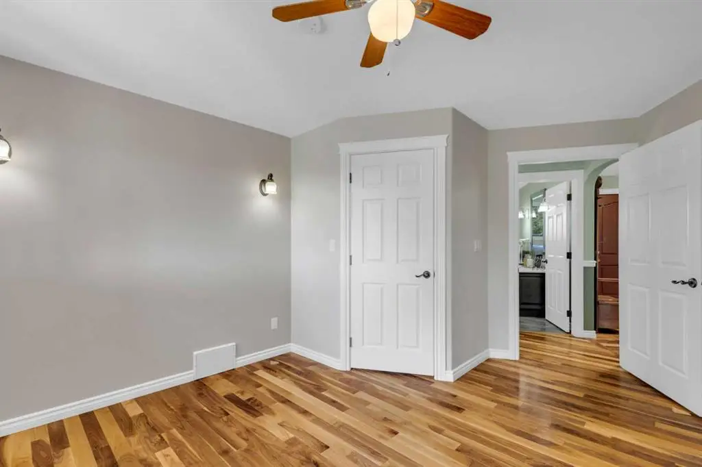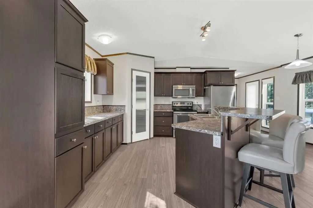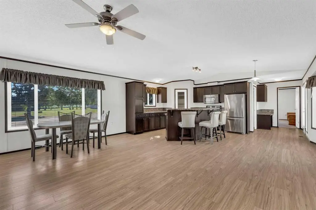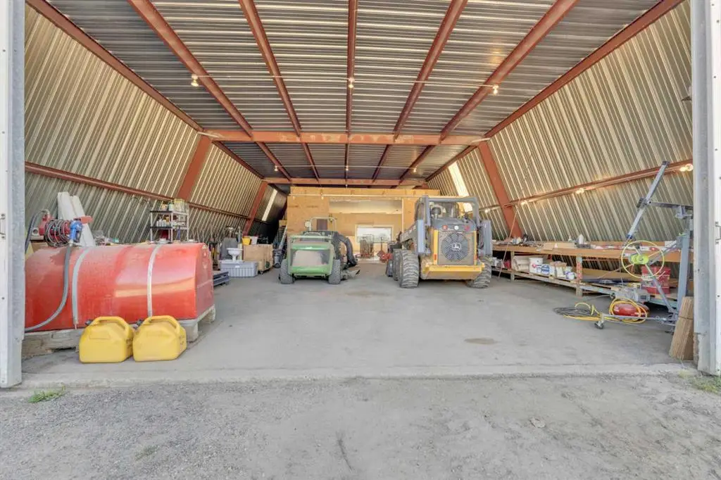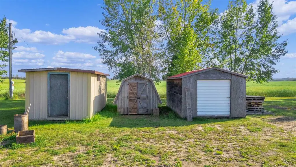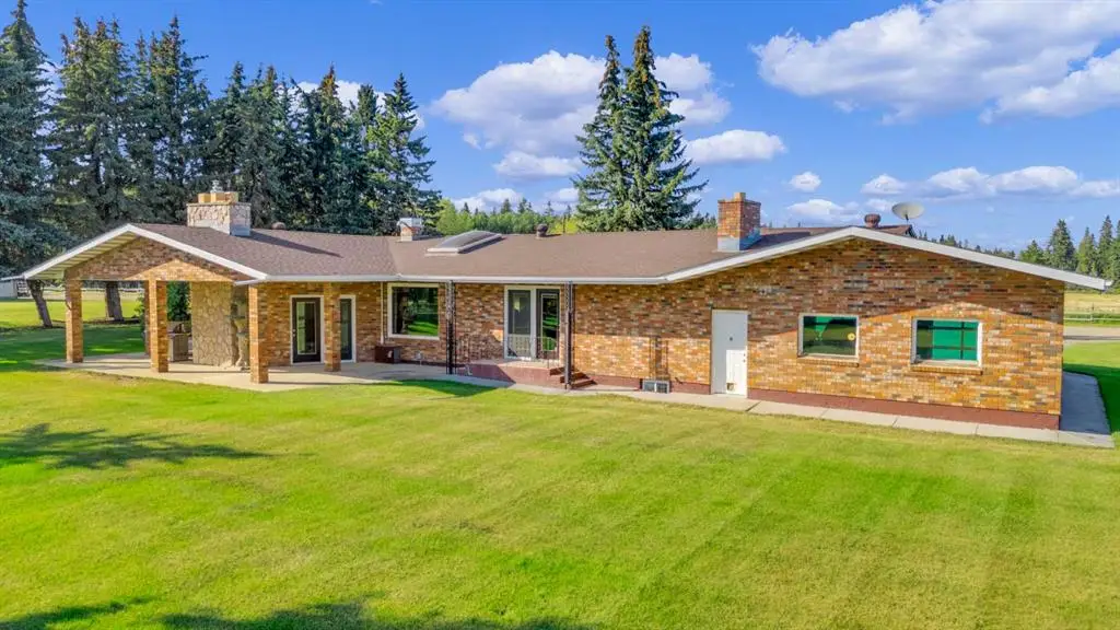 This exceptional property offers 17.92 acres with two residences, a fully finished shop, and multiple outbuildings, located just 1 mile off Hwy 11A on a quiet dead-end road for added privacy, while still providing quick access to both Red Deer and Sylvan Lake. The main home is a spacious bungalow, fully renovated in 2016 with a new roof in 2010. Highlights include hardwood and tile flooring, granite countertops throughout, and an open concept kitchen with a large granite island, black stainless steel appliances, induction cooktop, convection wall oven, warming oven, built in microwave, beautiful cabinetry, and a stunning tile backsplash that flows through the kitchen and dining area. The living room features a wood-burning fireplace, while the sitting room offers a gas fireplace. The primary suite includes a walk-in closet and a luxury ensuite with full bathroom and a deep soaker jet tub in its own private area. Two additional main floor bedrooms, a full bathroom, a half bathroom and the laundry area complete the main level. The basement is nearly finished with a large recreation room, cold room, and utility room with two furnaces, water softener, and A/C. The attached oversized double garage is heated with radiant heat. A second residence, a 2014 manufactured home, offers 3 bedrooms, 2 full bathrooms, air conditioning, washer/dryer, a walk-in pantry, a primary suite with walk-in closet, and a deep corner jetted tub. Outbuildings include a 60’ x 100’ heated shop with radiant heat, three oversized doors (16’ and 14’), bathroom with urinal, washer/dryer hookup, concrete floors in excellent condition, and 220V power in shop (3), quonset (2) and garage (1). Additional buildings include a 70’ x 40’ Quonset with concrete floor, power, and roughed-in underfloor heating, plus five sheds. Both the shop and Quonset feature durable metal roofing. Approximately 16 acres are currently seeded to barley under a gentleman’s agreement until mid-September. This rare offering combines two residences, extensive outbuildings, privacy on a dead-end road, and a prime location close to town — the opportunities here are truly endless.