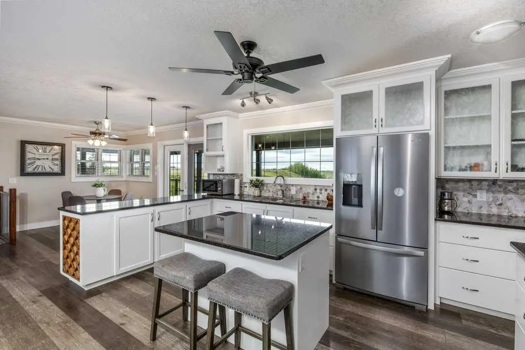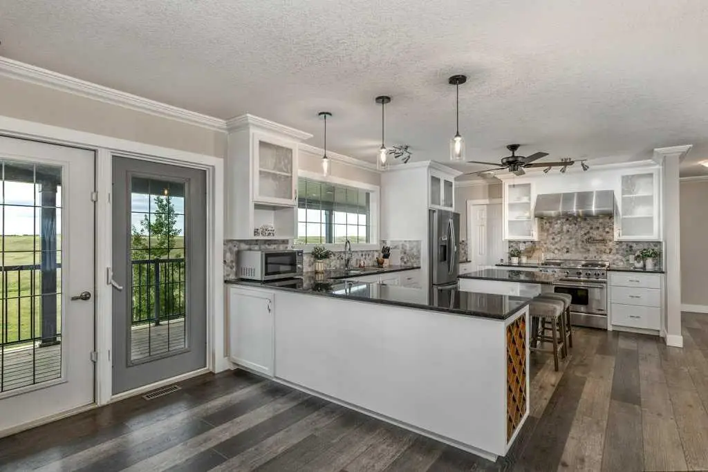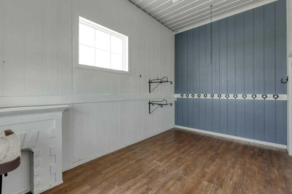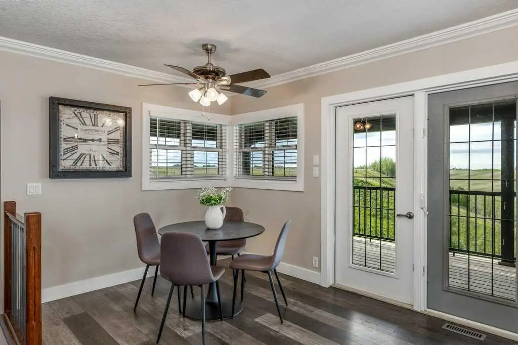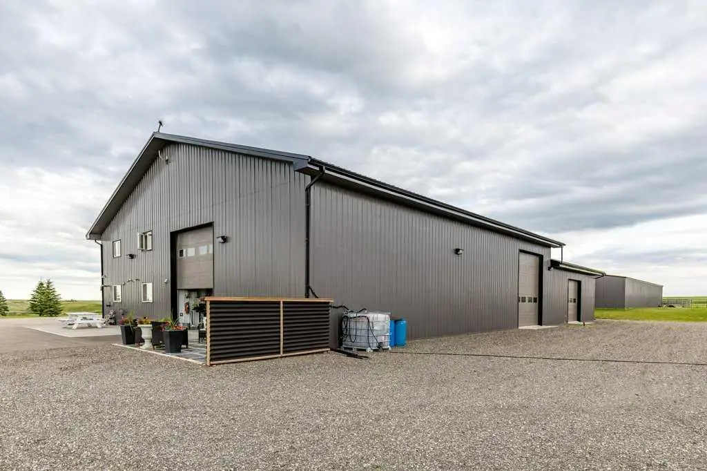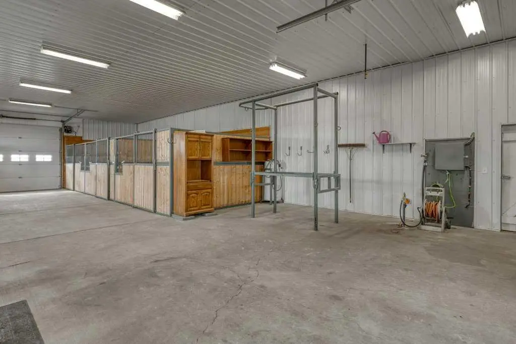 An equestrian dream awaits on this immaculate 79.5-acre property east of Crossfield, designed with horse lovers and outdoor enthusiasts in mind. Fully paved to your doorstep, this impeccable set up features a lovely 3 bedroom ranch bungalow with wrap around deck and beautiful landscaping overlooking a pastoral coulee and creek to the North. At the heart of the property is a heated 6,000 square foot shop/barn with oversized doors, in-floor heat, and a comfortable self-contained guest area (not permitted as an ADU). The barn includes a drive-through bay for easy livestock handling or parking your motorhome/ truck & trailer (19’ x 58’), a large shop area (44’ x 29.5’), gorgeous barn with four oversized box stalls, tie-stall space, a vet-grade walkthrough bath/vetting station with hot and cold water, and a well-appointed tack room/office. This building has two bathrooms, one on the lower area with a shower and a second on the upper floor as well as laundry. Outside you will love the professional 140’ x 220’ outdoor arena with roping boxes, an alley for cattle, and an adjacent holding pen, perfect for your multidisciplinary equestrian pursuits. There are six 50’ x 15’ turn out pens, each with shelters, auto waterers and feeders. There are several grass pastures and approximately 60 acres are leased annually for crop, offering added versatility and farm income potential. The house has modern country charm, nestled on a hillside to take full advantage of stunning coulee and creek views, enjoyed from the massive wraparound veranda. Inside, the home offers a comfortable and versatile layout with a custom kitchen featuring granite countertops, a 36” Capital gas range with a pot filler, prep island with seating and ample dining space. The kitchen flows into a bright living room with cozy gas fireplace and a large formal dining area perfect for entertaining. There are two bedrooms on the main floor, including one with a 3 piece ensuite bath with access to the covered deck. Downstairs the beautifully finished walkout basement is a private retreat with a spa-inspired primary suite including a large walk-in closet, ensuite, laundry, and garden doors opening to a hot tub-ready patio. A generous second living room featuring custom built-ins and full bar area complete the lower level, offering space and comfort for both relaxation and entertaining. The house has a double attached heated garage with epoxy floor which is currently being used as a man cave/ gym space. Conveniently located just 20 minutes north of Calgary International Airport—and only 5 minutes from Irvine’s Western Store—this property combines rural tranquility with unbeatable accessibility. Pavement leads right to the front door, and the home is set well back from the road, offering exceptional privacy. A secure Command Gate ensures controlled access and added peace of mind, while page wire fencing surrounds the yard to keep your four-legged companions safe. Ag-Gen zoning. GST applicable.