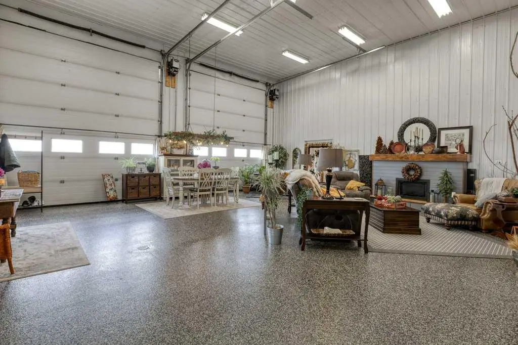 Double attached heated garage with epoxy floor