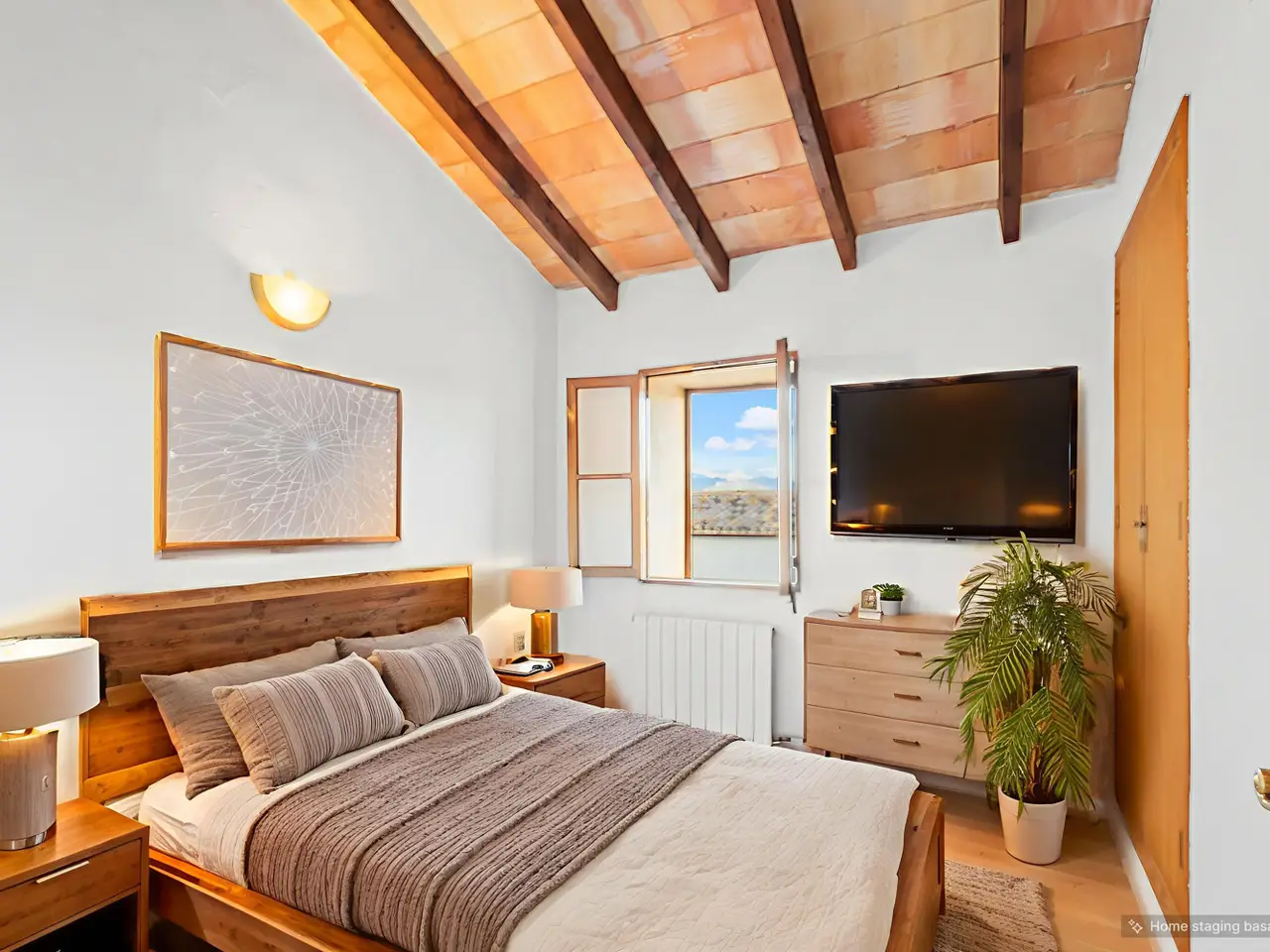 This beautiful, completely renovated house is located in the heart of Sa Cabaneta, Marratxí. Just a few meters from the town hall, schools and the town center, it offers easy and quick access to all the necessary services and leisure options. The house, distributed over two floors, has almost 160 m² of living space and sits on a great plot of approx. 269 m². It has four spacious bedrooms, two comfortable and functional bathrooms, a large living room with fireplace and a beautiful kitchen. The house is equipped with double glazing, central gas heating and air conditioning for cooling and heating, which makes it possible to enjoy pleasant comfort all year round. Outside there is a large porch of about 32 m² with dining area, a beautiful green garden and a magnificent pool, ideal for relaxing on hot days. For the convenience of the owners, there is also a private garage. In addition, some photos have been generated with home staging to make the potential of the premises even more tangible. Locations Sa Cabaneta is a charming village in Mallorca, part of the municipality of Marratxí, near Palma, with around 8,000 inhabitants. Sa Cabaneta is home to one of Mallorca's oldest pottery traditions since the 17th century; the so-called Siurells are made here from white fired clay. Siurells are typical Mallorcan ceramic clay figures with an integrated pipe, which are only made and painted by women. They were once used by farmers and shepherds as an instrument to keep their flocks together. In some Mallorcan folk dances, the siruell flute is still part of the music today. The church of Sant Marçal, which stands on a picturesque square in the heart of the village, is particularly worth a visit. From here you can enjoy a wonderful view of the surrounding area. Sa Cabaneta is also an ideal starting point for excursions into nature, especially to the nearby Tramuntana mountains, a UNESCO World Heritage Site. The quiet streets and well-kept architecture give the village a unique character, which is emphasized by its proximity to the capital Palma and the international airport. Sa Cabaneta is around 15 km from Palma and is ideal for commuters who want to be close to city life but prefer the tranquility of the countryside. The airport is also only about 18 km away, which makes the location attractive for travelers. Sa Cabaneta combines rural idyll with urban proximity in a wonderful way and offers an authentic Mallorcan lifestyle. Features - Swimming pool - Central heating - Air conditioning hot/cold - Fireplace - Fitted kitchen - Garage Type of parking 1 x garage Other information We generally recommend having the building law situation checked by a specialist lawyer. All details are based exclusively on information provided by the owner or client. We assume no liability for the completeness, accuracy and timeliness of the information. The brokerage fee is payable by the vendor. Any taxes, notary and land registry costs incurred on the purchase are to be borne by the buyer.