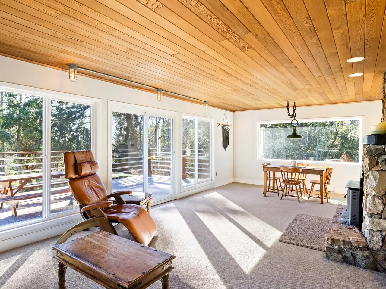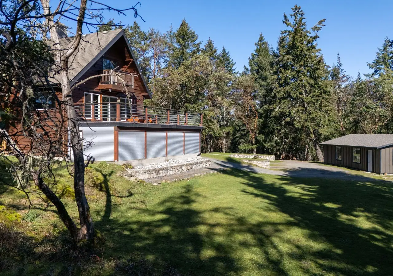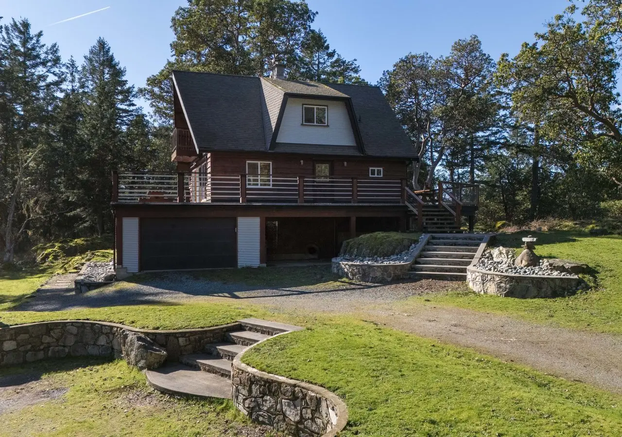 Perched high on a private 5-acre estate, this beautiful West Coast home offers unparalleled privacy, all-day sun, and breathtaking views. Surrounded by nature and ocean glimpses of the Saanich Inlet, this captivating property is a tranquil retreat just minutes from Victoria. Featuring 2,071 sq.ft of living space with a functional & open floor plan that offers two spacious bedrooms on the upper level, and a lower rec room with potential to add a third bedroom or suite. The main level features large windows that fill the space with natural light, and a gorgeous kitchen that opens to a spectacular wraparound sundeck, ideal for entertaining or enjoying stunning sunsets. Additional highlights include an oversized garage, a 1,050 sq.ft detached shop, and ample parking. This is a rare opportunity to own a sun-drenched acreage in one of Saanich’s most scenic locations, just 20 minutes from downtown Victoria.