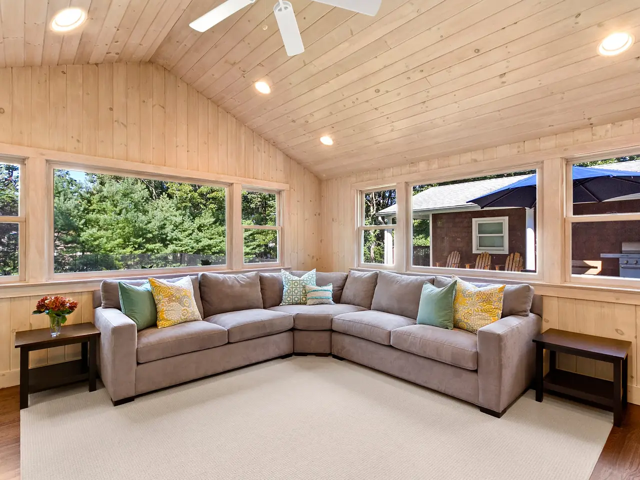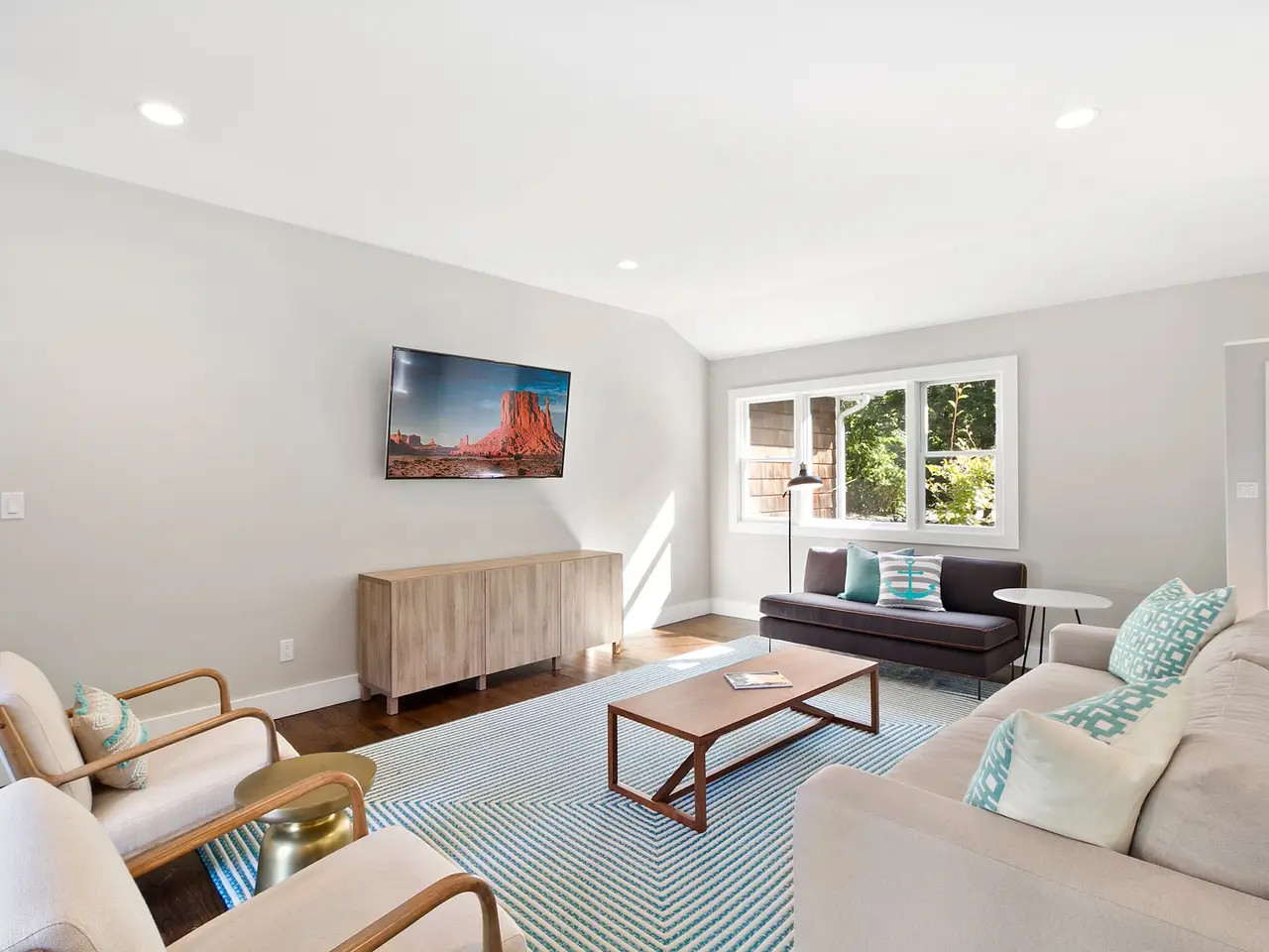 RP250516 Exp.3/21/2027 Experience the best of Sag Harbor summer living in this beautifully updated four-bedroom home just two blocks from the water. Originally renovated in 2013, the residence offers a seamless open layout with a chef's kitchen at its heart, featuring marble countertops, a spacious island with seating, and high-end stainless steel appliances. Natural light fills both the main living area and a separate sunlit gathering room, creating inviting spaces to relax or entertain. Two of the bedrooms serve as primary suites, each with marble- and tile-appointed baths. Outdoors, a wraparound deck overlooks the newly added pool and a perfectly level lawn-ideal for summer lounging and dining al fresco. Located in a desirable waterfront community, residents enjoy access for kayaking or mooring a boat nearby.