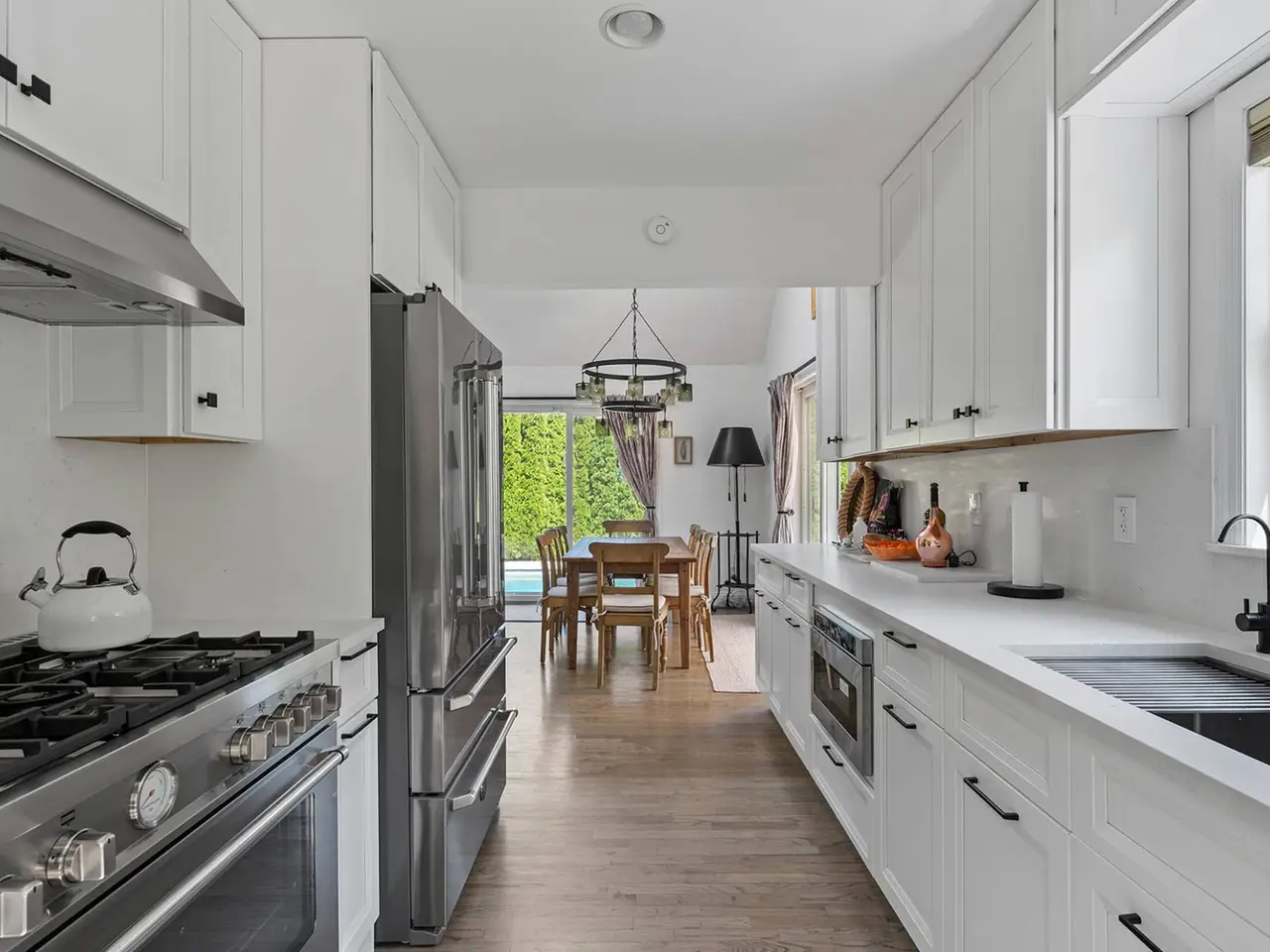 RP#: 240817: Sag Harbor Rental - Bay Point Spend your summer in style at this beautifully updated 4-bedroom, 3-bath rental in the coveted waterfront community of Bay Point, Sag Harbor. Just minutes from the village and a moments from Foster Memorial Beach, this tastefully appointed home offers a perfect blend of modern comfort and Hamptons charm. Step inside to an open-concept living area with cathedral ceilings and natural light streaming through skylights. The gourmet kitchen features top-tier stainless steel appliances-including a Bertazzoni range-white quartz countertops, a farmhouse sink, and stylish grey-beige-white interior tones throughout. The main-level primary suite offers a private entrance and barn doors for added seclusion. Upstairs, two guest bedrooms share a full bath with elegant finishes and raindrop showerheads. The lower level is ideal for entertaining, complete with a spacious media lounge, wet bar, a fourth bedroom, and an additional full bath featuring a glass walk-in shower and designer tile. Outside, enjoy a beautifully landscaped and private setting complete with a 20' x 40' heated in-ground pool, outdoor shower, and multiple seating areas for lounging or dining alfresco. Located just 1.5 miles from Sag Harbor Village and minutes from Serene Green Organic Farmstand, this home offers convenience, tranquility, and access to everything the Hamptons has to offer-including those unforgettable west-facing sunsets at the nearby beach.Listing ID 924714