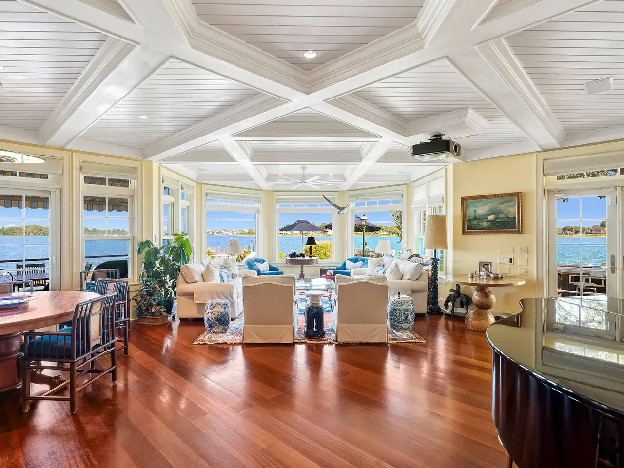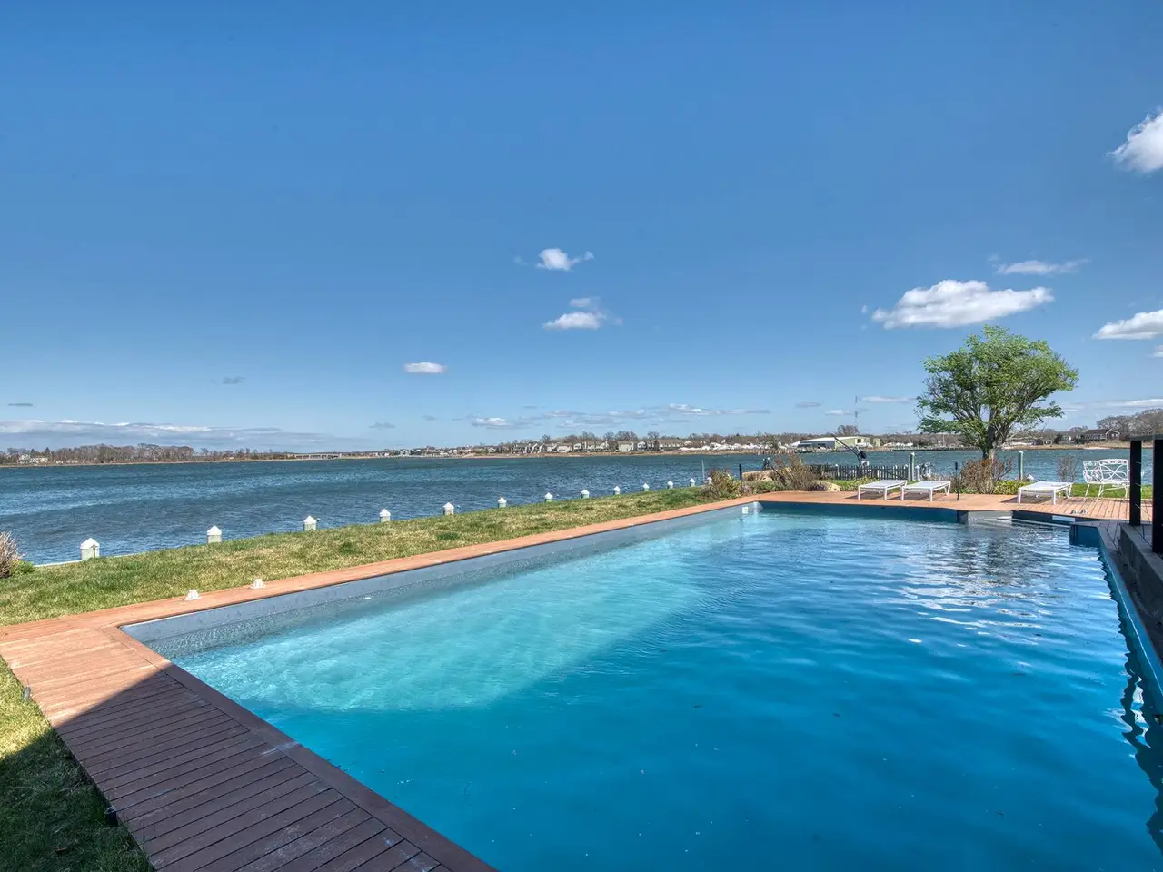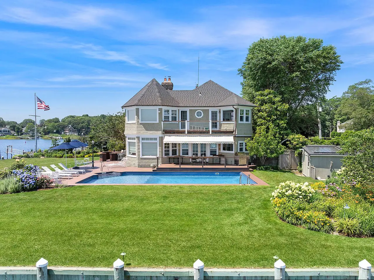 What could be more exciting than living this summer waterside and poolside looking out over the harbor to Sag Harbor Village? This stunning nauticalesque 4 bedroom 4 bath compound with waterviews from every room has an open kitchen, dining and living area and a majestic den with movie style reclining seating. The second floor has 2 light filled, spacious en-suite bedrooms with waterside balconies . The other 2 bedrooms and bath are smartly located in the separate newly renovated beach cottage off of the expansive back patio. The patio wraps around the home on 2 bulkheaded waterfronts perfectly designed for the outdoor bar pavilion, a heated gunite saltwater pool, a lush lawn and a full service deepwater dock. Across the street from Foster Memorial Long Beach and minutes to Sag Harbor Village. The privacy and calm from being on the peninsula of Bay Point is truly a one of a kind summer get-away.