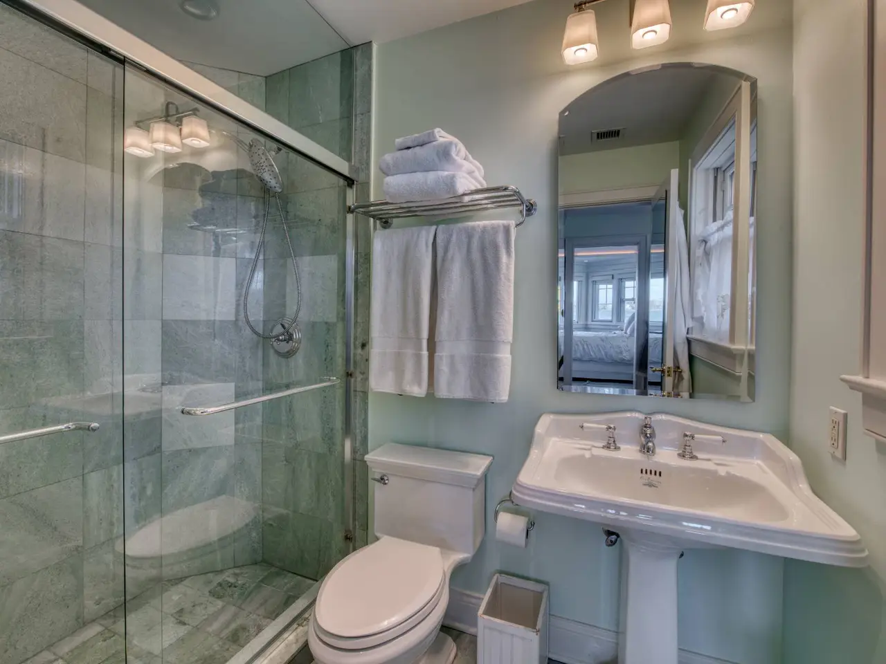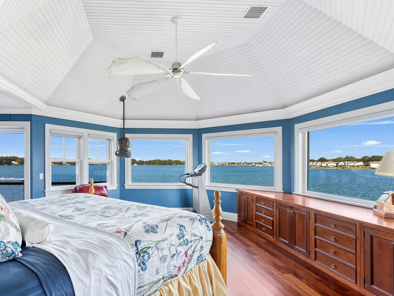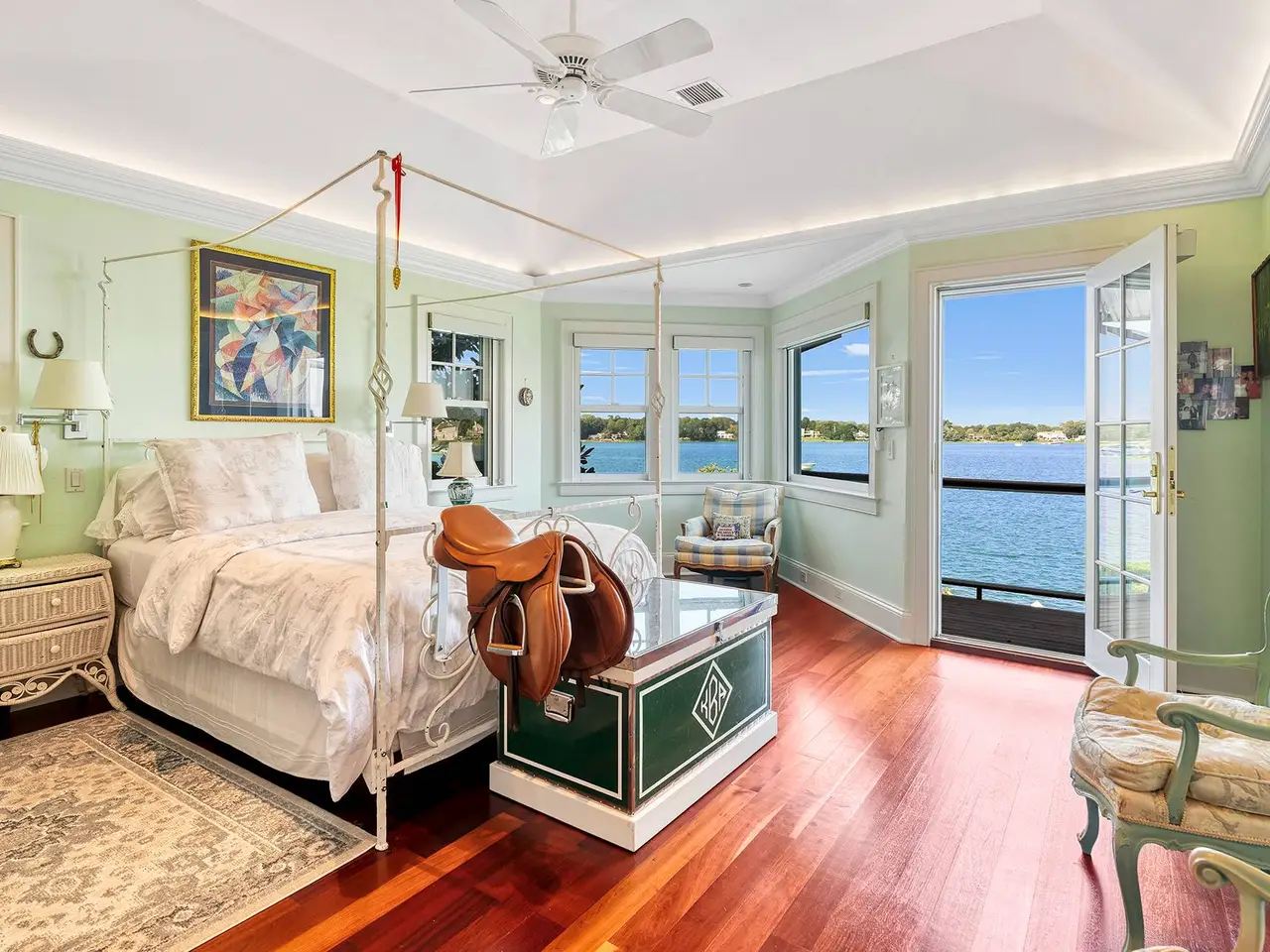 What could be more exciting than living this summer waterside and poolside looking out over the harbor to Sag Harbor Village? This stunning nauticalesque 4 bedroom 4 bath compound with waterviews from every room has an open kitchen, dining and living area and a majestic den with movie style reclining seating. The second floor has 2 light filled, spacious en-suite bedrooms with waterside balconies . The other 2 bedrooms and bath are smartly located in the separate newly renovated beach cottage off of the expansive back patio. The patio wraps around the home on 2 bulkheaded waterfronts perfectly designed for the outdoor bar pavilion, a heated gunite saltwater pool, a lush lawn and a full service deepwater dock. Across the street from Foster Memorial Long Beach and minutes to Sag Harbor Village. The privacy and calm from being on the peninsula of Bay Point is truly a one of a kind summer get-away.