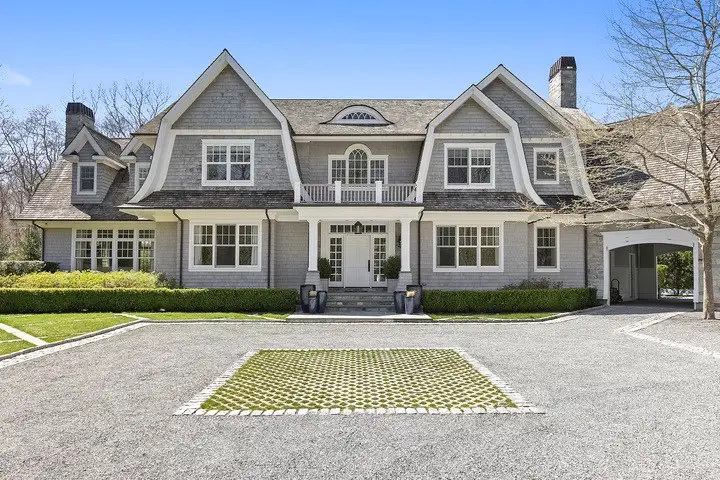 Built in the classic 'Hamptons' traditional estate style with gambrel rooflines and an eyebrow window, this cedar and stone residence sprawls across 2.15+/- acres in renowned Sagaponack. The grand entry foyer with a main staircase, coffered ceiling and chandelier welcomes to over 10,000 sf of living space featuring 8 bedrooms, 8 bathrooms, formal living room, formal dining room, and music room. With fireplaces in the formal and casual living rooms, decoration is immaculate in whitened neutrals illuminated by custom crystal, chrome, and stainless fixtures. Elegant and timeless Carrera marble contrasts brilliantly against ebonized hardwood floors throughout. An immense chef's kitchen features herringbone marble back splashes, exceptional slab white-marble counters, and oversize professional appliances which are perfectly integrated within custom white cabinetry. Baths are consistently fitted and exquisitely finished with white marble tiles, counters, porcelain fixtures and cabinetry. A lower-level features entertainment rooms and a theater. The grounds feature a front, circular motor court with separate garage space for three automobiles. Back grounds are graced with a custom heated gunite swimming pool and spa as well as a tennis court.