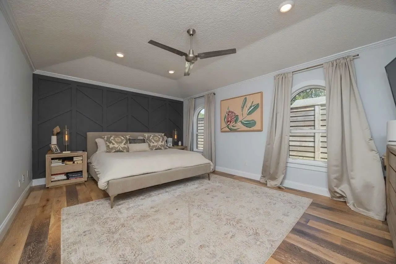 This distinctive home, nestled under the oaks bordering Anastasia State Park, has been beautifully completed with modern touches. No expense spared with designer elements such as batten walls, crown molding, artistic doors, unique light fixtures and gorgeous cedar fireplace mantle. The open floor plan offers a spot for everyone to call their own. The formal and casual living spaces, covered lanai and paver fire pit patio provides room for everyone to spread out and relax. Chefs will love creating in the kitchen complete with granite countertops/ back splash, stunning cabinetry, farm sink and stainless appliance package. The owners retreat is tucked away from the guest bedrooms offering the perfect spot to relax at the end of the day. The ensuite bath features a statement soaker tub, oversized shower, and dual vanities. Other features include: PTG hurricane windows; landscaping; cedar tongue and grove porch ceilings; contemporary bathrooms; and so much more! The 2-car garage offers plenty of storage for beach gear while the outdoor shower allows you to rinse off the salt after a day at the beach. Located on a cul de sac in the quiet neighborhood of San Jose Forest, this home is an easy walk or bike ride to the local Amphitheater to enjoy concerts/ farmers market; historic downtown St. Augustine; beaches and popular area restaurants. This unique neighborhood and surrounding streets have a private gate to access the state park beach. Not to mention, the St. Augustine Beach pier is a short bike-ride or 5-minute drive away. This incredible home and desirable location is waiting for you!