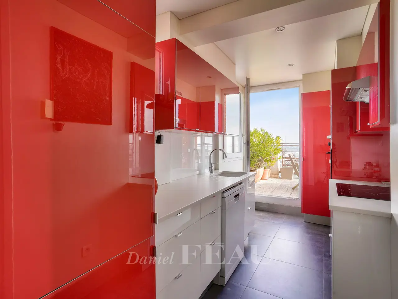 Equipped kitchen opening onto terrace
