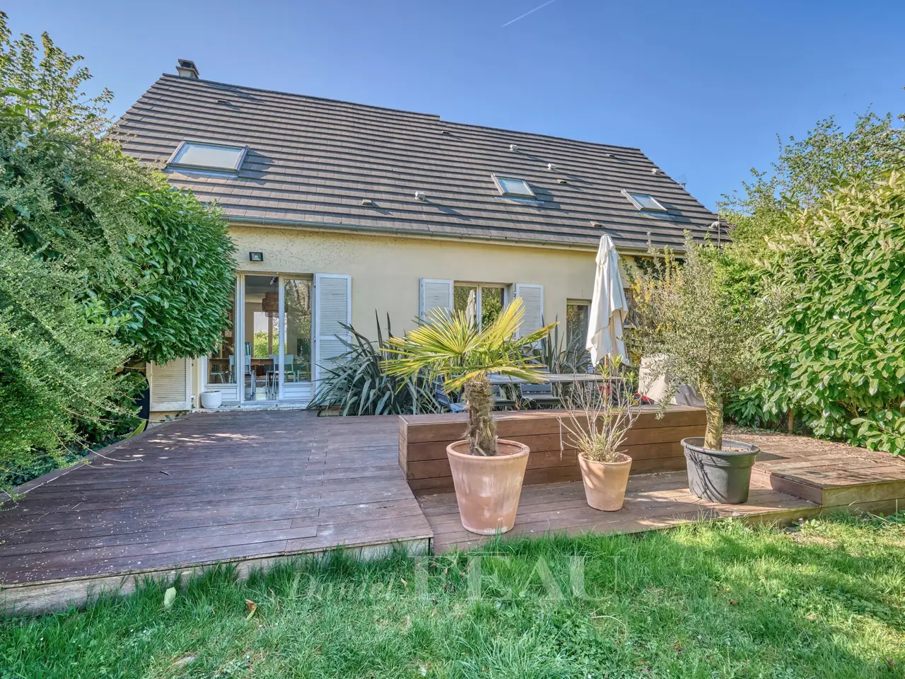 Montretout neighbourhood. This south-facing near 175 sqm property located in a peaceful neighbourhood is set in an enclosed 991 sqm plot. It includes a 50 sqm living/reception room accessing the garden, a kitchen with dining facilities, a bedroom, a bathroom and a utility room. Upstairs are four bedrooms and two bathrooms. On a basement with a garage. An ideal family home near the shops, the schools and Saint-Cloud Park.