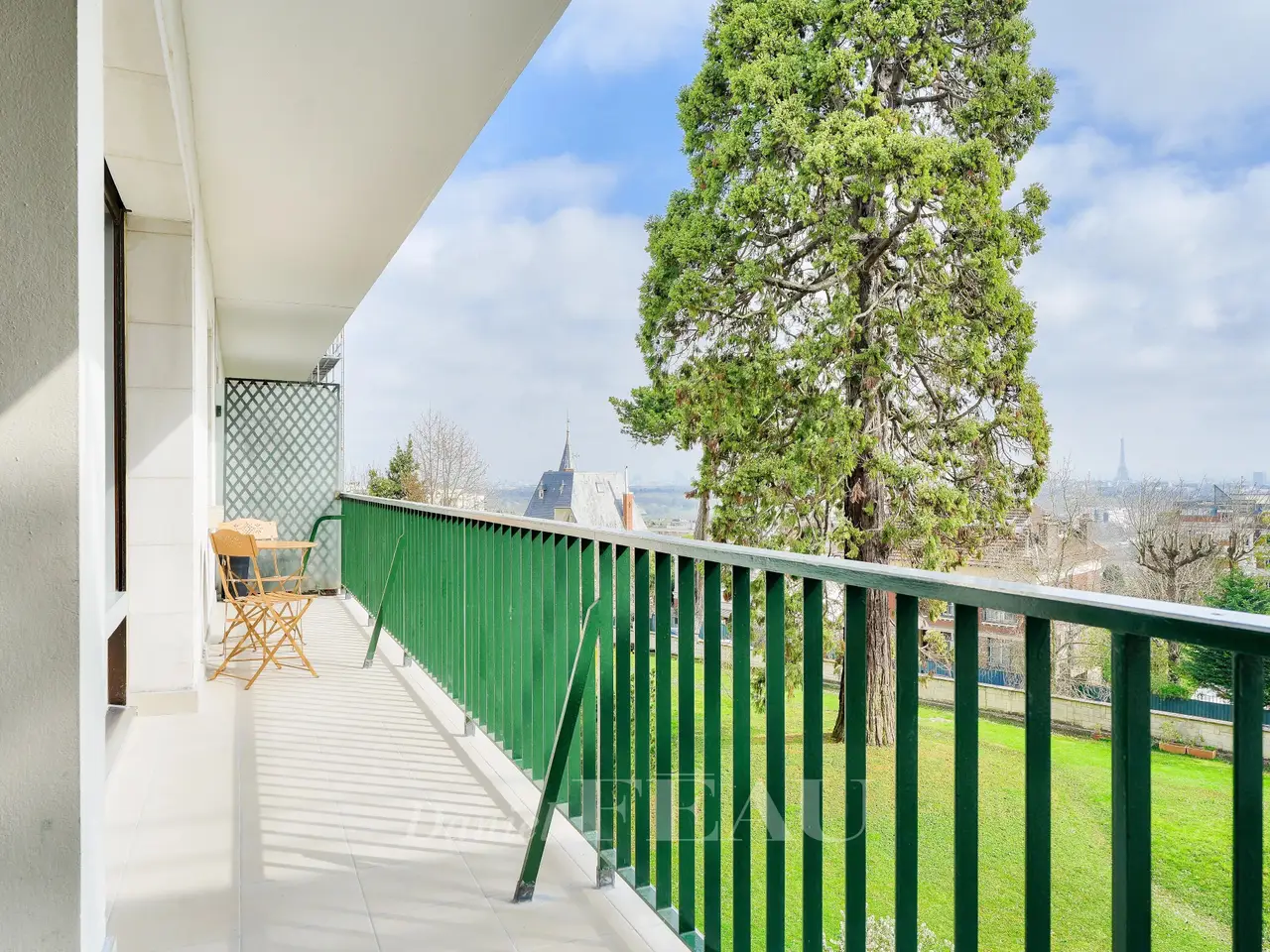 Montretout neighbourhood. This bright and peaceful near 100 sqm apartment is on the 2nd floor of a very well-maintained mid 20th century building. It includes a spacious double living/reception room opening onto a balcony commanding an open view of the capital, a kitchen, three bedrooms, a bathroom and a shower room. With a parking space and a cellar. In a convenient location near the shops, the station and the schools.