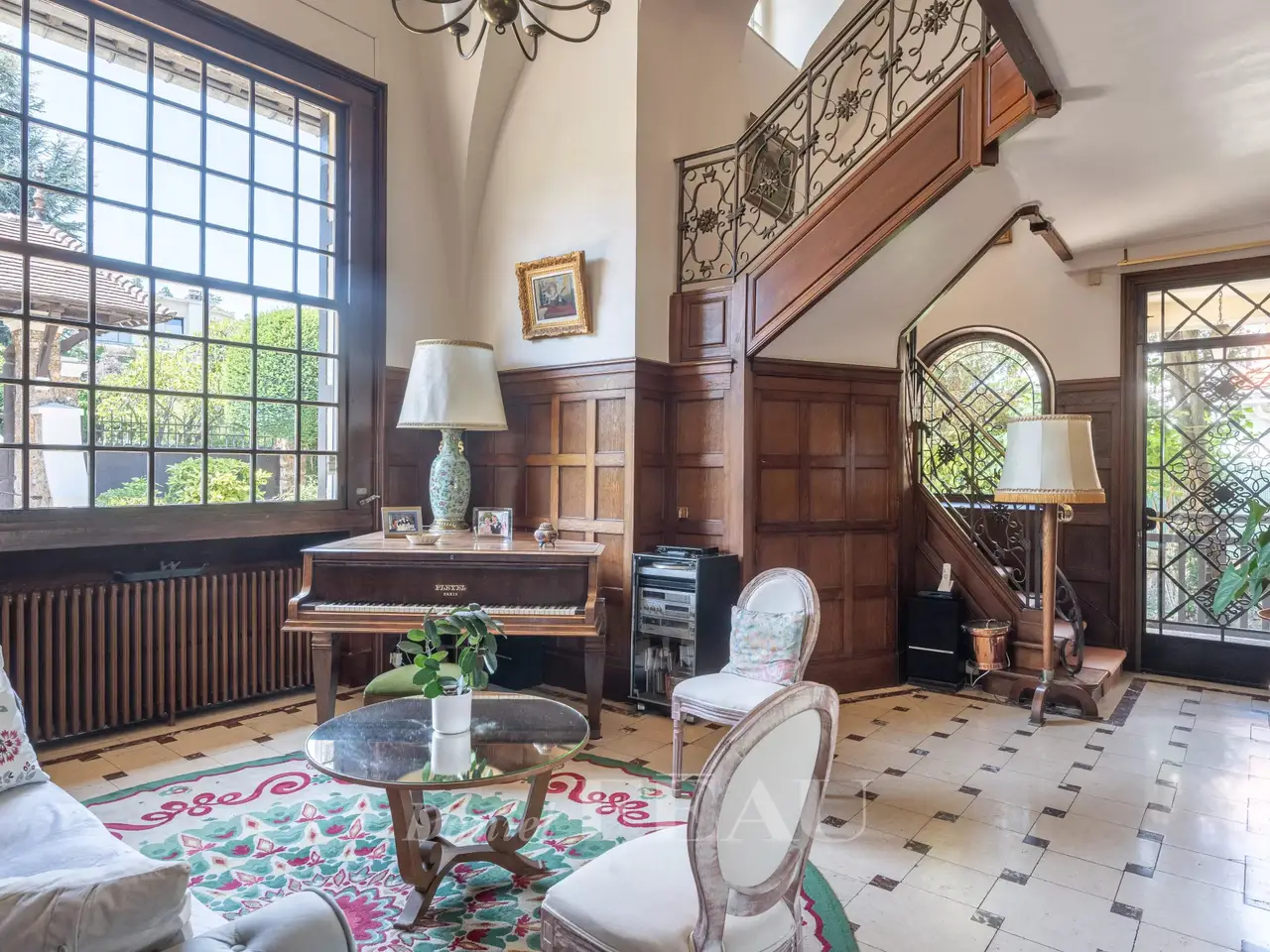 Val d’Or neighbourhood. This early 20th century Anglo-Norman style property is in one of Saint-Cloud’s most sought-after streets a stone’s throw from the station. Entirely decorated by renowned interior decorator Jules Leleu, it includes a spacious entrance hall, a triple living/reception room bathed in sunshine and overlooking the landscaped garden benefiting from an open view of the Bois de Boulogne and the Eiffel Tower, a spacious kitchen, a study, and a bedroom with a bathroom. Upstairs are three further bedrooms (two opening onto a balcony), and two bathrooms. On a basement with a self-contained 31 sqm studio apartment. With a near 100 sqm annex comprising a 3-room apartment, a 35 sqm recreation room and a double garage.