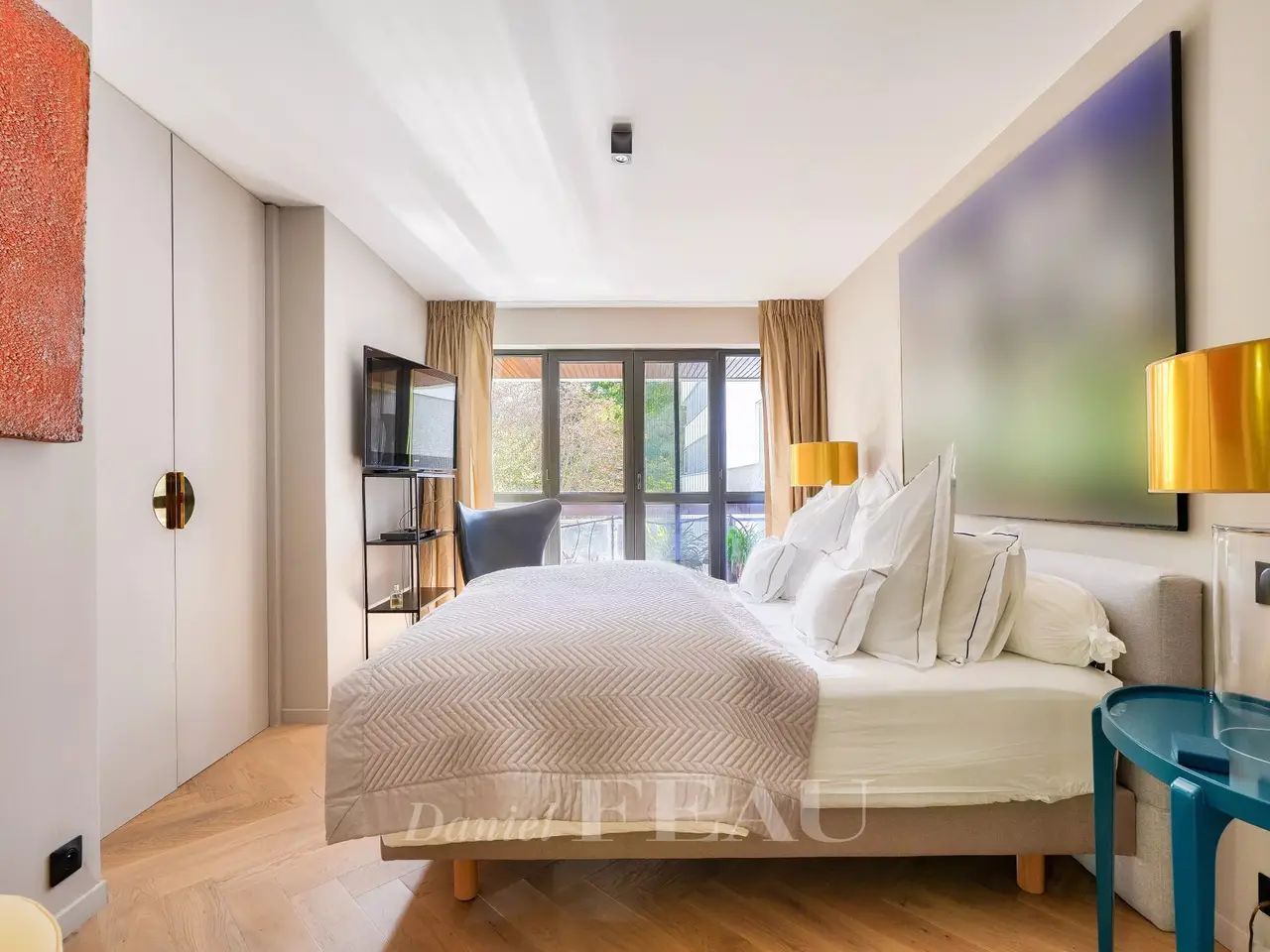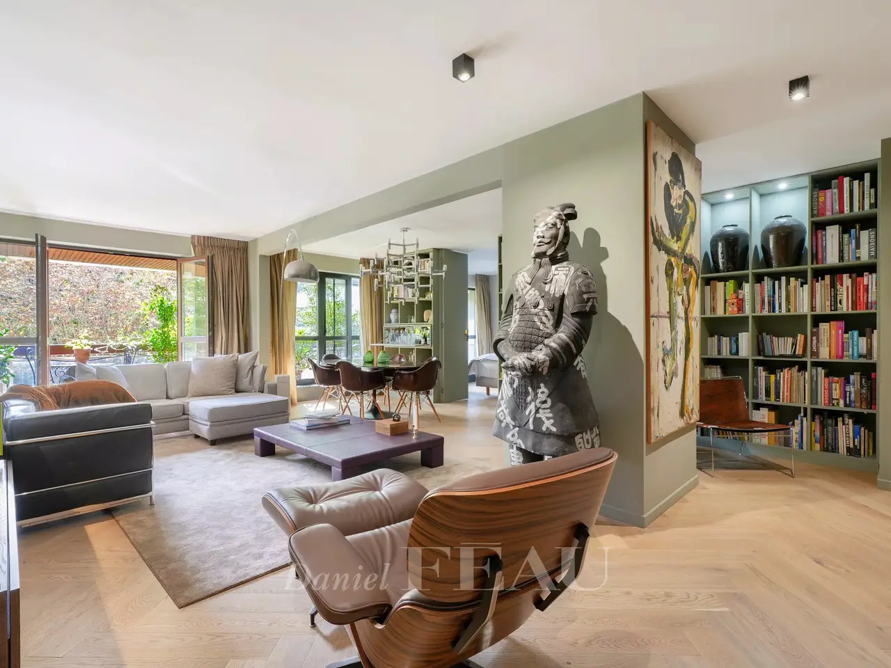 This elegant 101 sqm south-facing apartment is on the 4th floor of a peaceful and perfectly maintained mid 20th century residence with a lift. Renovated throughout and beautifully appointed, it includes a 60 sqm living/reception room with a fully equipped open-plan kitchen opening onto a continuous balcony enjoying an open view over leafy greenery, a master suite with a shower room, a second bedroom opening onto a balcony, and a shower room. A 3rd bedroom would be possible. With a double lock-up garage and a large cellar. In a convenient location near the transport networks a short distance west of the capital.