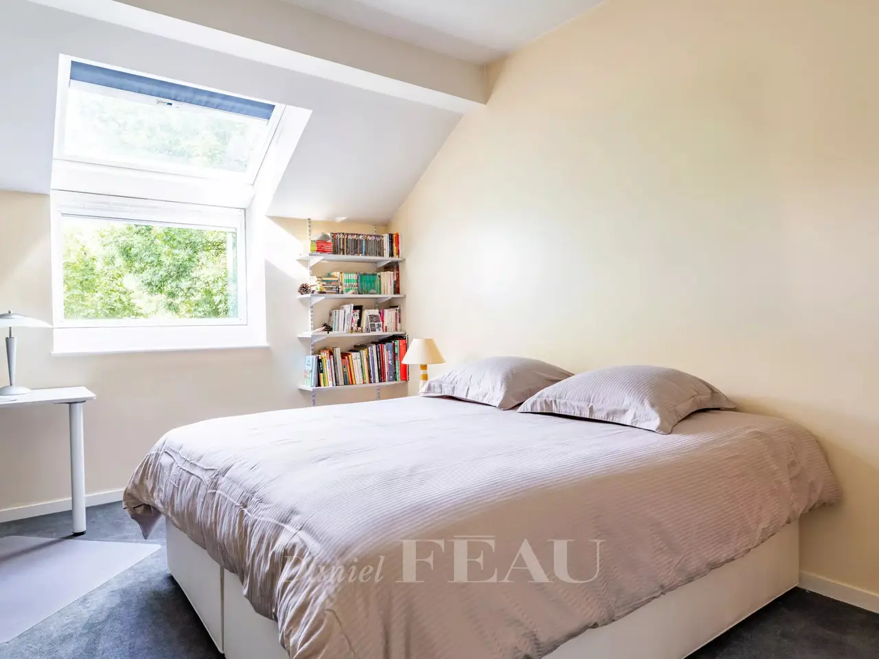 This superb contemporary property hidden from view in a leafy 1100 sqm garden on the edge of the forest offers 306 sqm of floor space and 285 sqm of living space. Set around a glazed central patio, it includes an entry with a cloakroom, a spacious living/reception room opening onto a terrace and the garden, an elegant kitchen with dining facilities, a dining room, and a utility room. It would be possible to create a ground floor bedroom if required. Upstairs a bright landing leads to a master suite with a bathroom and a dressing room, and three further bedrooms with a shower room. The fitted attic could create a spacious bedroom, a study or a recreation room. With a near 26 sqm annex comprising a garage, cycle storage premises and a self-contained apartment. The landscaped garden benefits from terraces and a paved carport. The property is beautifully appointed, benefiting from floor heating, double glazing, solid oak parquet flooring, motorized shutters and an alarm. The roofing has recently been renovated.