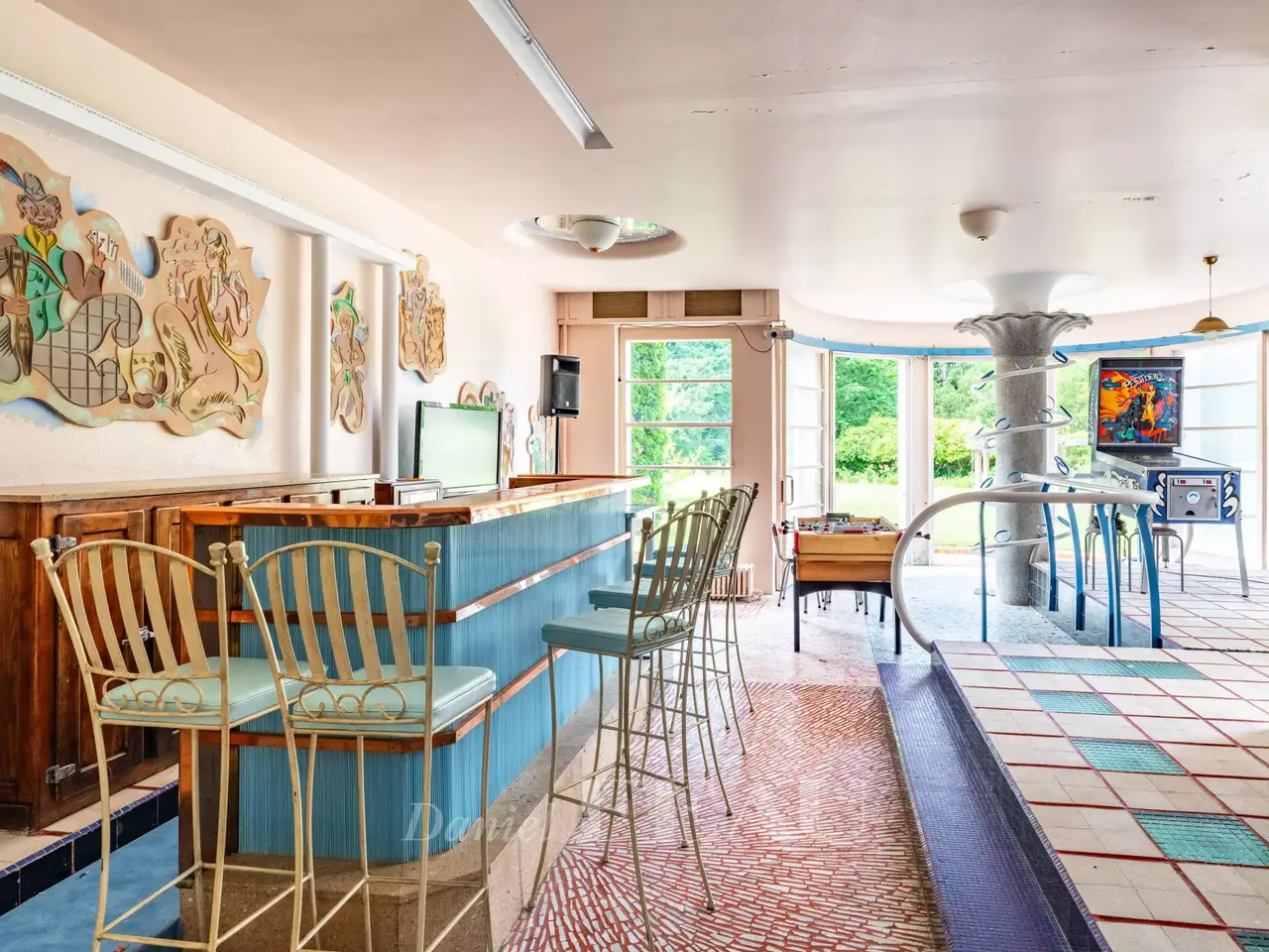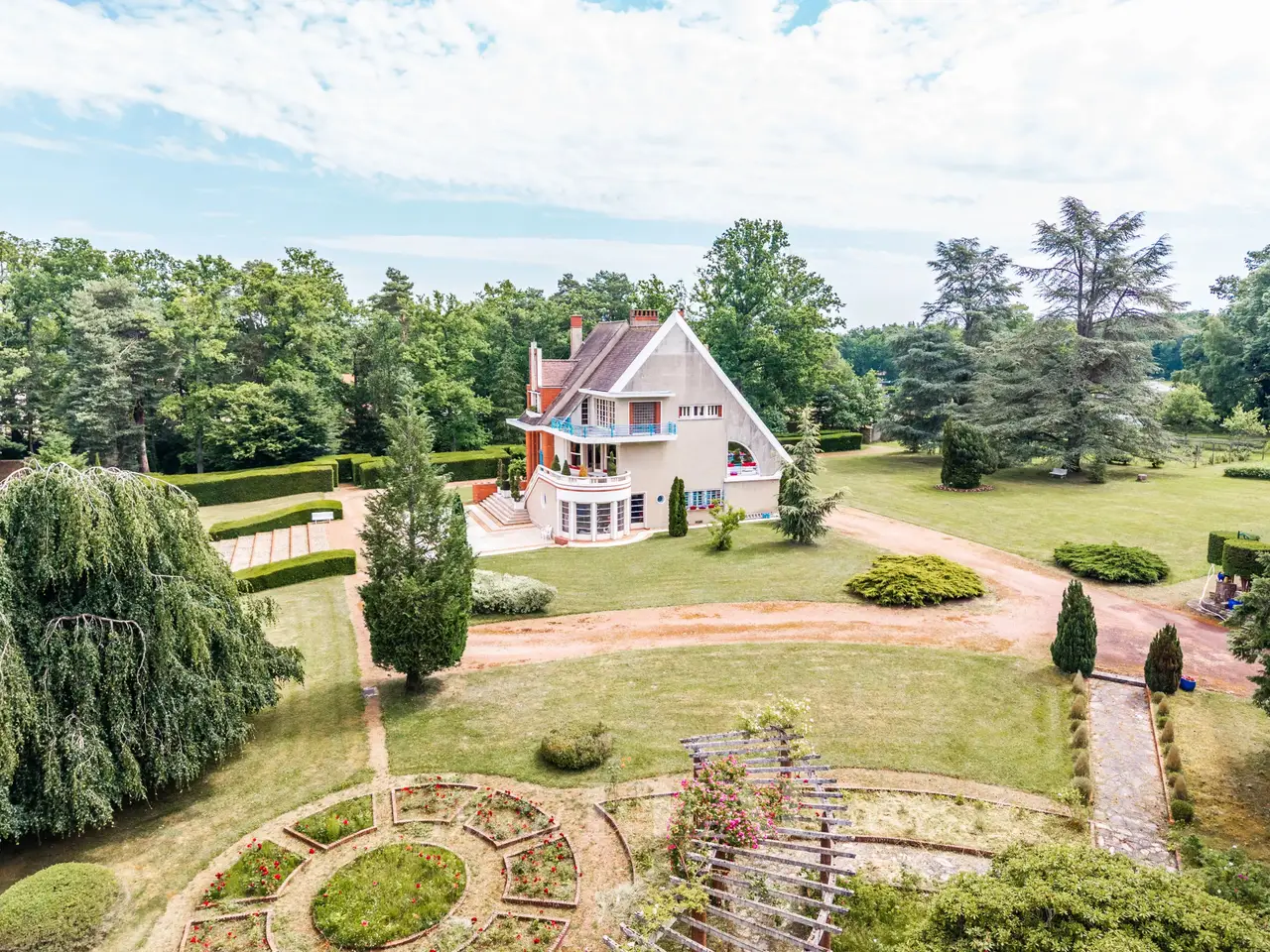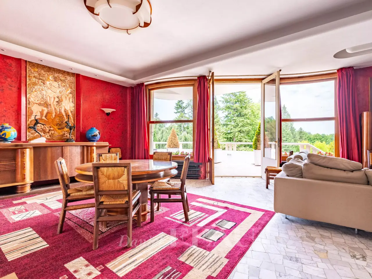 This exceptional Art Deco-style property was once home to architect Pierre Petit who exposed at the 1937 International Exposition of Art and Technology in Modern Life. Set in 3 hectares of grounds with a tennis court, a rose garden, a vegetable plot, a water feature and garages, it has benefited in the past from contributions from sculptors Jean René Debarre and Georges Guyot, wrought-iron artist Raymond Subes, andmaster glassworker Joseph Jean Kef Ray, and features lighting signed Perzel. A grandiose entrance hall boasting polished stucco leads to a reception room with a bar, as well as former staff rooms. Upstairs are a kitchen, a dining room in its original state, and a double living/reception room opening onto a wide terrace commanding a panoramic view over the grounds. The top floors comprise six bedrooms, three bathrooms and a billiard room. Among the property’s most remarkable period features are the mosaic floor tiles. A must for lovers of Art Deco.