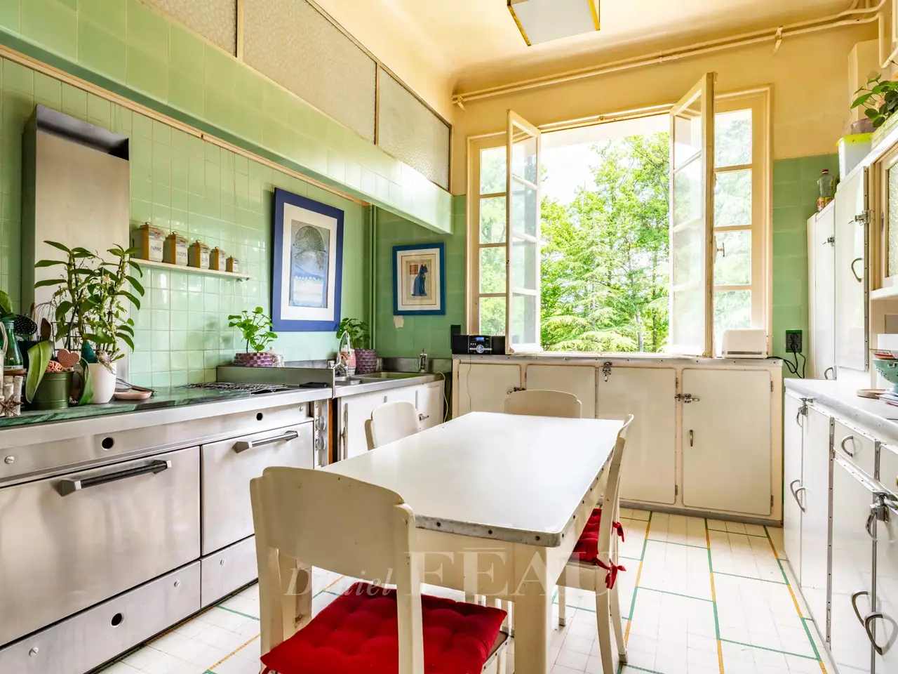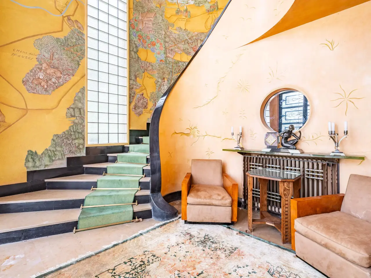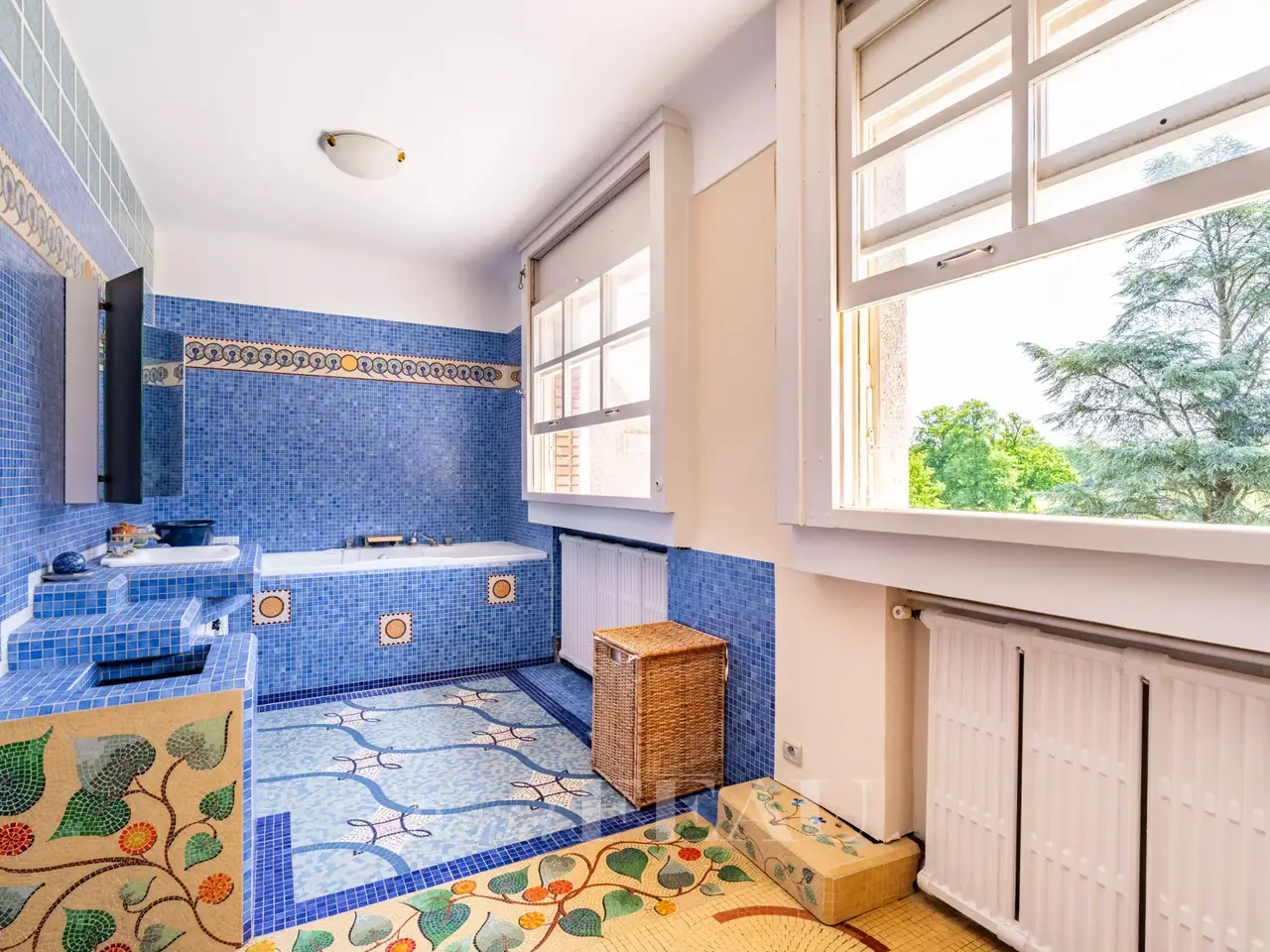 This exceptional Art Deco-style property was once home to architect Pierre Petit who exposed at the 1937 International Exposition of Art and Technology in Modern Life. Set in 3 hectares of grounds with a tennis court, a rose garden, a vegetable plot, a water feature and garages, it has benefited in the past from contributions from sculptors Jean René Debarre and Georges Guyot, wrought-iron artist Raymond Subes, andmaster glassworker Joseph Jean Kef Ray, and features lighting signed Perzel. A grandiose entrance hall boasting polished stucco leads to a reception room with a bar, as well as former staff rooms. Upstairs are a kitchen, a dining room in its original state, and a double living/reception room opening onto a wide terrace commanding a panoramic view over the grounds. The top floors comprise six bedrooms, three bathrooms and a billiard room. Among the property’s most remarkable period features are the mosaic floor tiles. A must for lovers of Art Deco.