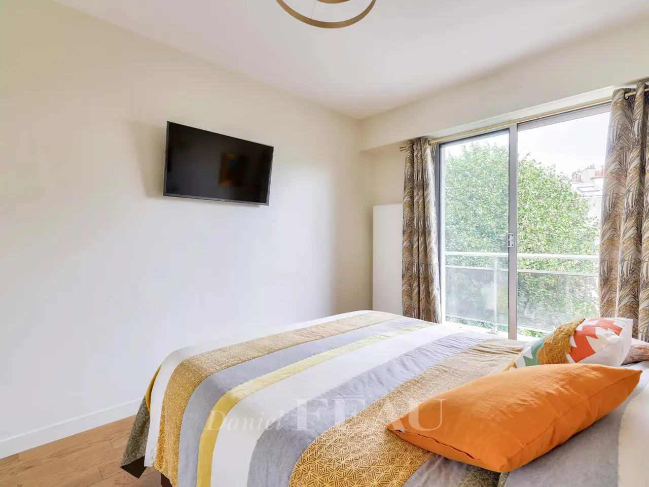 Daumesnil neighbourhood, on the edge of the Bois de Vincennes. This 77 sqm dual-aspect apartment on the 2nd floor of a luxurious relatively recent building with a lift is in perfect condition. Benefiting from a compact floor plan with no wasted space and opening onto wide balconies enjoying open views, it includes a bright south-facing living/reception room with an open-plan kitchen, two bedrooms, a shower room/wc and a guest wc. With a parking space and a cellar.
