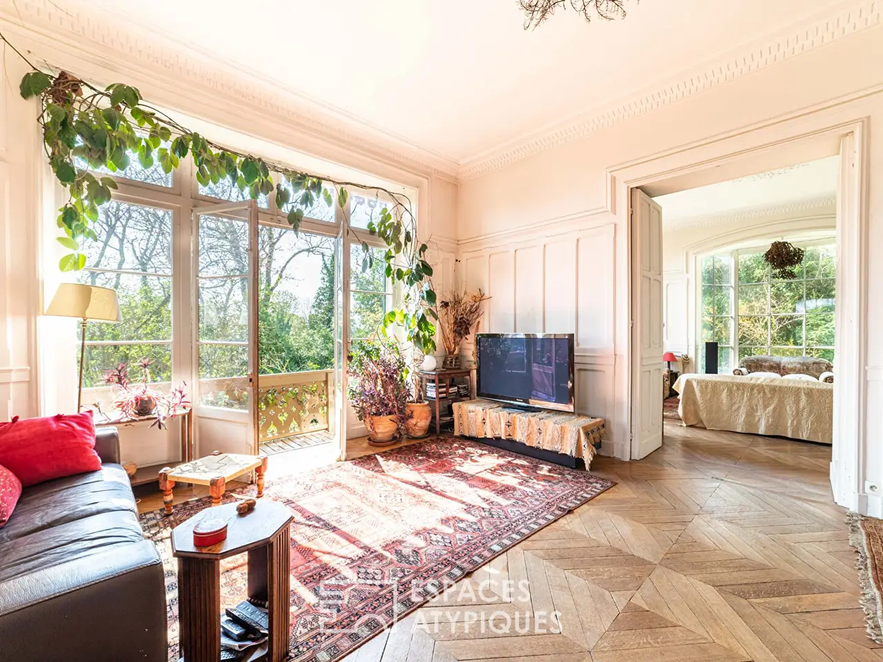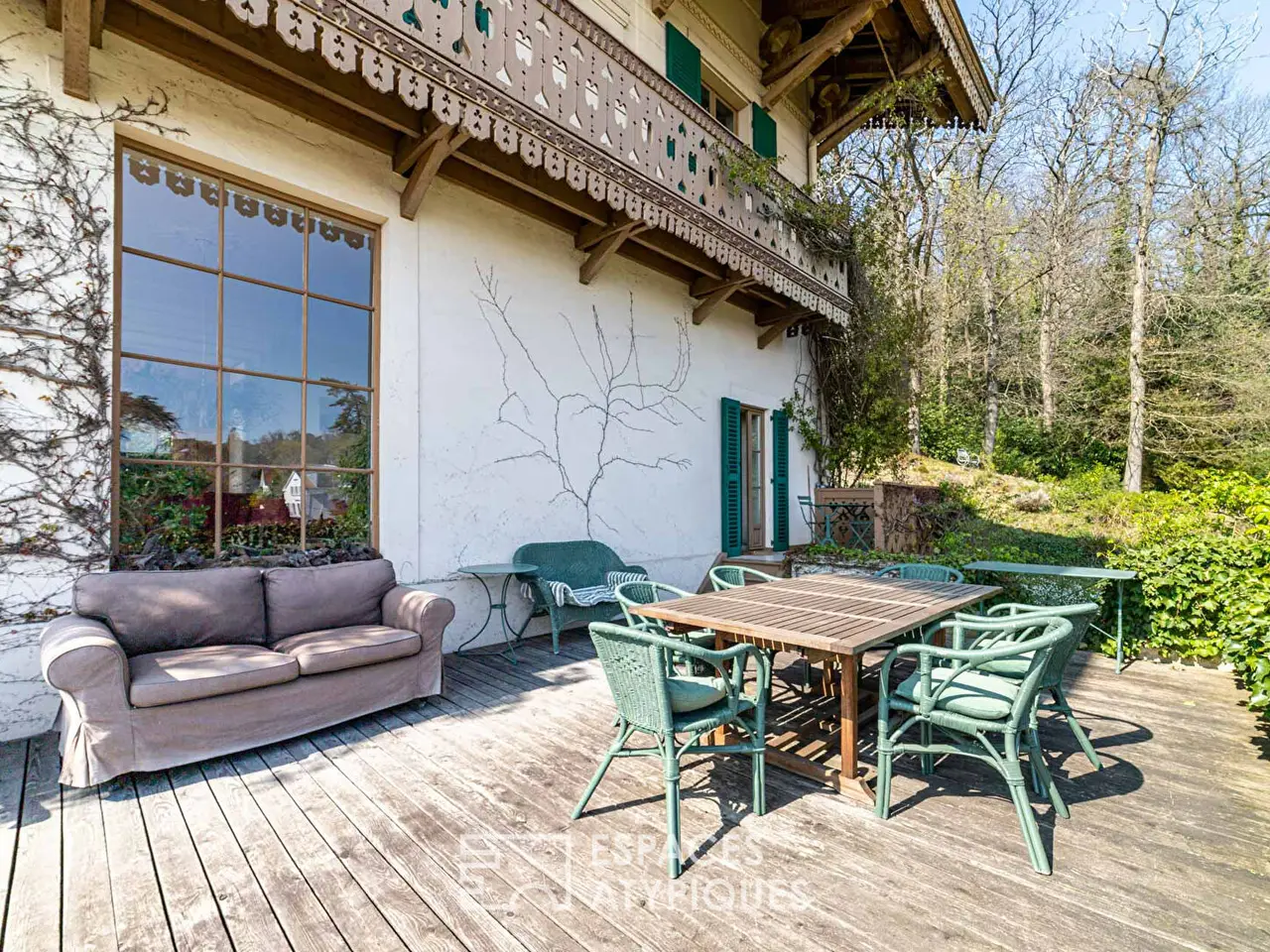 Nestled on the heights of Saint Prix, this exceptional chalet dating from 1850 offers a breathtaking panoramic view of Paris. Located in the heart of the picturesque village of old Saint Prix, it extends over a vast plot of 2500 sqm, bordered by the national forest, thus creating a true natural setting. As soon as you enter, you will be charmed by a majestic hall decorated with a staircase with a unique character, which leads you to nearly 400 m2 of charming living spaces.The triple living room, bathed in light thanks to its numerous glass openings, is distinguished by its bow window offering a view of the surrounding greenery. This vast living room, decorated with solid parquet floors, is surrounded by French windows giving access to a balcony, while allowing you to admire the panorama of the capital. The kitchen, just as bright, opens onto a 45 sqm south-facing terrace, guaranteeing privacy and tranquility, while offering breathtaking views. An office, which can be converted into a bedroom according to your wishes, as well as a toilet with washbasin, complete this level.The owners have preserved the original 19th century features: marble fireplaces, refined moldings and impressive ceiling heights. A bohemian decoration enhances the whole, reinforcing the undeniable charm of this residence. On the first floor, four spacious bedrooms, all bathed in light, have balconies with views and dressing rooms. A bathroom and a landing with balcony complete this space. On the top floor, two bedrooms and three attics adjoin each other, also benefiting from exceptional views.The garden level offers nearly 100 m2 of outbuildings with remarkable ceiling heights and vaults full of character, as well as a linen room and several storerooms. A garage and large parking spaces complete this ensemble. This atypical architecture, combined with its green environment and its breathtaking views of Paris, makes this unique property a real favorite.Transport: Gros Noyer St Prix train station (line H) Airport: Roissy 25 minutes by car Schools: 5 minutes on footENERGY CLASS: C / CLIMATE CLASS: D Amount of annual energy expenditure for standard use, established from energy prices for the year 2015: 4330 euros. We remind you that following article I.561-5 of the Monetary and Financial Code, a copy of the identity document of all visitors will be requested before the visit.REF. 621Additional information* 10 rooms* 7 bedrooms* 1 bathroom* 3 floors in the building* Outdoor space : 2500 SQM* Property tax : 4 855 €Energy Performance CertificatePrimary energy consumptionf : 396 kWh/m2.yearHigh performance housing*A*B*C*D*E*396kWh/m2.year11*kg CO2/m2.yearF*GExtremely poor housing performance* Of which greenhouse gas emissionsc : 11 kg CO2/m2.yearLow CO2 emissions*A*B*11kg CO2/m2.yearC*D*E*F*GVery high CO2 emissionsAgency feesThe fees include VAT and are payable by the vendorMediatorMediation Franchise-Consommateurswww.mediation-franchise.com29 Boulevard de Courcelles 75008 ParisInformation on the risks to which this property is exposed is available on the Geohazards website : www.georisques.gouv.fr