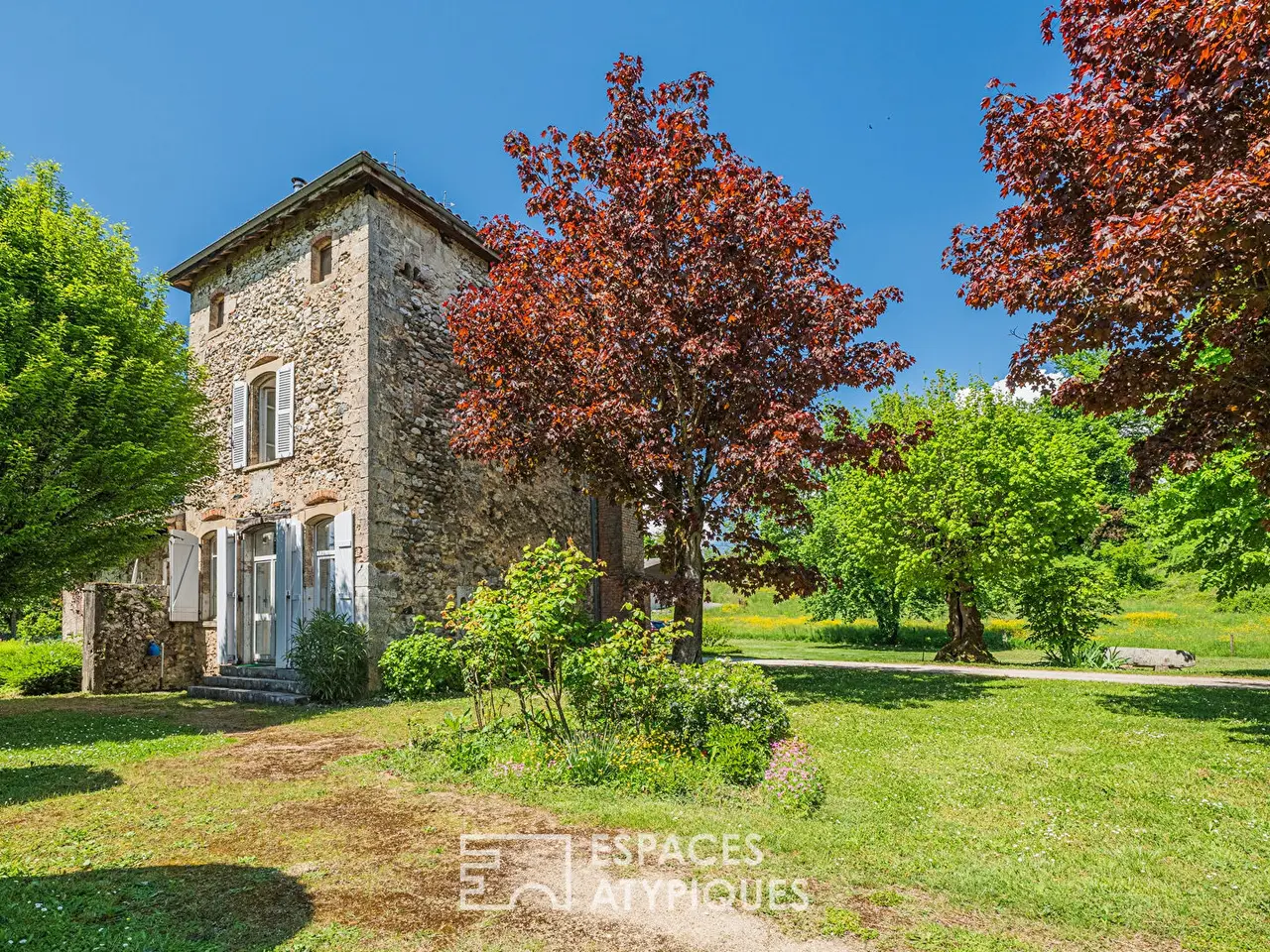 With the foothills of the Vercors as its horizon, enveloped in its intimate park of 7,800 sqm, this property steeped in history is a romantic and unique place. Located in the plain of Saint-Marcellin, a 12th century fortified house, passed down and modified over the years, converted in the 19th century into a silkworm nursery with its now-disappeared spinning workshop, it is today a place of life, reception and transmission forming a remarkable estate with incredible potential. Developing over several buildings a surface area of nearly 650 m2, accompanied by equally exceptional exteriors, it exudes calm, serenity and authenticity. This remarkable complex, having undergone a major and careful restoration in the 90s, is divided into three significant placesThe fortified house, on three levels, includes accommodation, common rooms, cellars and attic. Punctuated by its woodwork, solid parquet floors, French ceilings, and imposing fireplace, it is the living space itself.Continuing from the building, an 18th-century extension and recently remodeled, is the reception area, which combines activity areas and lodgings. With its 90 sqm room, kitchen, storeroom, workshop, large tuff-vaulted cellar, and 11 beds upstairs, it is a place for initiation, training, and sharing. Double-height, with an impressive roof structure, a second 90 sqm room remains to be invented.At the entrance to the estate, the stone-clad caretaker's house offers an independent 63 sqm living space, complemented by its garden and adjoining outbuilding. Comprising an entrance hall, a living room, a bathroom and a toilet on the ground floor as well as 2 bedrooms upstairs, it is with its more contemporary layout, an attractive, simple and bright living space.Majestically accompanied by its wooded park, decorated with its remarkable walnut dryer, its sheds with a barbecue area, its pond, its terraces and its spring, this estate offers multiple spaces conducive to reception, conviviality and relaxation. At the entrance, once past the large gate, a vast grassy area also allows the parking necessary for any reception project.The privileged location near Saint-Marcellin and the main roads, the charm and tranquility of this green environment, the history, the character and the potential of the residence, make this property a place of all possibilities.Remodeled many times in the past, this property will dare, once again, to transform itself to accommodate a bold project combining housing, creation, events or any other concept requiring large spaces and an enchanting setting. All that remains is to discover this property, and to transpose your ambitions into this unique place.Information on the risks to which this property is exposed is available on the Georisques website: www.georisques.gouv.frREF. 1030EAGAdditional information* 20 rooms* 8 bedrooms* 2 bathrooms* 4 shower rooms* 3 floors in the building* Outdoor space : 7876 SQM* Parking : 6 parking spaces* Property tax : 1 813 €Energy Performance CertificatePrimary energy consumptiond : 189 kWh/m2.yearHigh performance housing*A*B*C*189kWh/m2.year18*kg CO2/m2.yearD*E*F*GExtremely poor housing performance* Of which greenhouse gas emissionsc : 18 kg CO2/m2.yearLow CO2 emissions*A*B*18kg CO2/m2.yearC*D*E*F*GVery high CO2 emissionsEstimated average amount of annual energy expenditure for standard use, established from energy prices for the year 2021 : between 4140 € and 5670 €Agency feesThe fees include VAT and are pa