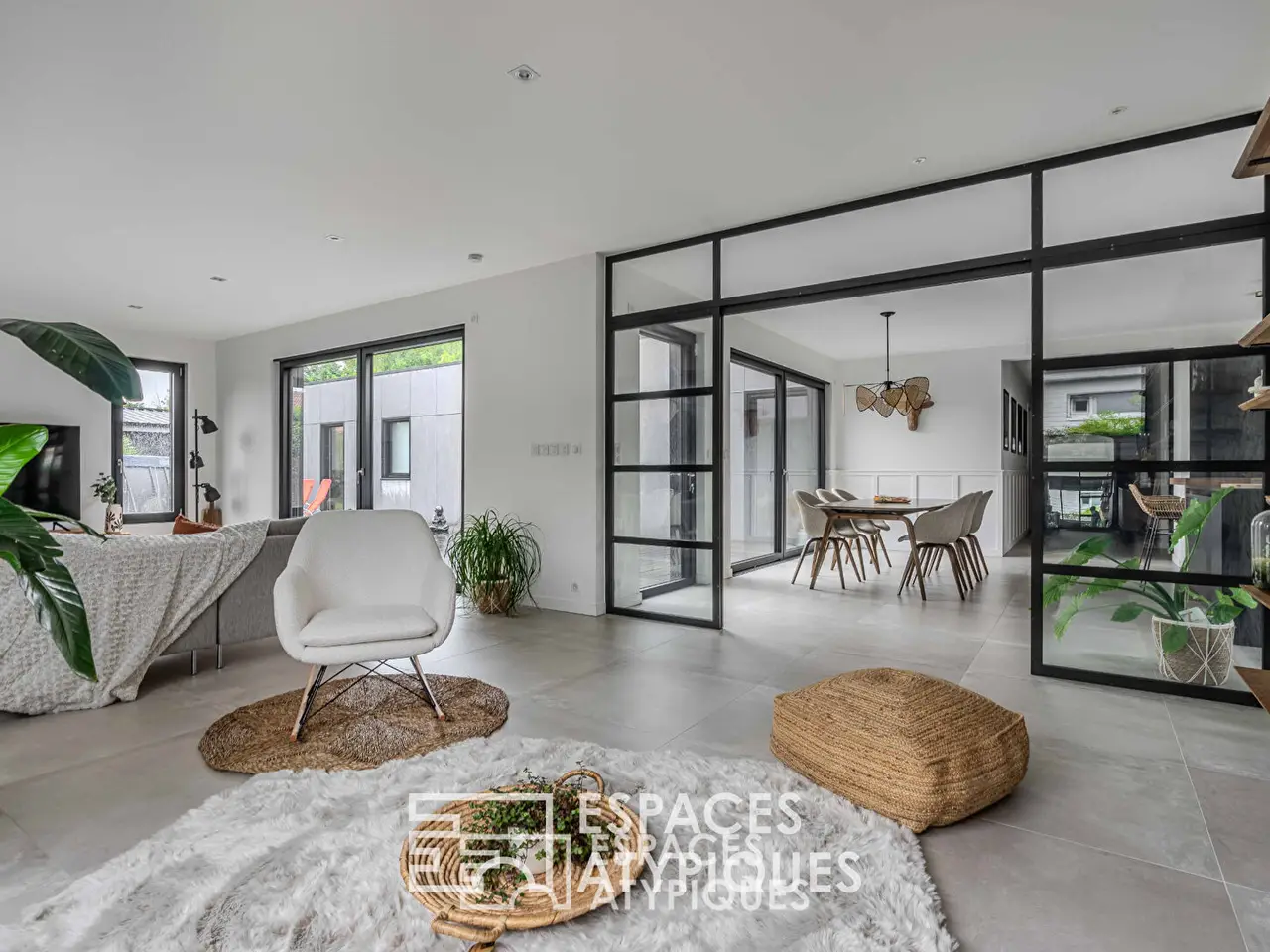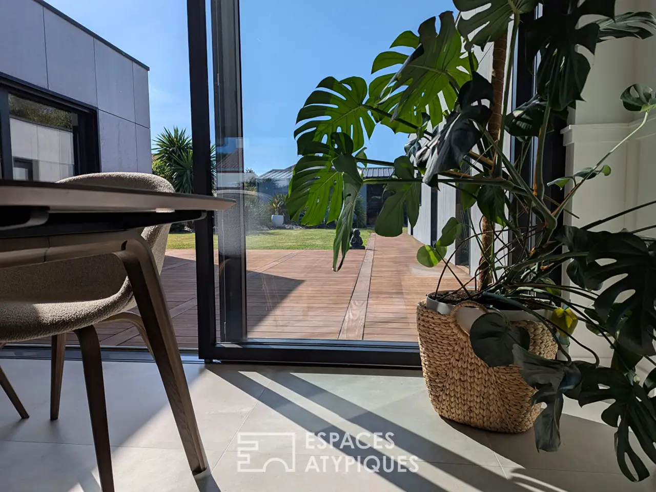 What if it was yours? How about acquiring a house designed by an architect. This architectural signature made of wood, with contemporary and prominent lines, will not leave you indifferent. This 216 sqm house, nestled in its cul-de-sac, promises tranquility and privacy. Upon arrival, we can admire the quality of construction. The play of colors on the cladding gives it a very chic look. The finishes are impeccable, the exteriors are accomplished, are composed of automatic and programmable lighting, beautiful terraces in exotic Ipe wood of 100 sqm in total blend perfectly with the house. The back of the house, facing south, is ideal for sunny days and extended evenings. This house offers a whole life on one level. The spaces are thought out and perfectly arranged. On one side, the night area offers five bedrooms of beautiful dimensions, with access for each to the terrace, and two modern Porcelanosa bathrooms. A large corridor has been entirely fitted out with Kazed dressing rooms. The living space is bathed in natural light. It offers a custom-made kitchen with high-end equipment. A dining area, adjoining the terrace, and a library area and TV lounge just closed thanks to a sliding glass roof made by a Nantes craftsman. The floors come from Porcelanosa, the exterior joinery is made of aluminum, heated floor, home automation on the shutters and the entrance gate. This property also offers a 120 sqm annex, which can be used as a garage, workshop, gym, or to make a habitable place according to your wishes. The land is suitable for a swimming pool. A very rare property and environment just ten minutes from Nantes. I am at your disposal to answer your requests, visit by appointment after telephone conversation. To find out more about this new product, contact me: Thomas Boulissiere EI, Commercial Agent RSAC 2020AC00422 0661985638 thomas.boulissiere@espaces-atypiques.com Information on the risks to which this property is exposed is available on the Georisques website: www.georisques.gouv.frREF. 2152-4Additional information* 7 rooms* 5 bedrooms* 1 bathroom* 1 bathroom* Outdoor space : 1123 SQM* Property tax : 2 000 €Energy Performance CertificatePrimary energy consumptiona : 51 kWh/m2.yearHigh performance housing*51kWh/m2.year1*kg CO2/m2.yearA*B*C*D*E*F*GExtremely poor housing performance* Of which greenhouse gas emissionsa : 1 kg CO2/m2.yearLow CO2 emissions*1kg CO2/m2.yearA*B*C*D*E*F*GVery high CO2 emissionsEstimated average annual energy costs for standard use, indexed to specific years 2021, 2022, 2023 : between 710 € and 1010 € Subscription IncludedAgency feesThe fees include VAT and are payable by the vendorMediatorMediation Franchise-Consommateurswww.mediation-franchise.com29 Boulevard de Courcelles 75008 ParisInformation on the risks to which this property is exposed is available on the Geohazards website : www.georisques.gouv.fr