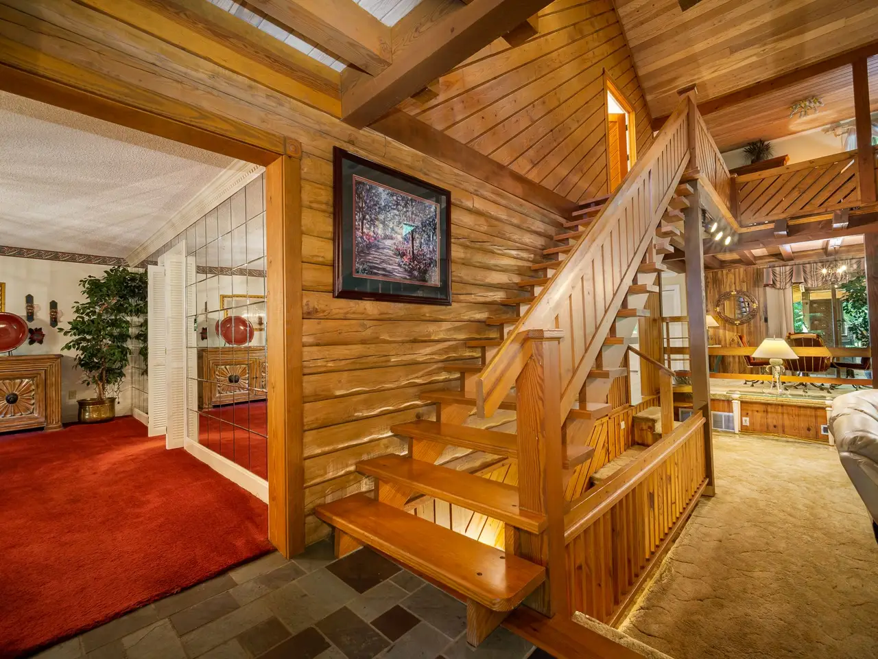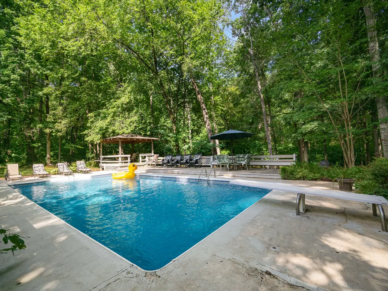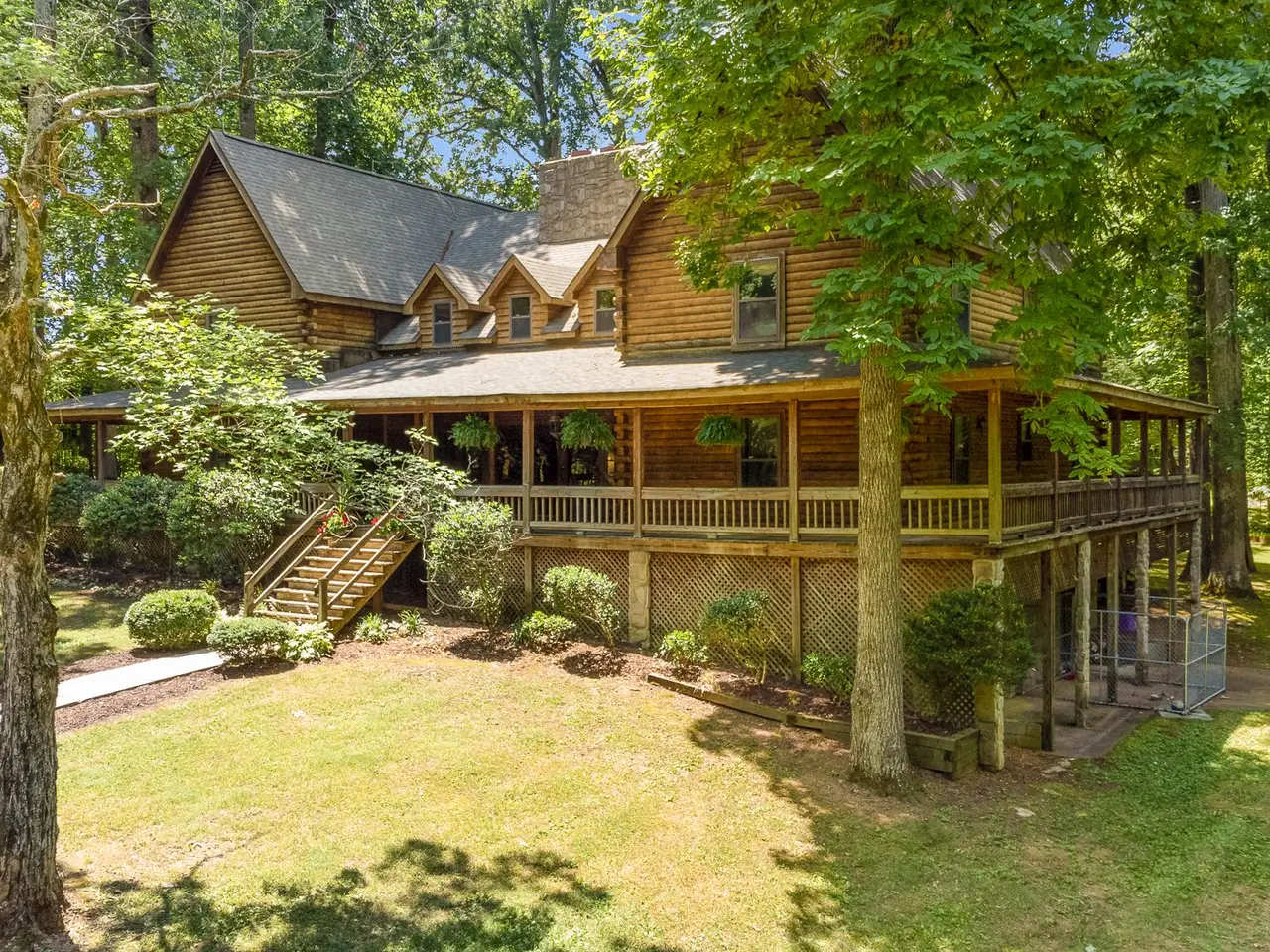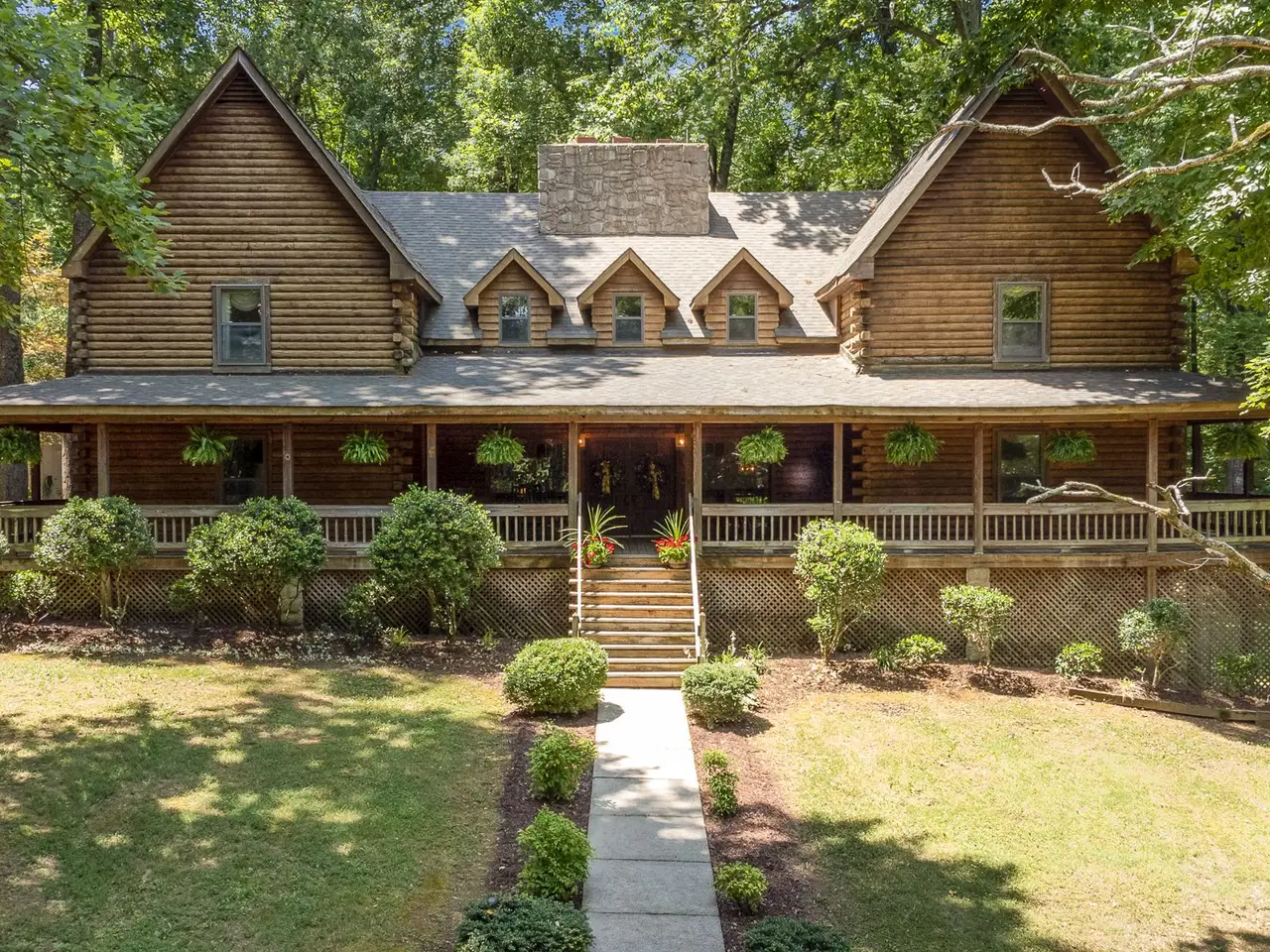 Welcome to Meadow Lane, a breathtaking custom built log home with picturesque views nestled on over 5 acres with custom features throughout the home, where luxury awaits you. From rocking on the oversized front porch, to lounging by the pool, this property provides beautiful woodwork with specialty details throughout. The enormous wrap-around porch and extended back porch area exceeds over 2,500 square feet surrounded by nature views. The fieldstone rock wood-burning fireplace is the centerpiece of the home. The primary bedroom, complete with sitting area, dressing area, double walk-in closets, leading to the ensuite bath provides a quiet oasis. The gourmet kitchen includes a kitchen island, eat at bar, and stainless steel appliances. The home includes multiple spaces that can serve as work space, entertaining or workout spaces. The garage has a wired workshop and bays for parking. Less than 5 minutes from I-85, this retreat is a must see! Previous inspection available for pre-approved buyers.