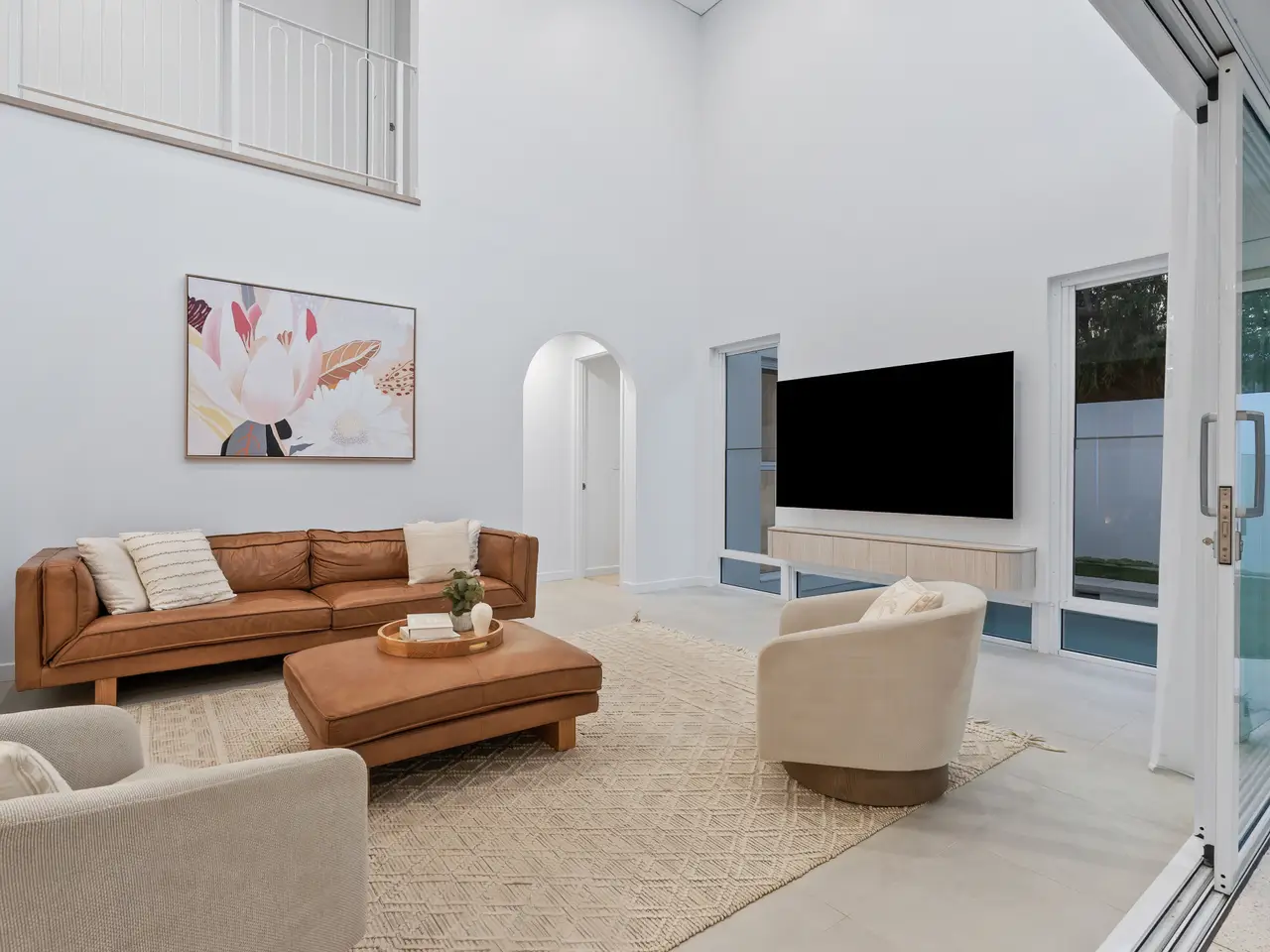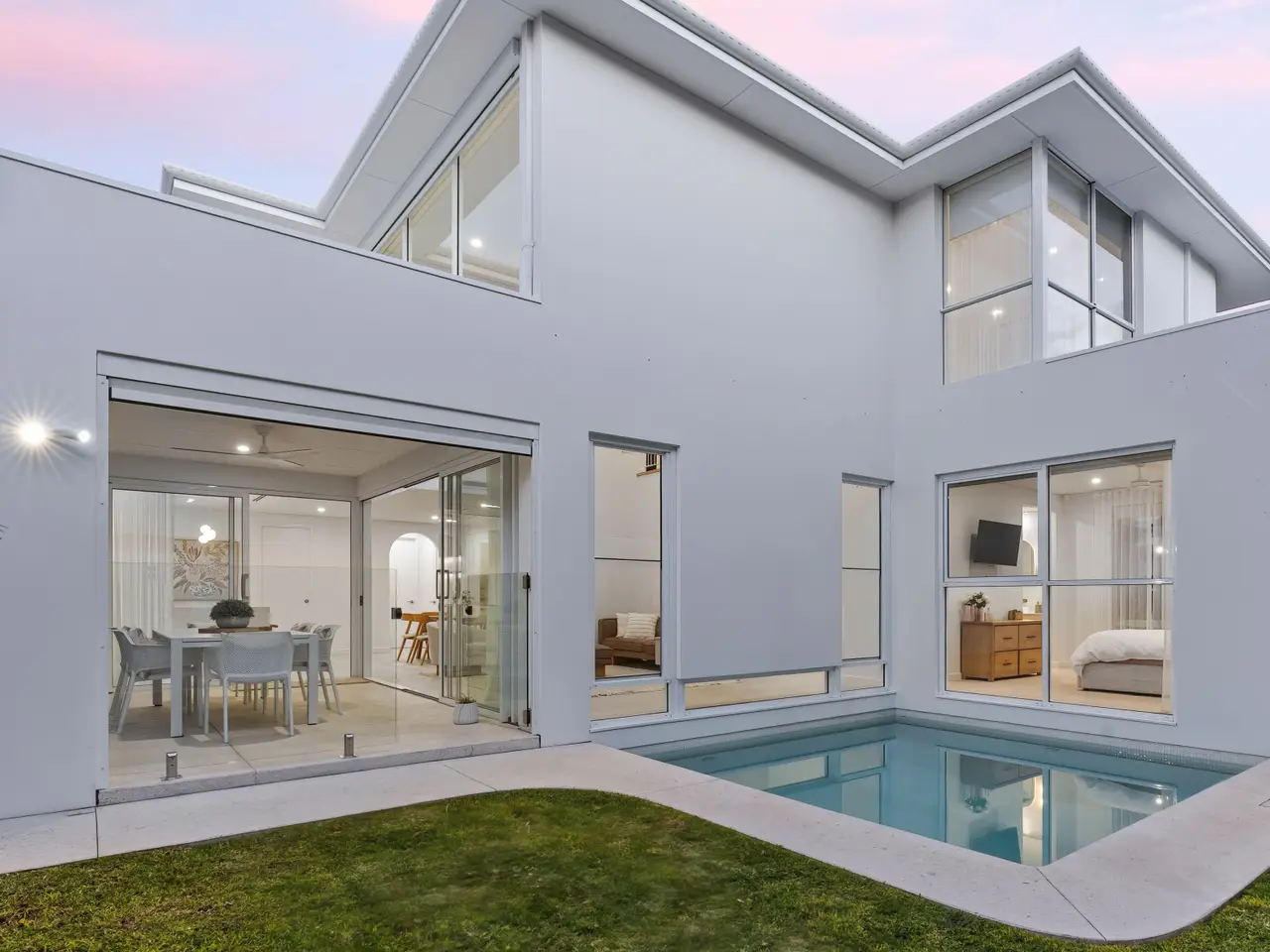 Designed by Claire Webster | Custom-built by Marshall Homes Elegant and refined, this residence less than a year old showcases a symphony of design elements. Curved walls and graceful arches blend seamlessly with expansive glass, soaring ceilings, polished plaster, and feature stone. Rich timber tones and washed aggregate complete the palette, creating an atmosphere of timeless sophistication and opulence. The grand entrance sets the stage, welcoming you and your guests into a main living space designed to impress. The kitchen commands attention with a sculpted curved island finished in elegant coved panelling and crowned by a statement pendant that creates the perfect atmosphere. Equal parts beauty and function, it features eye-level double ovens, a discreet scullery with a four-door pantry and soft-close drawers, along with an integrated dishwasher ensuring every entertaining experience is effortless. The dining area is defined by a curved feature wall and positioned alongside a private cellar. Softly lit to highlight its rustic brick flooring and textured walls, this space elevates wine storage into a striking display, an inviting setting to select the perfect vintage with family and guests. The open-plan lounge offers a refined retreat with a dramatic void that floods the interior with natural light. Classic sash windows frame tranquil views of the pool, set right to the water's edge. This premium design detail evokes the ambience of a private resort, allowing you to enjoy the outlook while supervising morning swims or relaxing in comfort. Seamless indoor-outdoor living flows to the alfresco, overlooking a private lawn where children and pets can play freely. Enclosed by rendered brick walls, the sparkling pool forms a secluded sanctuary for relaxation and memorable gatherings, complete with an outdoor shower for ultimate convenience. The ground-floor master suite is complete with a luxurious ensuite showcasing a double vanity, oversized shower, and a walk-in dressing room with bespoke cabinetry. Thoughtfully positioned to frame serene views across the pool, it offers the perfect retreat at the end of each day. A dedicated office or study with sliding doors provides both privacy and versatility, making it an ideal space for working from home or quiet reflection. The staircase continues the architectural narrative, its arched balustrade forming a sculptural statement as it rises to the upper level. Here, three king-sized bedrooms are beautifully appointed and serviced by a bathroom featuring a hotel-inspired bath, shower, and separate powder room. From the landing, sweeping views extend across the dramatic void, one of the home's most unforgettable design elements. The upstairs lounge offers versatility as a second living zone, theatre, activity room, or private retreat, with windows on both sides welcoming natural breezes and framing views of the pool and landscaped lawn. A graceful curved wall completes the composition, echoing the home's architectural detailing with perfect continuity. For added convenience, the fully rendered double garage provides direct access into the home and ample space for parking and additional storage, all finished with sleek precision. Blending bold architecture with contemporary comfort, every detail has been thoughtfully curated to deliver a refined lifestyle, highlighted by signature features: • Built by Marshall Homes, less than one year old • Stone masonry, polished plaster, and elegant curved walls • Ground-floor master suite with tranquil pool views • Sparkling pool with an outdoor shower • Double-height void over the lounge with stunning water edge views • Entertainers kitchen with Island, pendant lighting and scullery • Ducted air-conditioning for year round comfort • Expansive glass and skylights allowing plenty of natural light in • Wine Cellar with lighting • Double garage with extensive built-in storage • Theatre, games, or activity room for flexible living • Bedroom suites with built-in cabinetry and ceiling fans • High ceilings, shadow lined cornices and skirtings • Fully reticulated gardens with LED lighting and three-phase power • Keyless entry and app-controlled surveillance for ultimate security Positioned on the tranquil Salter Point peninsula and surrounded by multi-million-dollar residences, this address combines prestige with convenience. Families enjoy the ease of walking to Aquinas College, with other esteemed schools St Pius X Catholic Primary, Manning Primary, Wesley College, Penrhos College, and Curtin University, all within close reach. Everyday needs are met at the nearby Ley Street and Welwyn Street shops, including the much-loved Henry M's, while Waterford Plaza provides fresh produce and casual dining at the vibrant Varsity Bar. For premium retail, cinemas, and essential services, Westfield Garden City is only minutes away, and seamless access to both north and south freeway on-ramps makes travel effortless. For boating and fishing enthusiasts, the Gentilli Boat Ramp is just around the corner, offering direct access to the Canning and Swan Rivers. A thoughtfully placed outdoor sink ensures easy clean-up after the day's catch, keeping your interiors pristine while enhancing the lifestyle of this waterfront enclave. Opportunities of this calibre are exceptionally rare once secured, never repeated. For the buyer ready to act, this residence delivers not only a home but a true legacy of luxury.