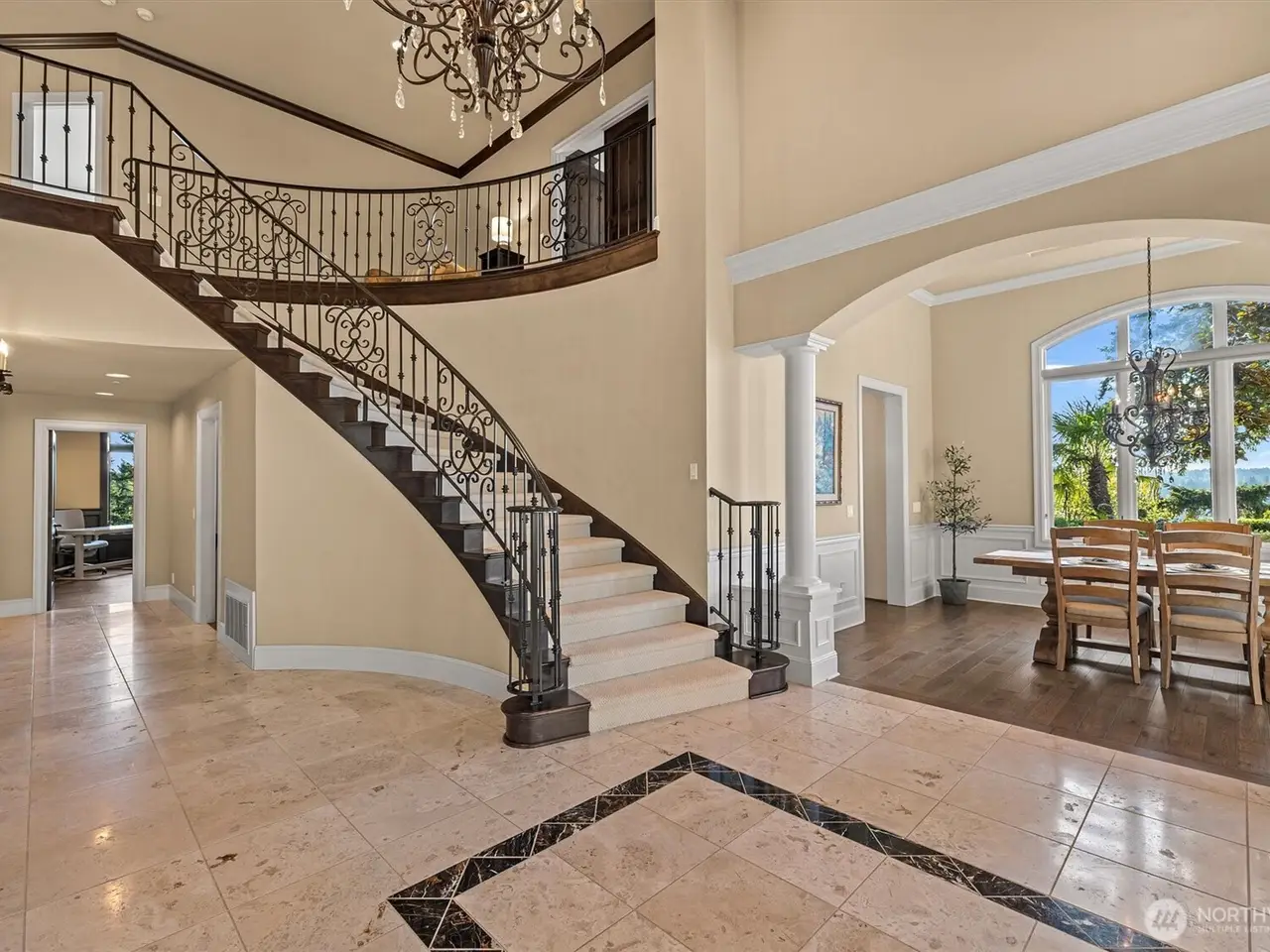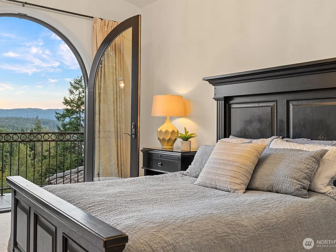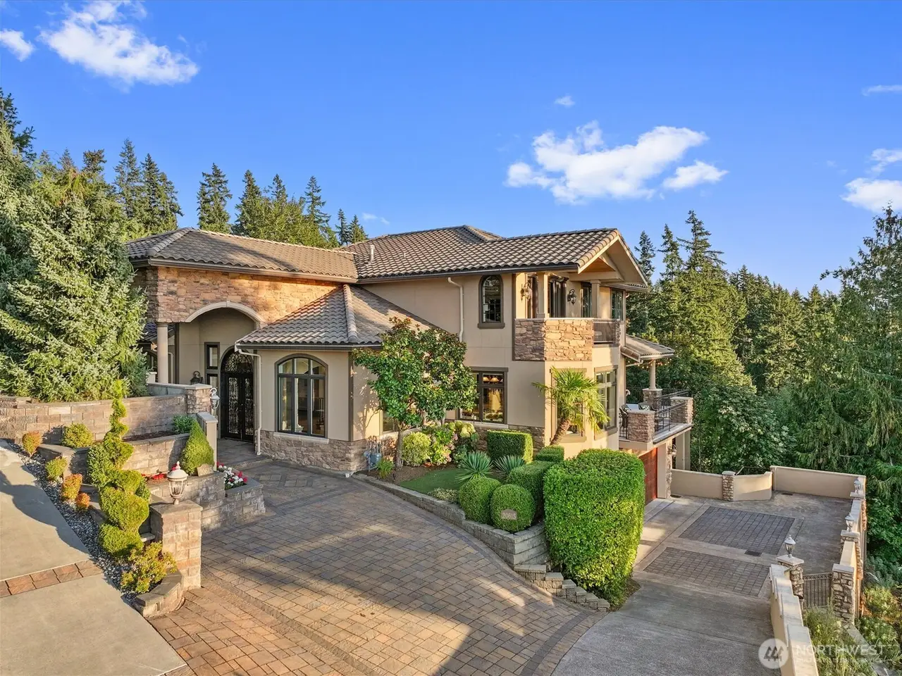 European elegance meets PNW beauty in this exquisite, quality constructed estate home overlooking Lk Sammamish. Wake up to sweeping lake & mountain views from nearly every room. Chef's kitchen is ideal for both intimate dinners and grand entertaining. The covered balcony, with its kitchenette & fireplace, invites seamless indoor/outdoor living & extraordinary views. Main level offers expansive living spaces: formal living & dining rooms, family room, library & versatile den/exercise room. Each bedroom features its own en suite bath & private balcony. Downstairs, a private guest suite & bonus room w/ kitchenette provide flexible living options. Access 125' of private beachfront at Inglewood Beach Club w/ membership.