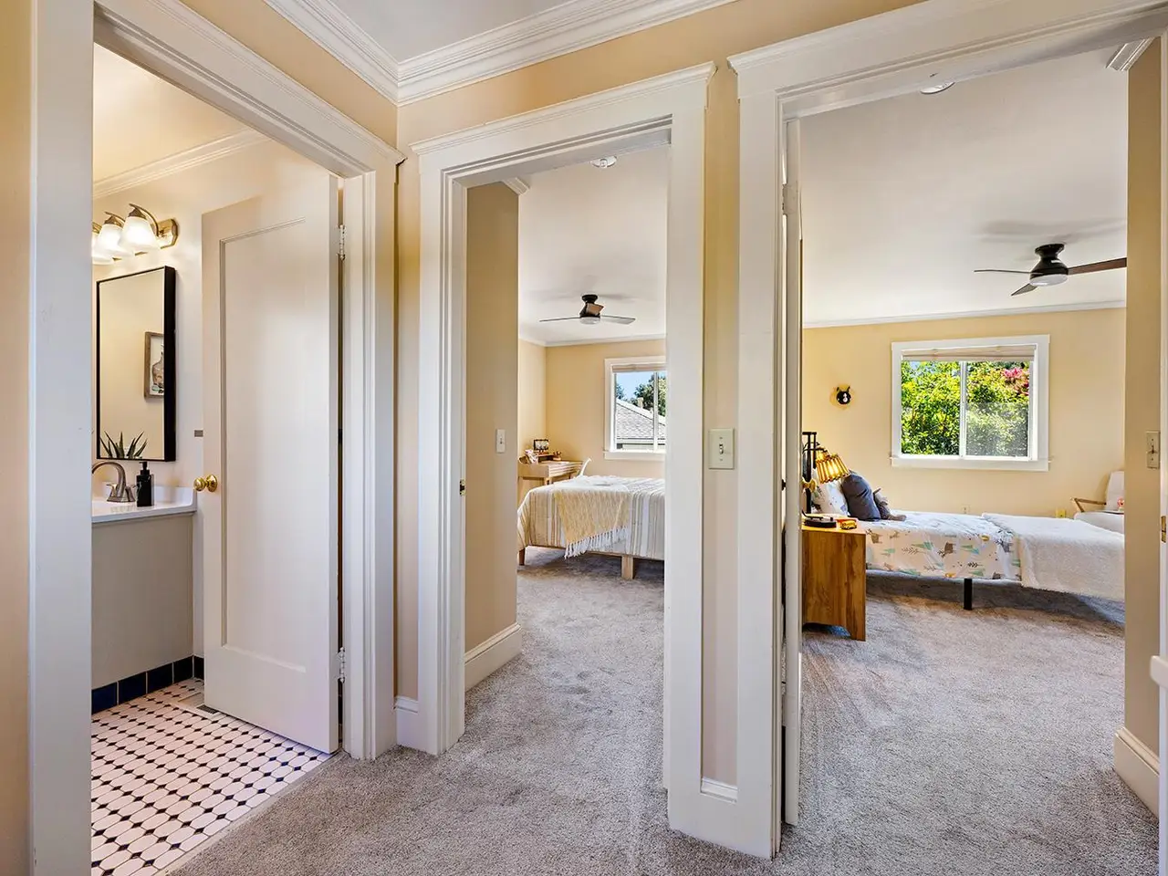 Updated vintage charm, this home was built in 1905 at the end of a cul-de-sac in the flats of San Anselmo. With 4-bedrooms, and 3.5-baths it blends historic character, with thoughtful updates, on a generous 8,300 sq. ft. level lot. A cozy entry room leads into the living and dining areas. The open kitchen and family room are perfect for casual living or party overflow. Expanded over the last 30+ years by the owner, a respected local contractor, it has classic touches with modern conveniences. The main level also features a primary suite, and a bedroom currently used as an office. See floorplan. The expansive yard is both practical and whimsical. Multiple areas invite relaxation and play: a hot tub, side porch for entertaining, concrete pad for basketball hoop, fruit trees, garden areas and more. The large two-car garagewith workshop space, two separate storage rooms, and more, offers endless convenience. (Conversion to an ADU must be checked with building and planning.) In the acclaimed Ross Valley School District, with private school options nearby, this home offers the perfect blend of community, convenience, and character - almost equidistant from downtown San Anselmo and Fairfax along with nearby access to hiking, biking in the stunning Marin outdoors.